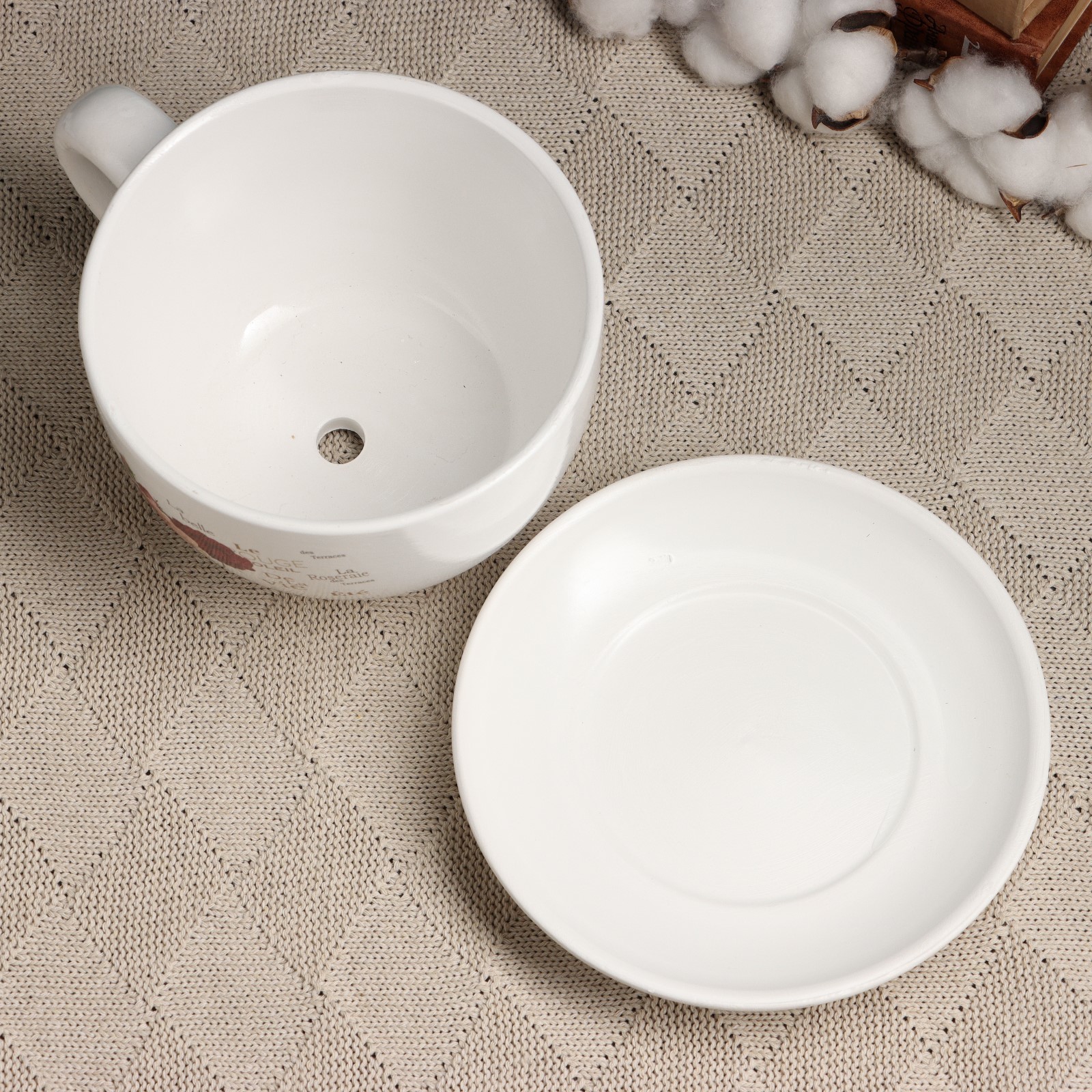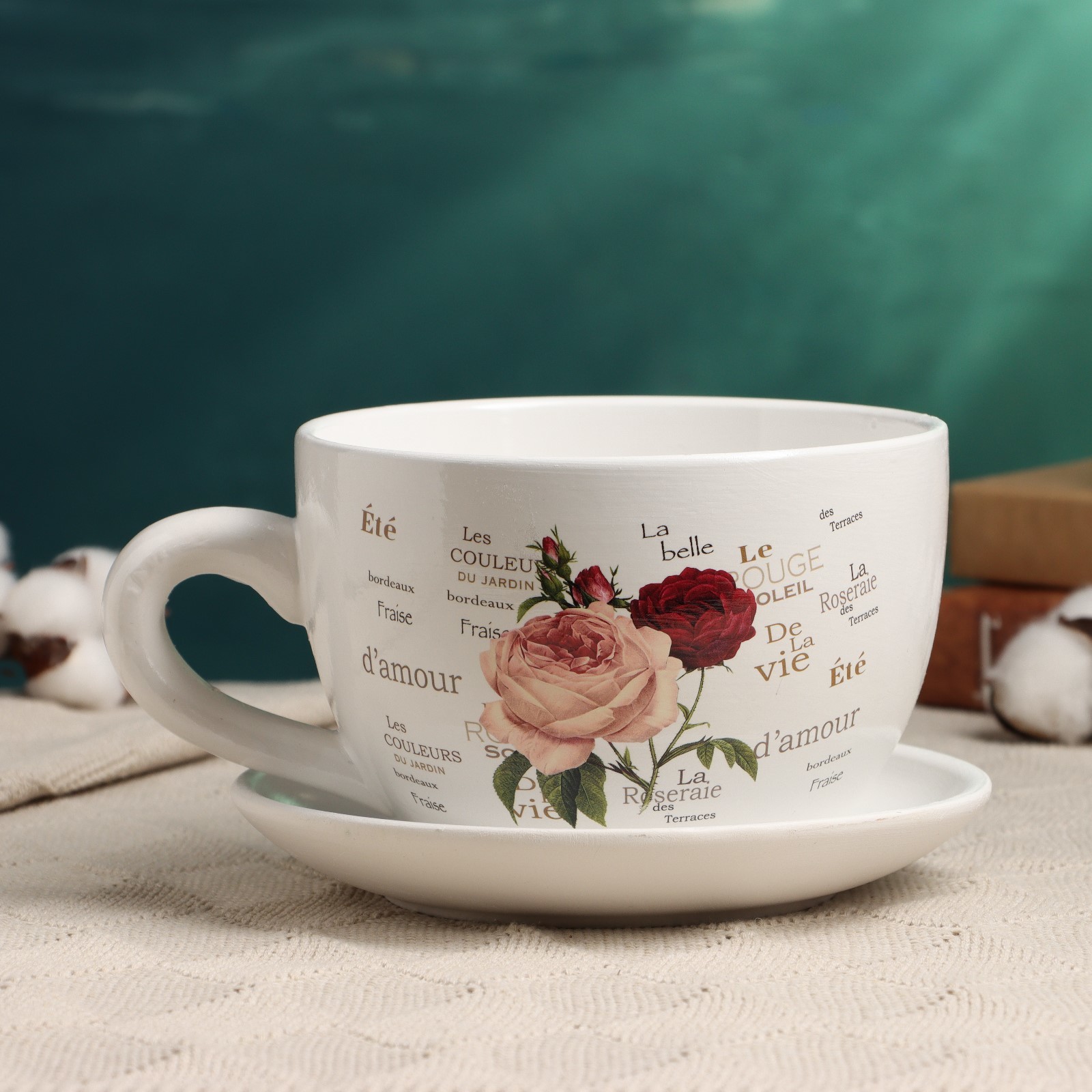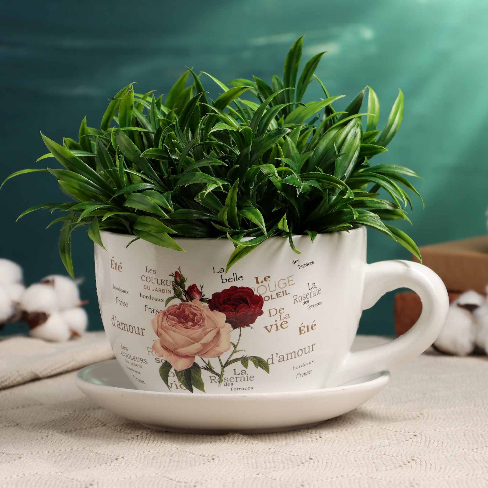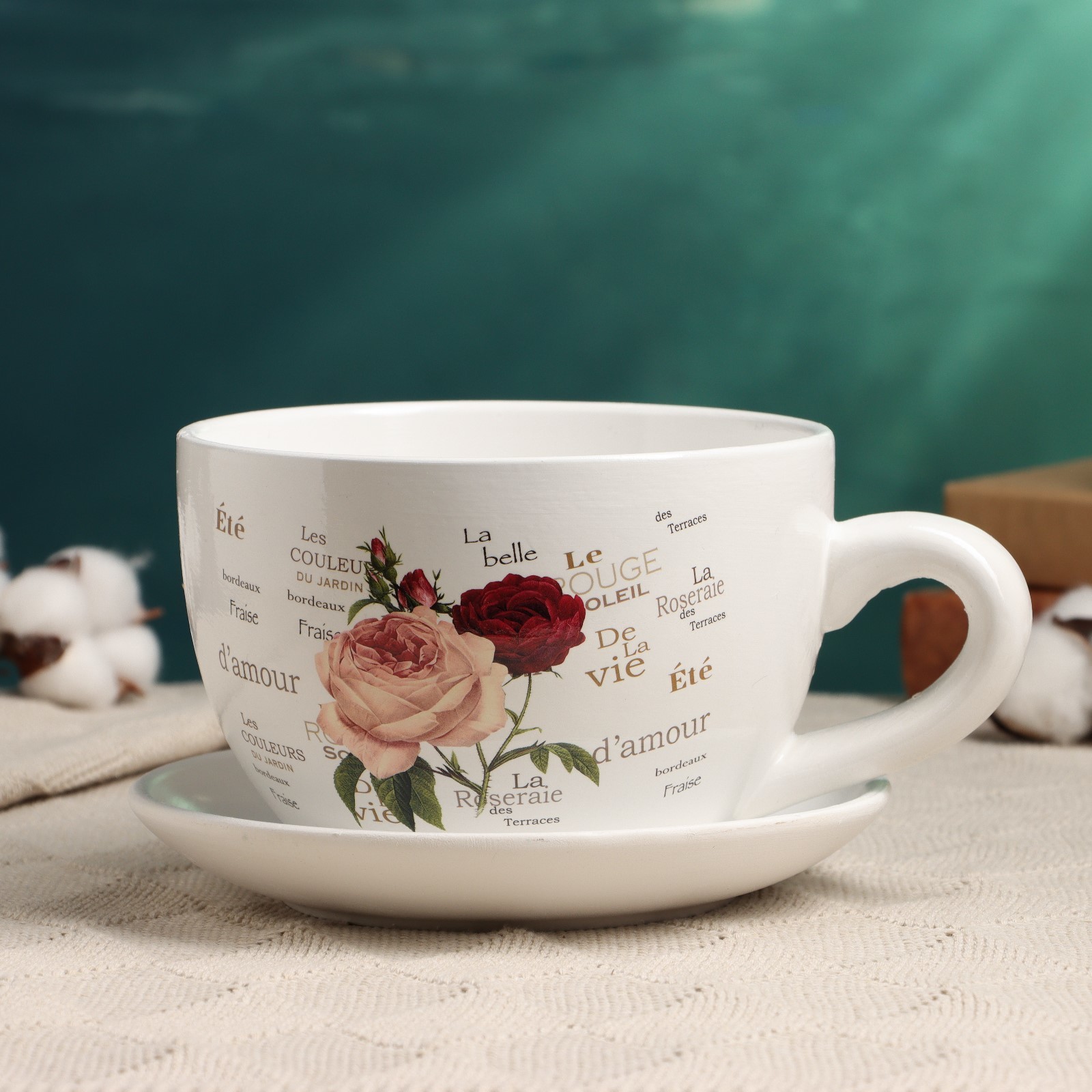 Горшок для цветов в форме чашки «эмма: цветы» керамический, с поддоном, 1.2 л, 19 15 10 см, белый с рисунком