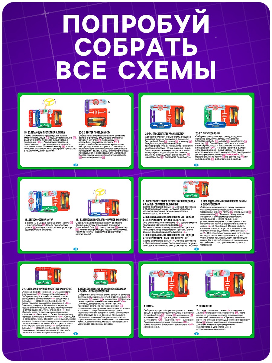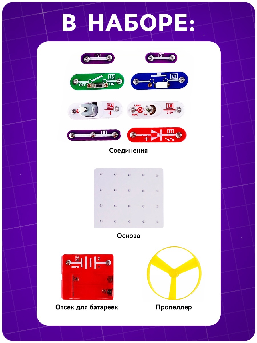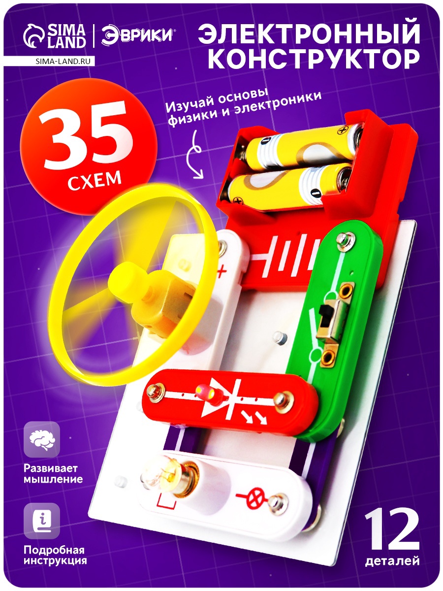 Конструктор электронный «эврики», 35 схем, 12 элементов, работает от батареек