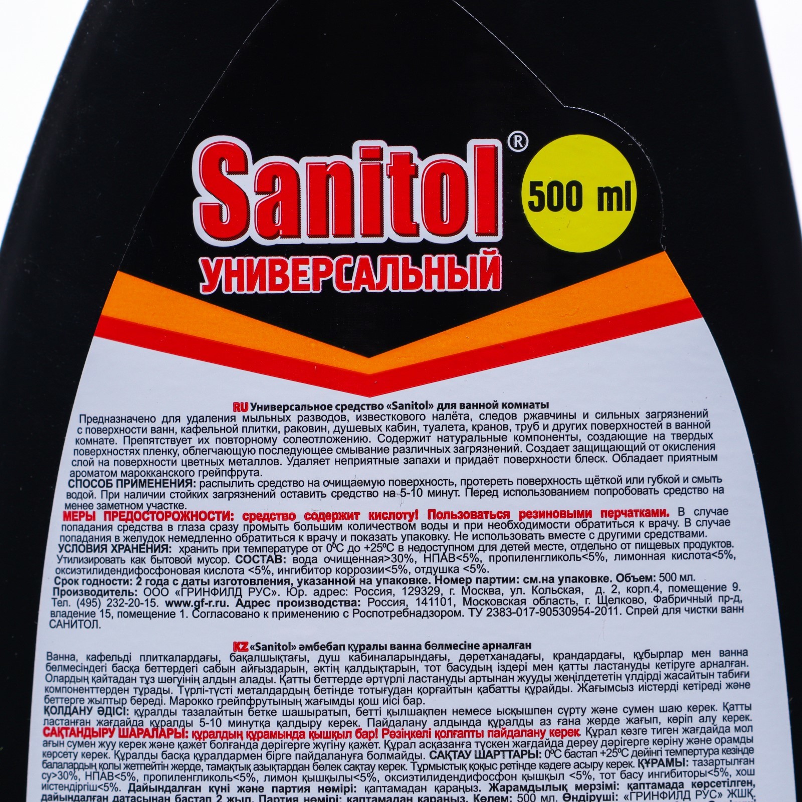Средство Sanitol для удаления известкового налёта, мыльных разводов и ржавчины, 500 мл