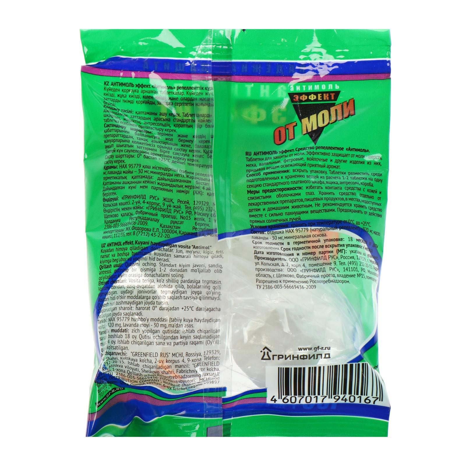 Таблетки для защиты от моли "Selena антимоль-эффект", 100 г