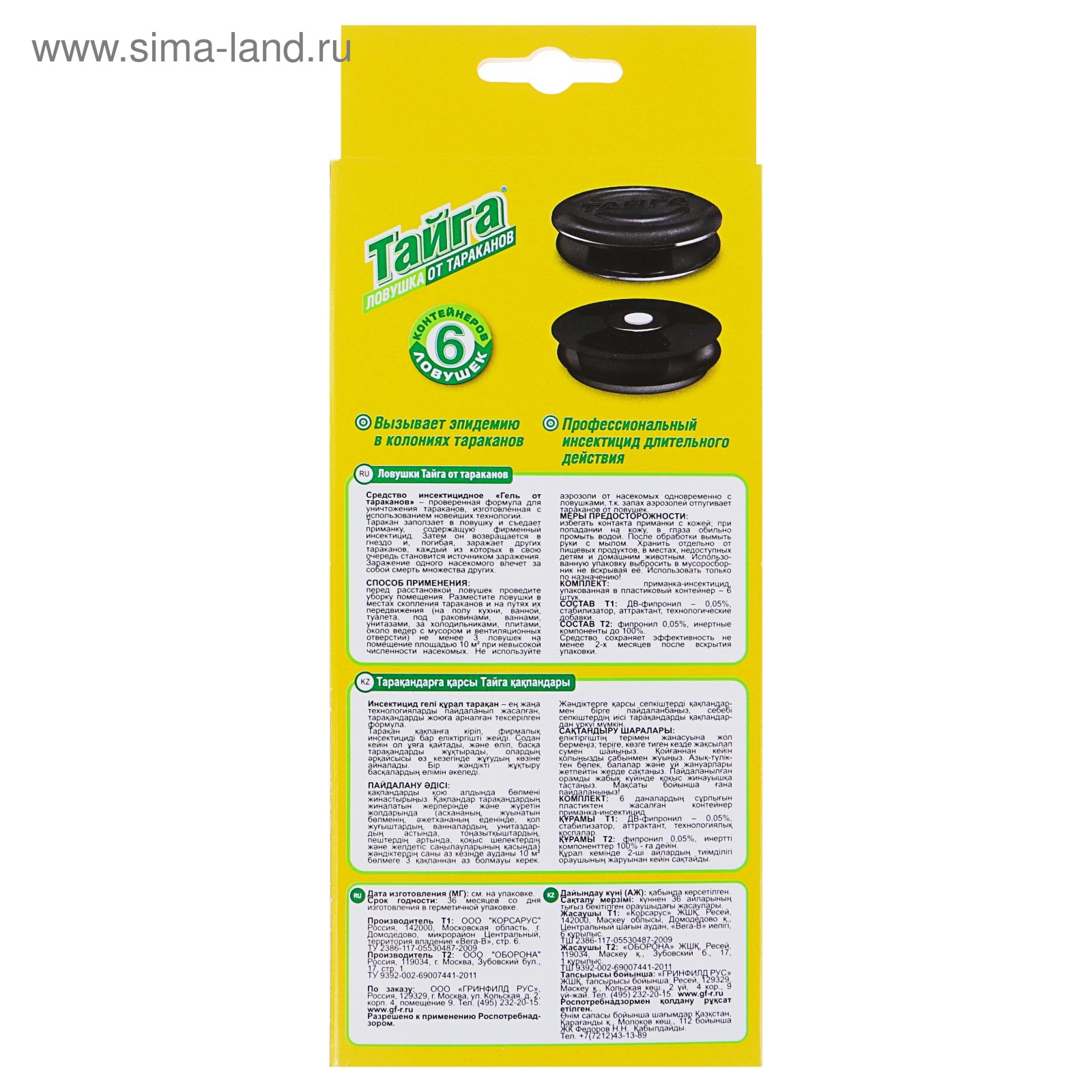 Ловушка от тараканов "тайга", 6 шт.. Клеевая ловушка ТАЙГА - мощное и эффективное, без запаха для быстрого уничтожения тараканов в Вашем доме или квартире. Помимо клея, в составе средства используется профессиональный нетоксичный феромон, привлекающий насекомых, которые приходят на его запах и прилипают на наклейку намертво. Абсолютно безвредно для человека и домашних животных. "Домик" идеален для применения там, где опасно оставлять отраву в виде таблеток, порошков, гранул: например в детских садах, школах или больницах . Они просты в применении и могут быть установлены в любом месте, в том числе в местах хранения пищевых продуктов. Вскрытые ловушки липучки сохраняют активность в течении трех месяцев, обеспечивая защиту против непрошенных гостей. Состав:Клей постоянной липкости, вкусо-ароматическая приманка, влагостойкий картонСпособ применения: аккуратно откройте ловушку, отделите бумагу, закрывающую клеевую поверхность, согните по линиям сгиба, сомкните замок с помощью фиксирующего клапана, установите ловушку возле стены. Для достижения лучшего результата рекомендуется использовать несколько ловушек одновременно. Вид средства: Приманочная станция  развернуть описание ▼