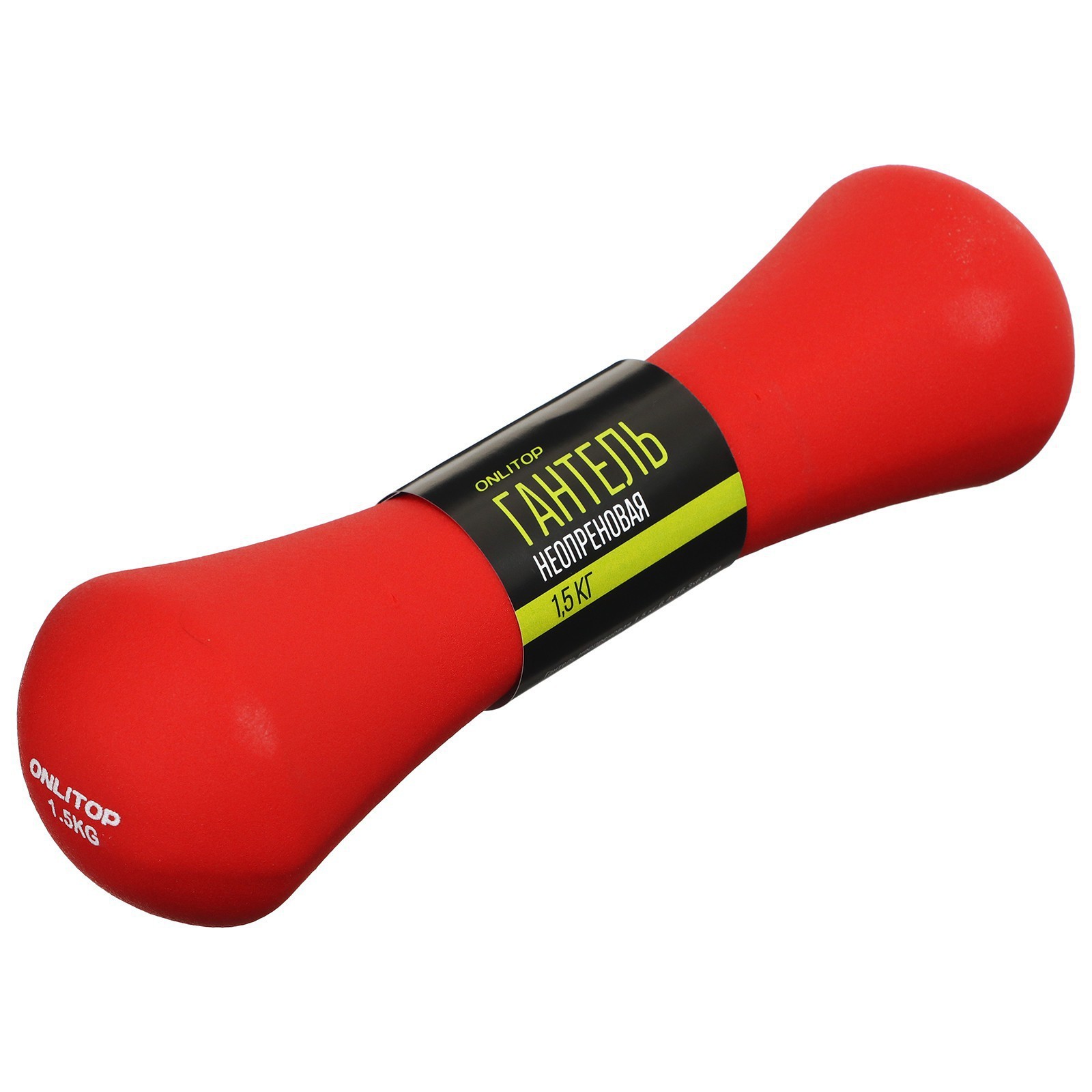 Гантель неопреновая onlytop, 1,5 кг, цвета микс. Гантель подходит для тренировок в спортивном зале и дома. Неопреновое покрытие предотвращает появление царапин и сколов на полу. Благодаря покрытию, гантель не скользит в руках, что помогает избежать травм. Характеристики Вес: 1, 5 кгВнешний материал: неопренВнутренний материал: стальГабариты: 16, 3 см х 6, 8 см х 6, 4 смДлина хвата: 9, 5 смТолщина хвата: 3, 3 см Цвет: Красный parts count: 0 Вес, кг: 1.5 Толщина хвата, см: 3.3 Ширина хвата, см: 9.5 Защитное покрытие: Да Тип покрытия: Неопрен Тип гантели: Неразборная Форма дисков: Круглые Наличие замков: Нет  развернуть описание ▼