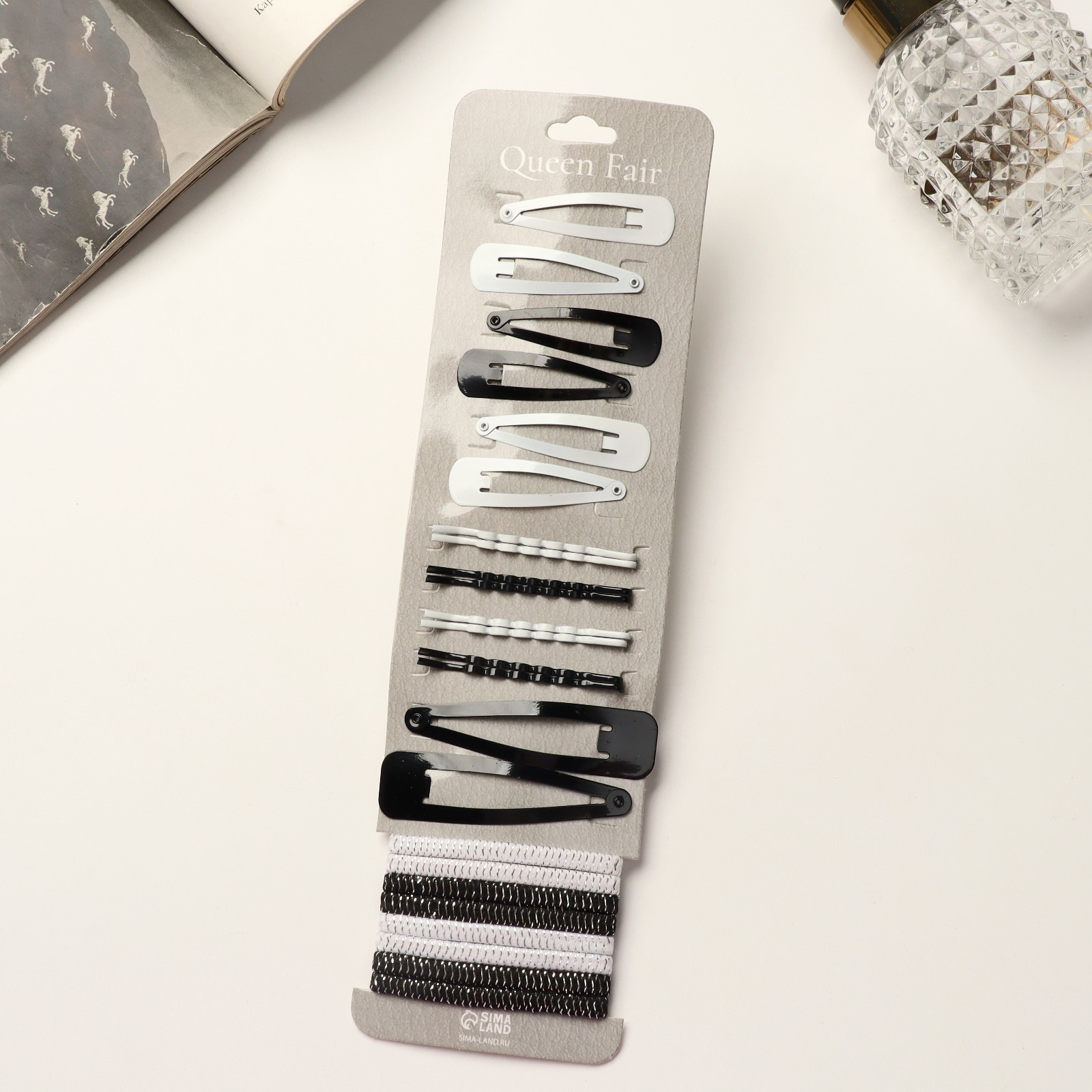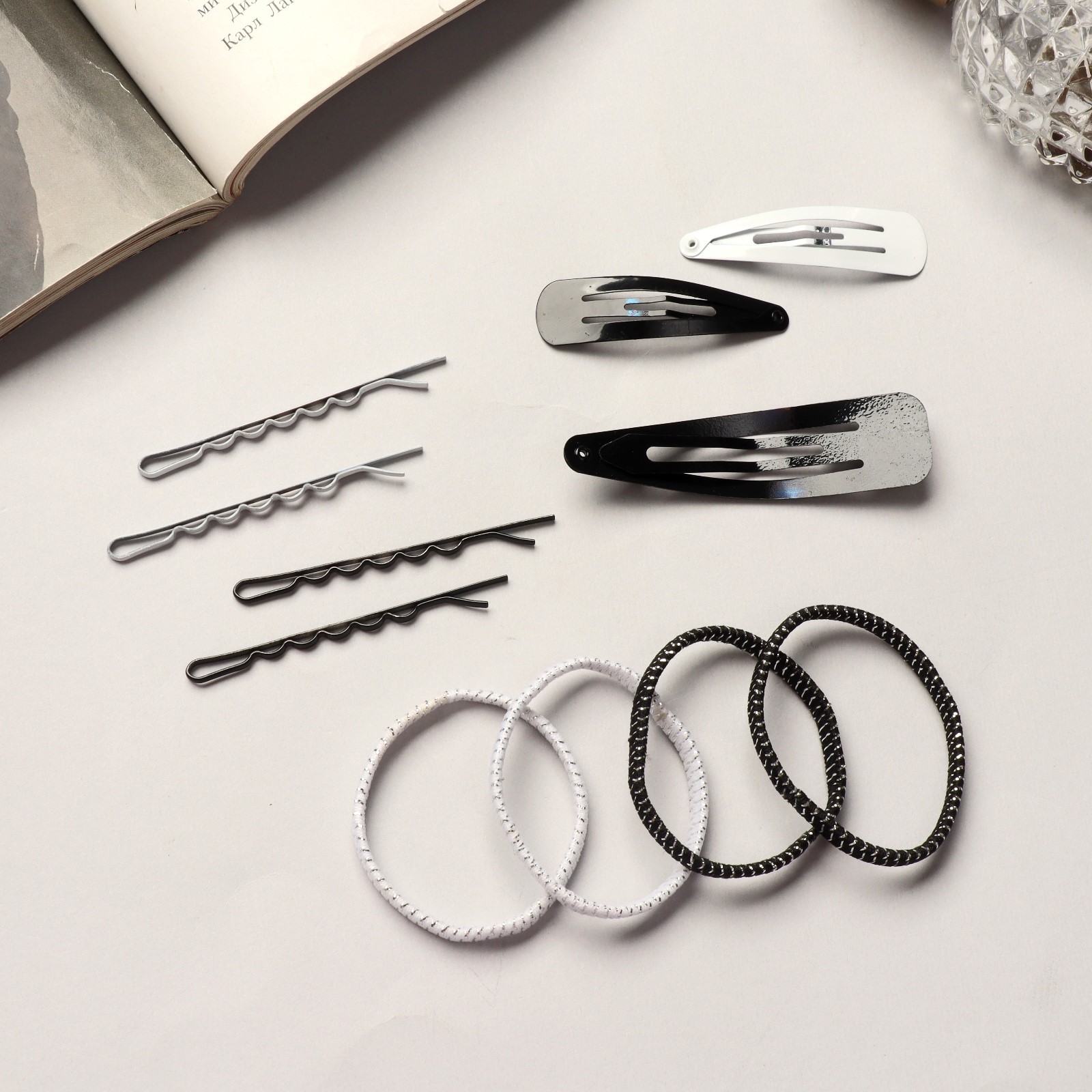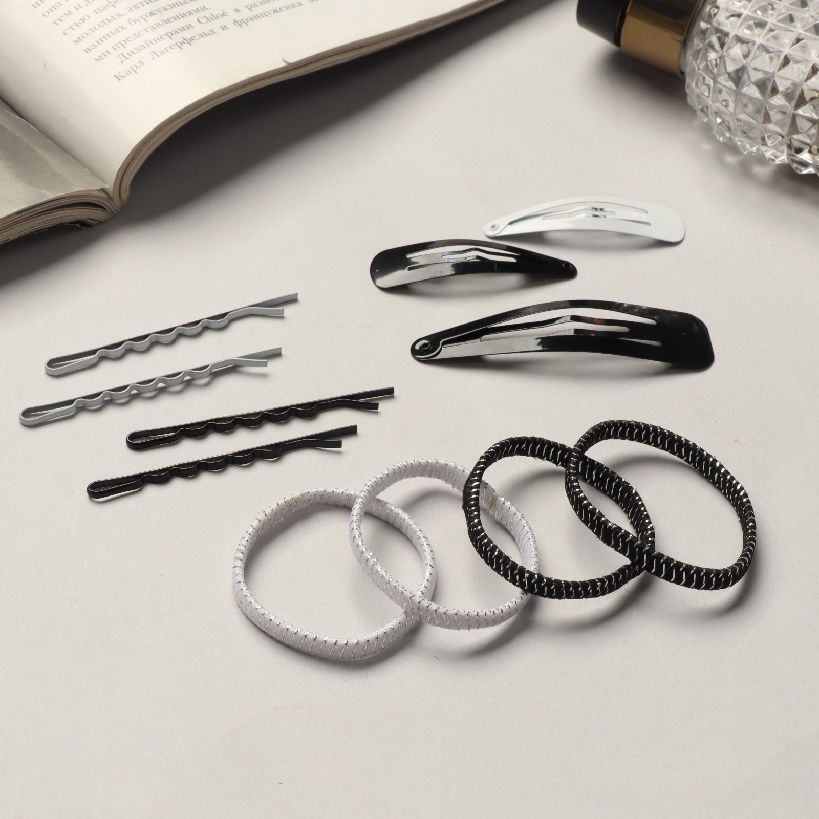 Набор для волос «классика», 6 шт.: 4.5 см, 8 шт.: 6 см, 2 шт.: 6.5 см, 8 резинок, чёрно-белый