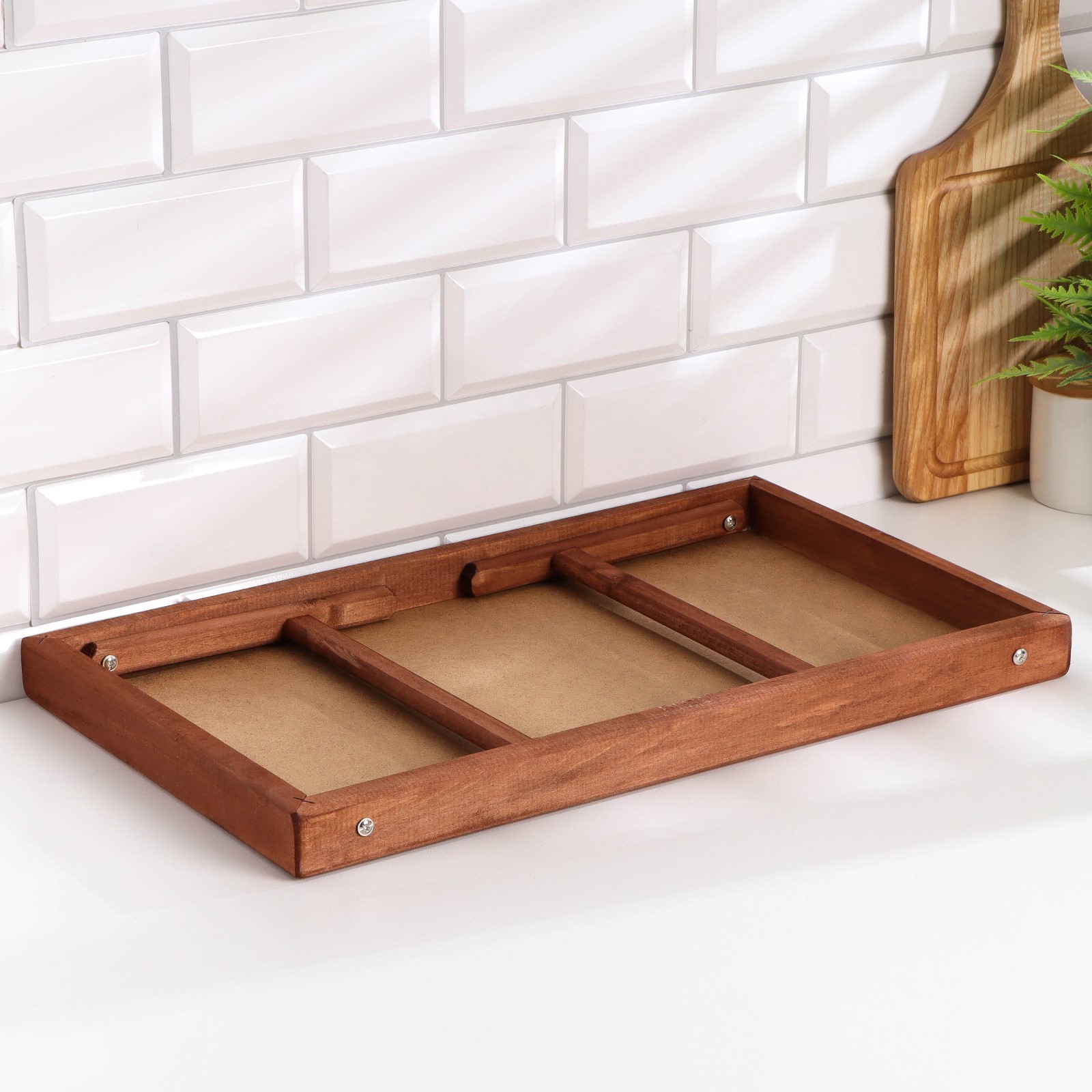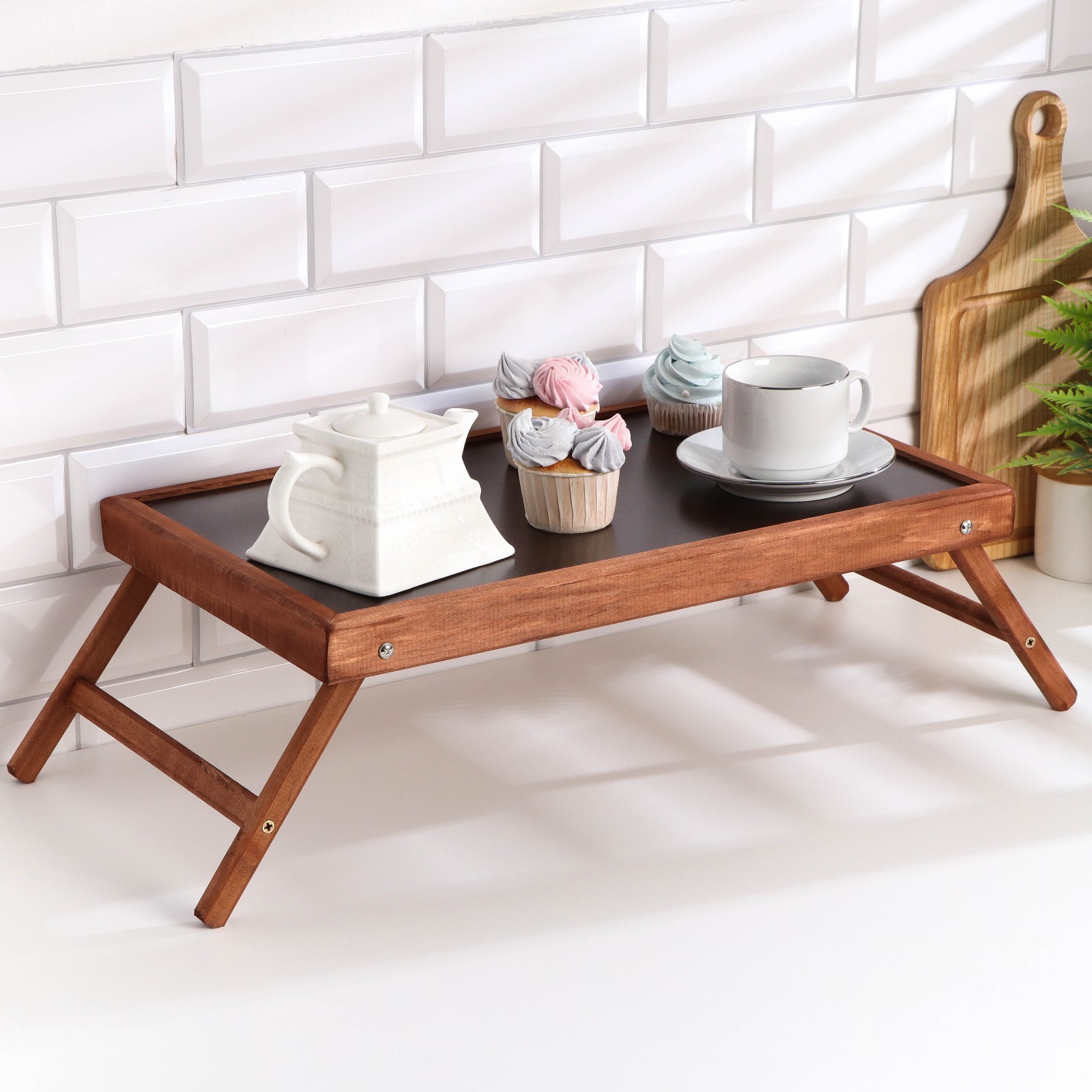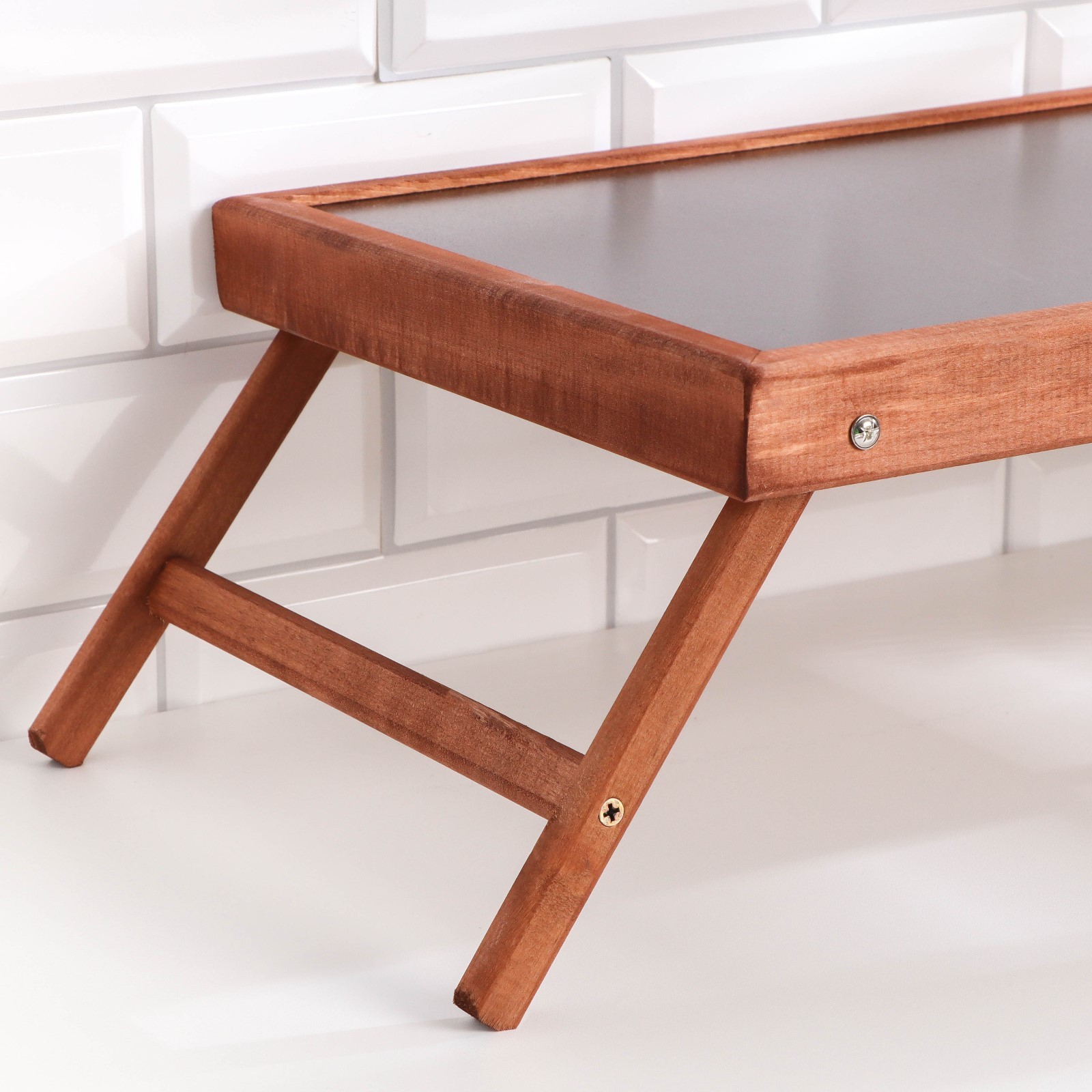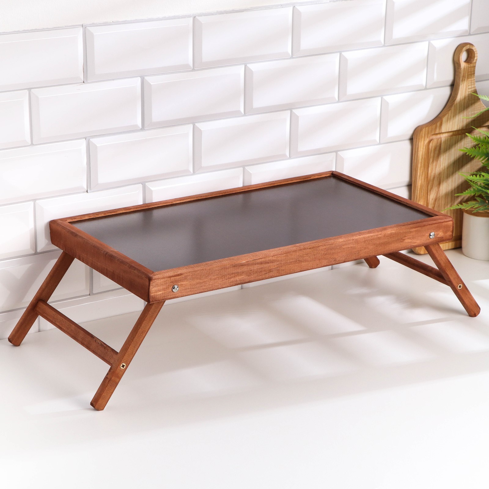 Столик для завтрака складной, 50x30см, морёный.   Стильный и компактный столик с небольшими бортиками по периметру позволит порадовать любимых завтраком в постель. Благодаря складным ножкам изделие легко переносить и удобно хранить.  Поднос подходит не только для завтрака в постель — если поставить на столик ноутбук, можно смотреть кино или работать.  Цвет: Коричневый Форма: Прямоугольная parts count: 0 Высота стола, см: 20 tnved: 9403601009 Вид дерева: Липа Материал: Дерево Размер столешницы, см: 50 х 30 Назначение: Для завтрака Запрет реализации по сегментам: 00000000332 Форма: Прямоугольник  развернуть описание ▼
