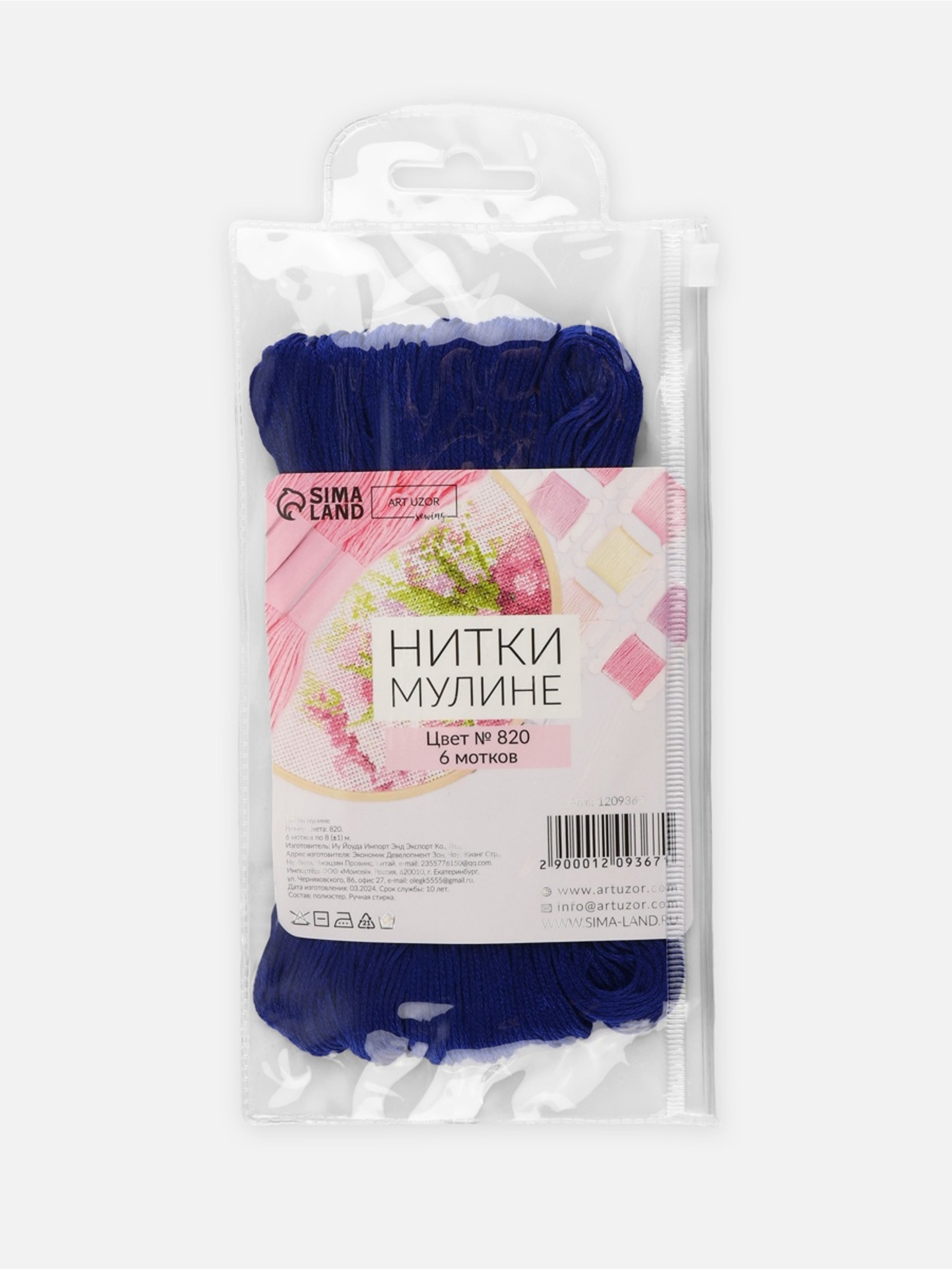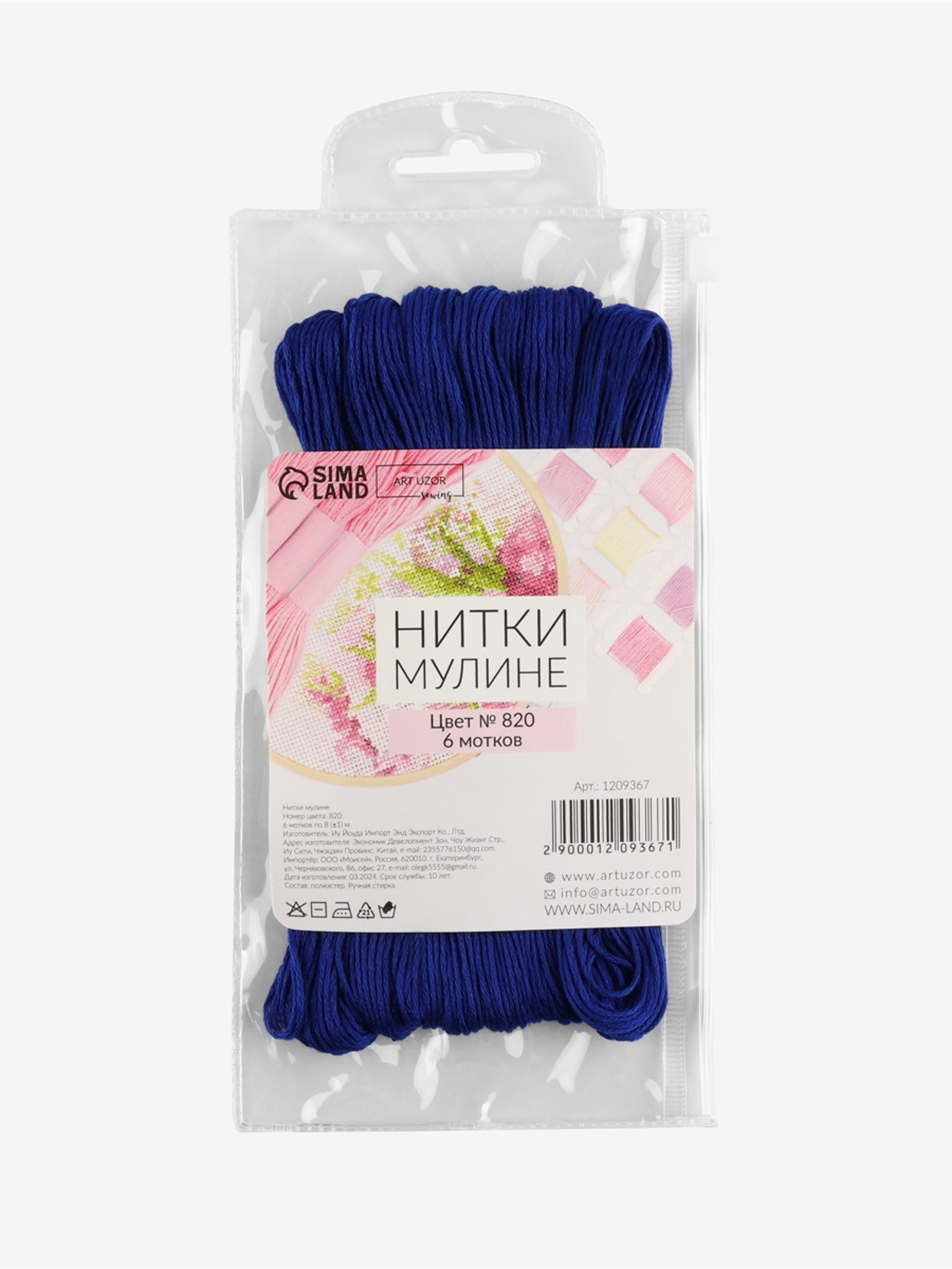 Нитки мулине №820, 8±1 м, набор 6 шт., тёмно-синие