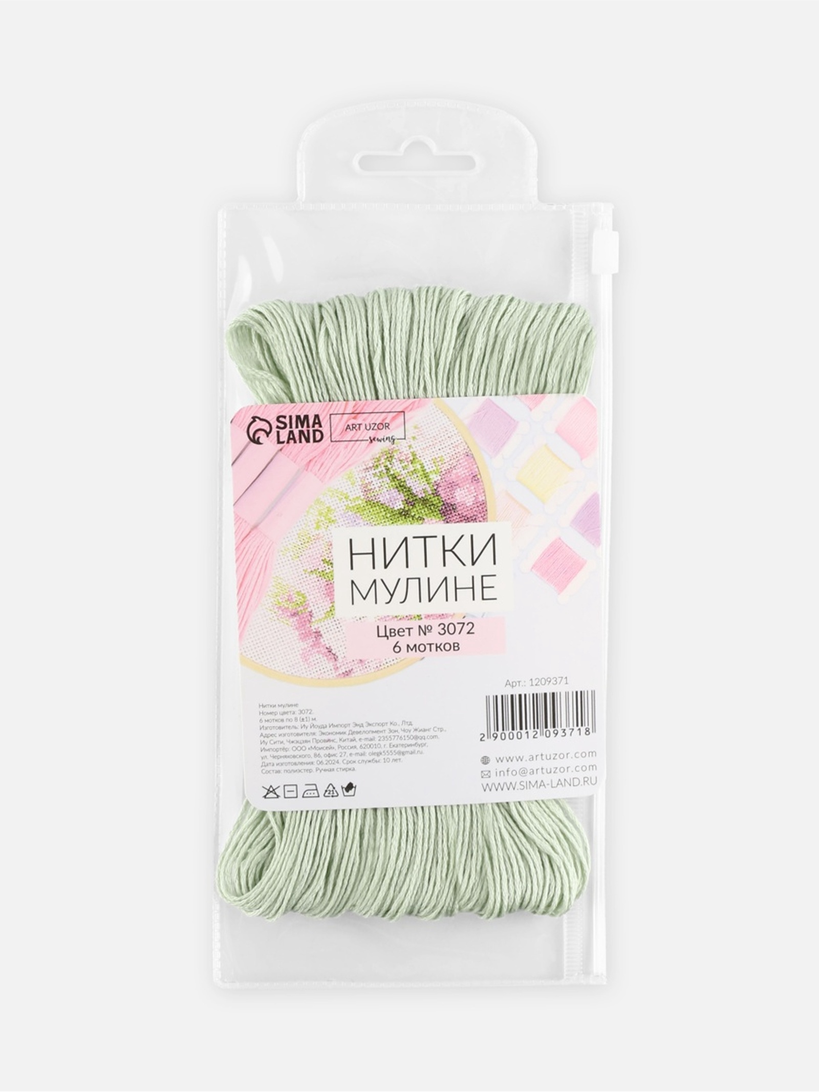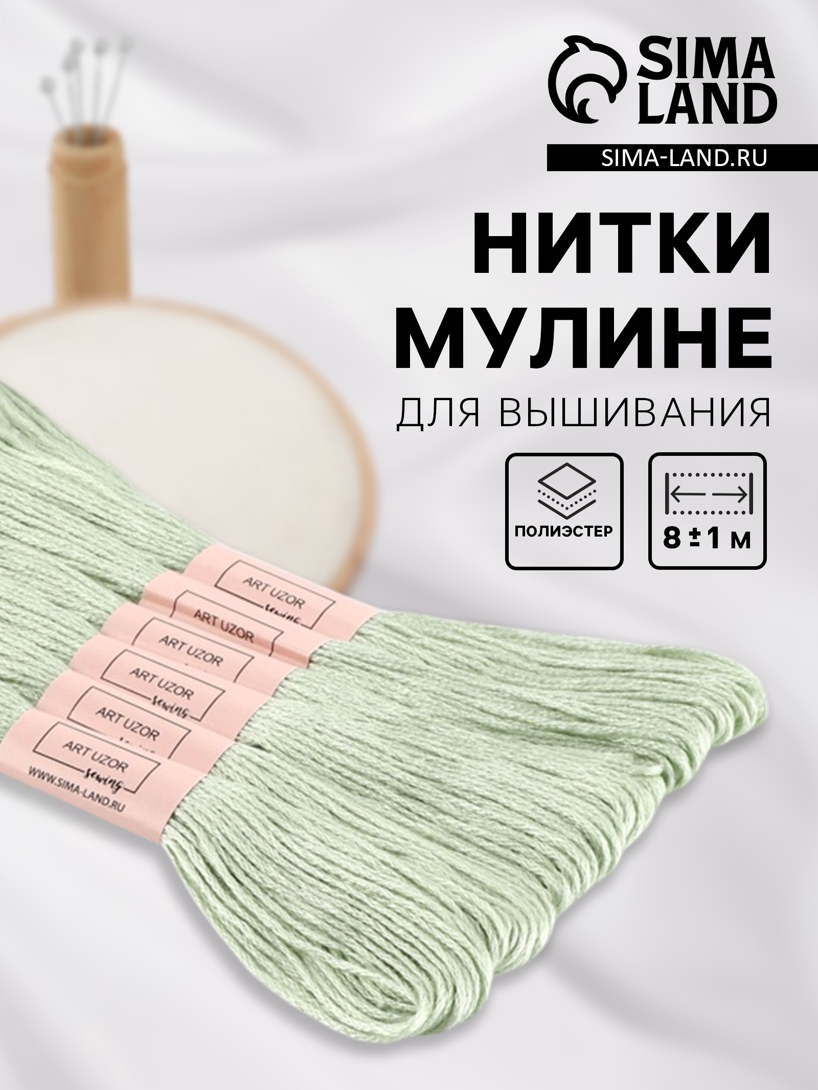 Нитки мулине №3064, 8±1 м, набор 6 шт., светло-зелёный