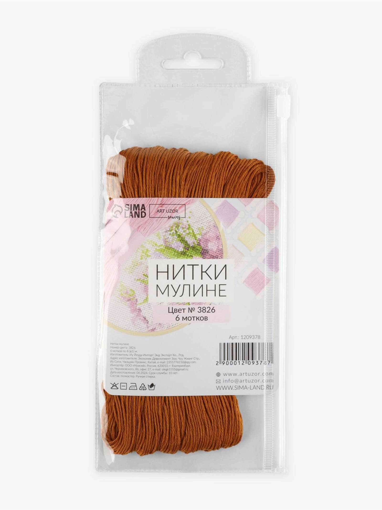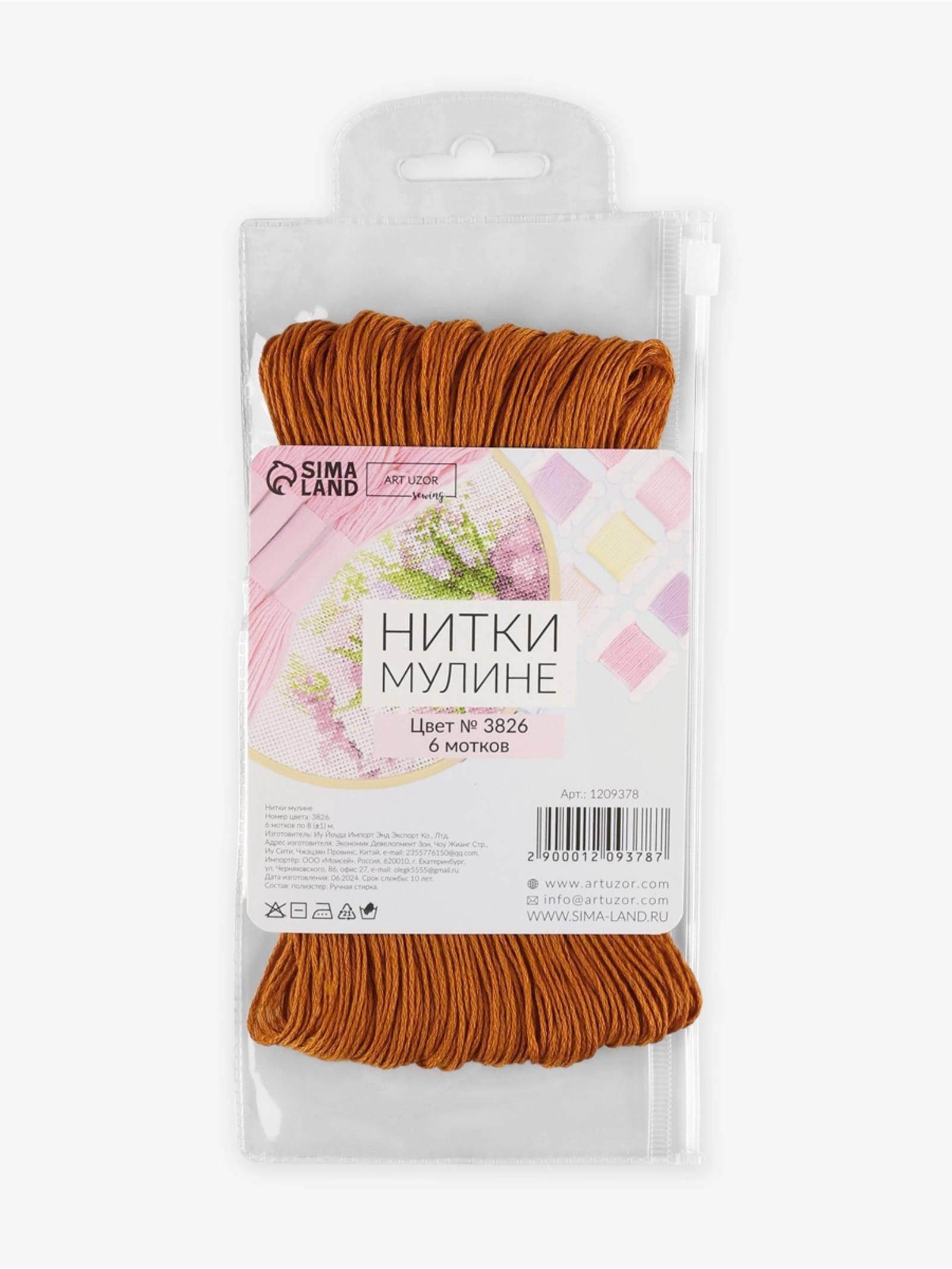 Нитки мулине №909, 8±1 м, набор 6 шт., коричневый