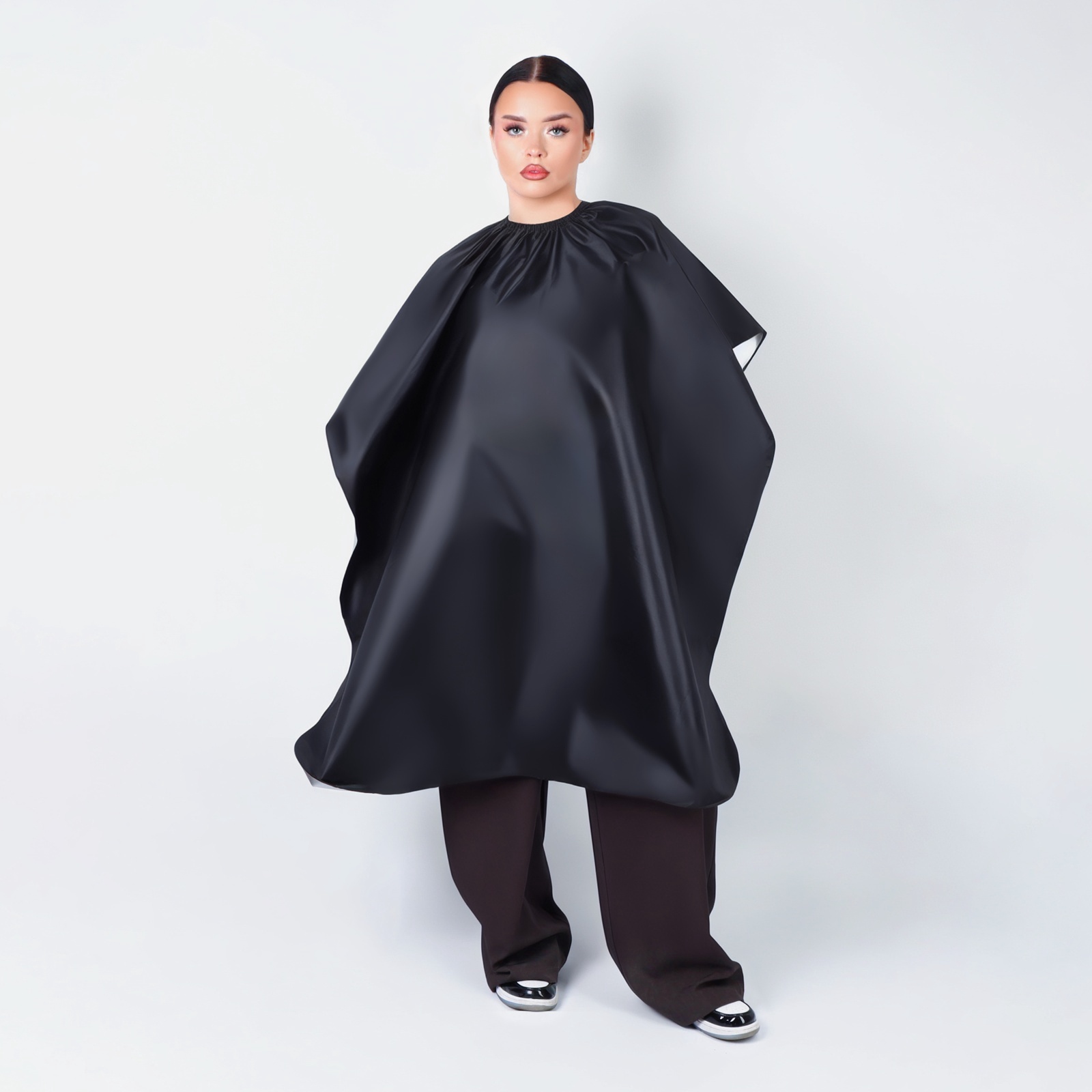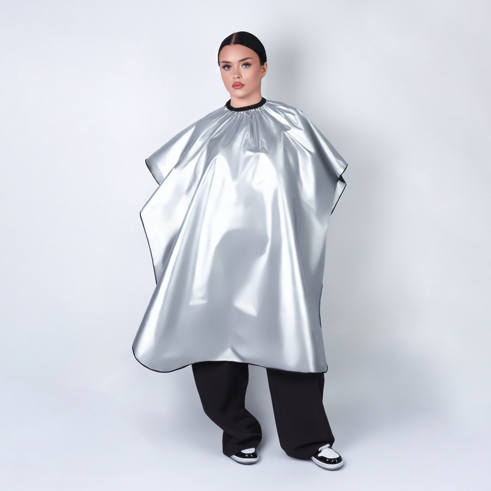 Пеньюар парикмахерский, двусторонний, 140 100 (±1) см, серебристый/чёрный. При окрашивании волос прежде всего необходима аккуратность. Чтобы не испачкать ни себя, ни помещение, наденьте специальную накидку. Так краска с волос или баночки не замарает посторонние предметы, и ваша одежда останется чистой. Полиэстер, из которого сделана накидка, очень износостойкий и прочный. Если при окрашивании ткань запачкается, её легко можно будет отстирать при 40-60 градусах в стиральной машине. Длина: 140х100 см. Набор:Нет|Цвет:Чёрный|Для кого:Унисекс|Тип одежды:Фартук|Тип одежды:Накидка|Назначение:Сфера обслуживания|Назначение:Рабочая одежда|Ткань:Полиэстер|Особенность спецодежды:Грязезащитная|Особенность спецодежды:Влагозащитная|Рост, см:100 - 140|Сезон:Всесезонный|Вид упаковки:Пакет|Материал:Полиэстер|Страна:Китай  развернуть описание ▼