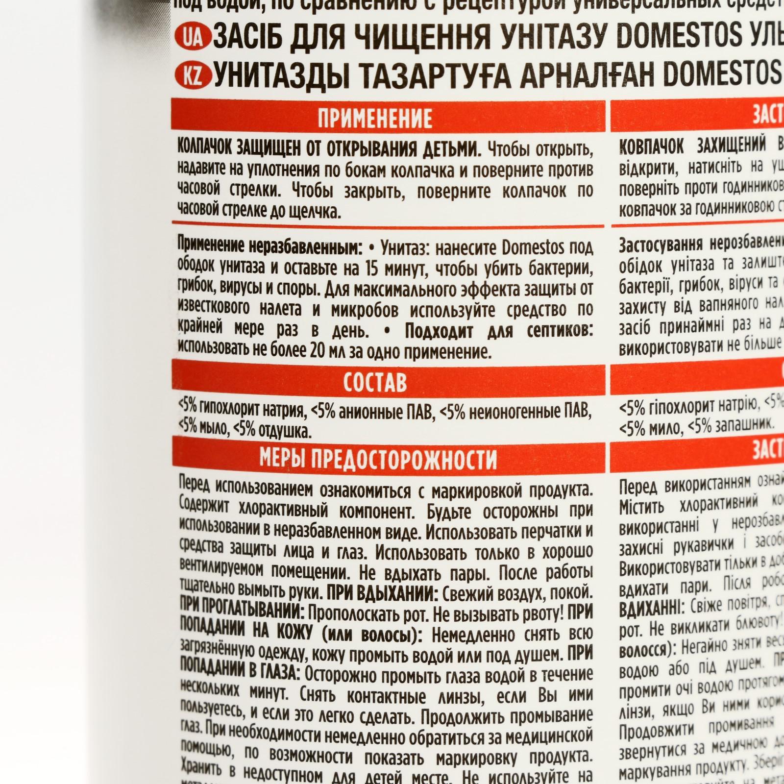 Средство чистящее для унитаза Domestos "Ultra White", 500 мл