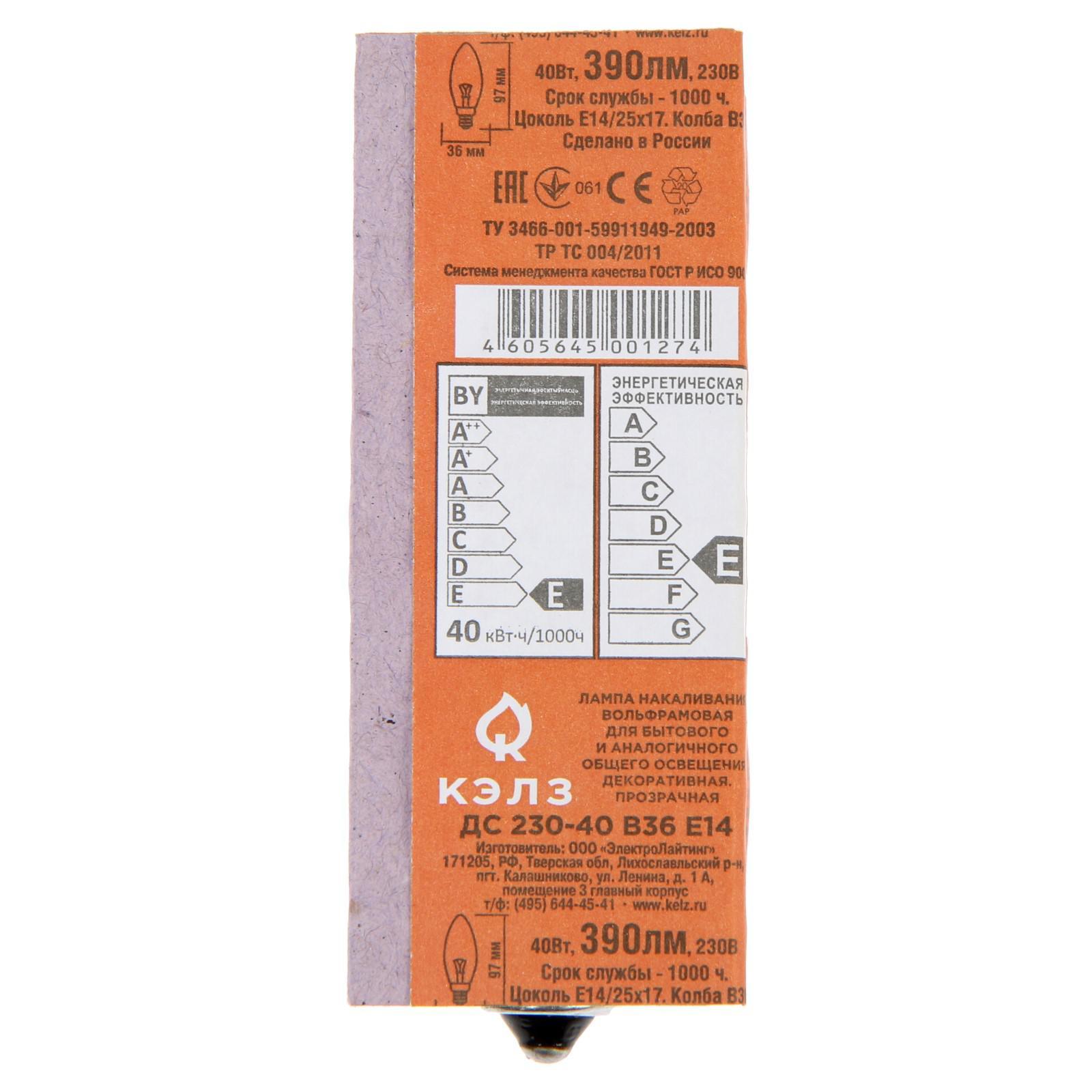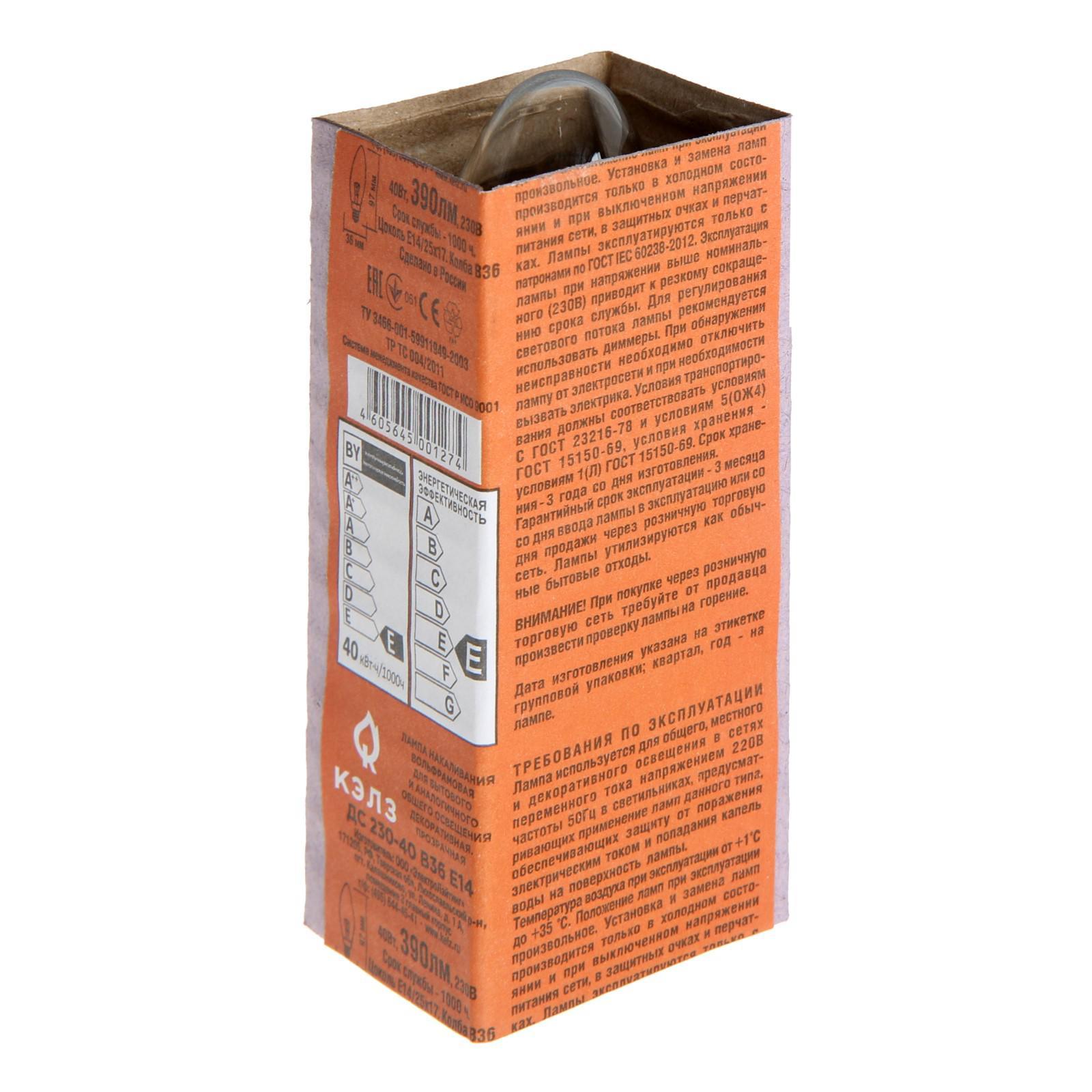 Лампа накаливания кэлз, дс, е14, 40 вт, 230 в. Вольфрамовые лампы накаливания используются для бытового и общего освещения. Мгновенное зажигание, небольшие габаритные размеры — традиционные преимущества таких изделий. Они подходят для всех осветительных приборов. Цвет свечения: Тёплый белый Вид лампы: Накаливания Цоколь: E14 Мощность, Вт: 40 parts count: 0 Напряжение, В: 220 Цветовая температура: 2700К Форма лампы: Свеча  развернуть описание ▼