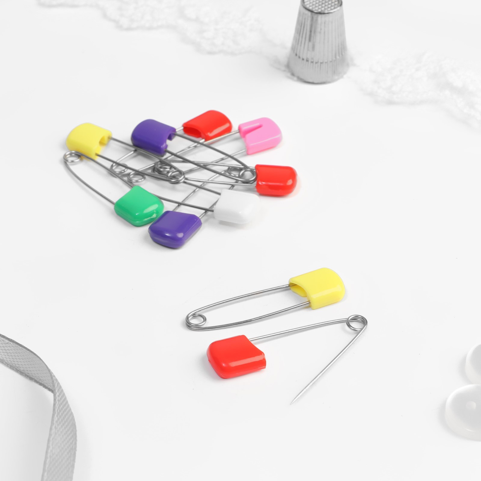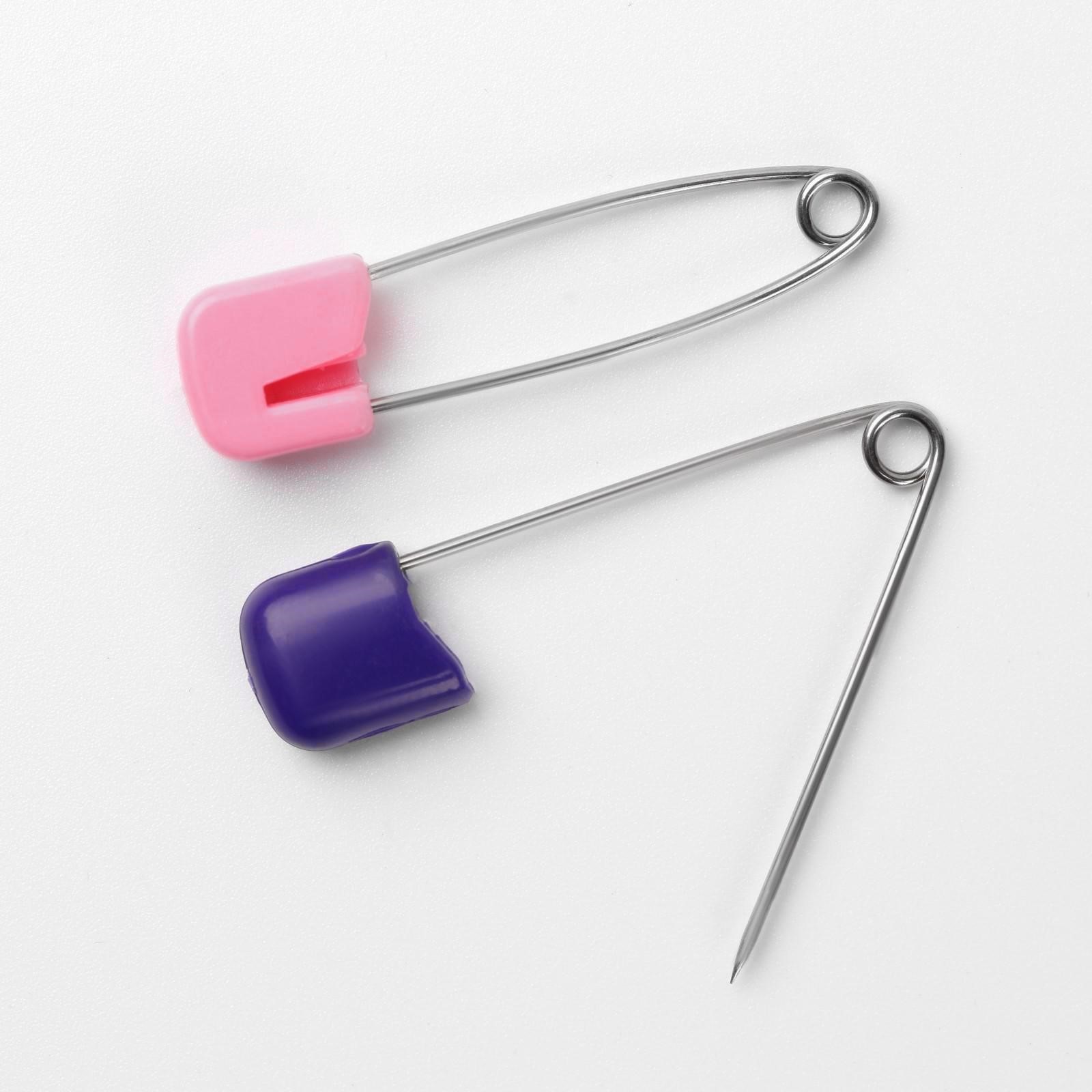 Английские булавки с пластиковыми колпачками станут отличным решением для фиксации постельного белья и одежды: их безопасное использование обеспечит массивный верх, а надежная конструкция облегчит вдевание резинки в пояс, продевания шнура в кулиску верхней одежды и многого другого.