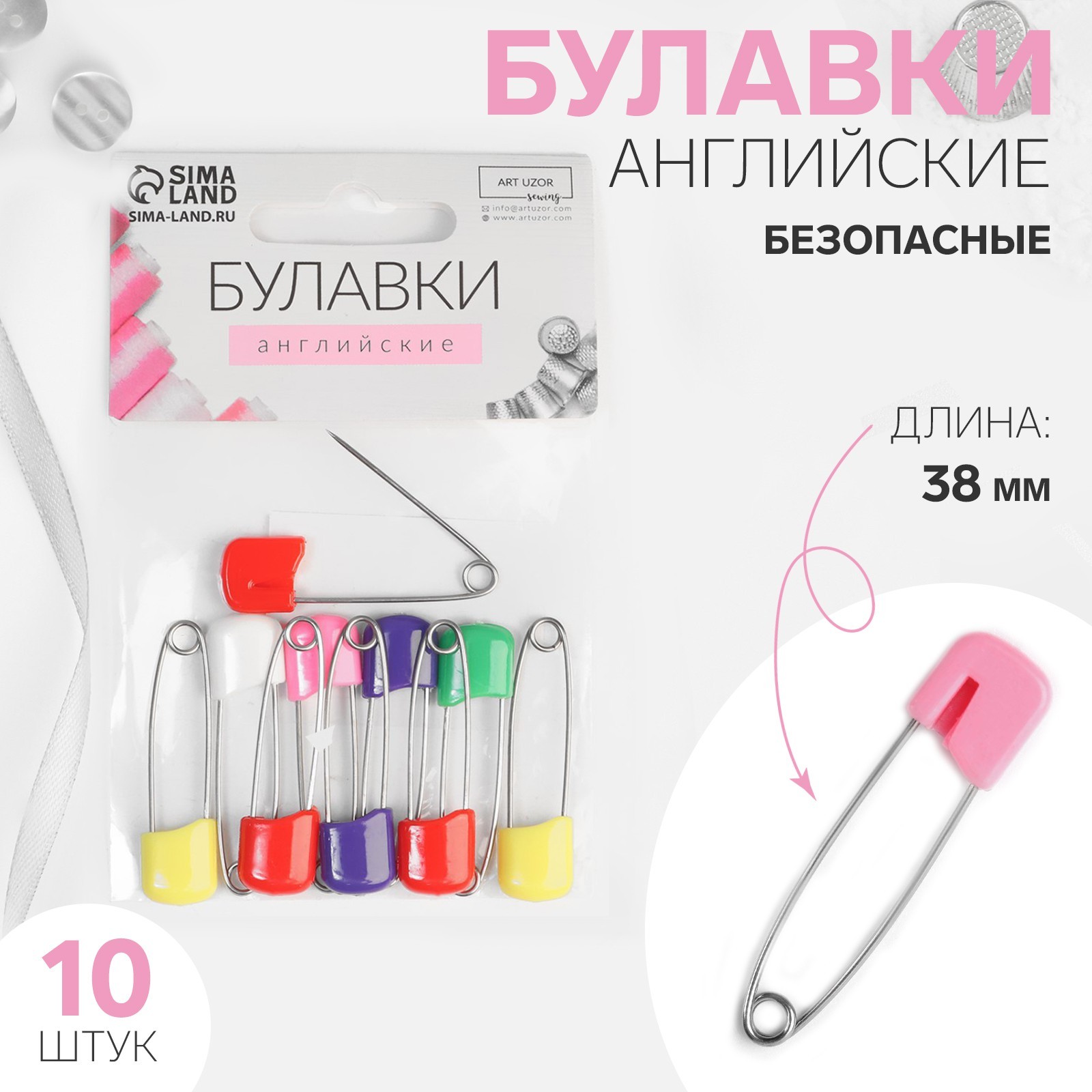 Булавки английские, безопасные, 38 мм, 10 шт., цвет разноцветный Булавки английские, безопасные, 38 мм, 10 шт., цвет разноцветный Булавки английские, безопасные, 38 мм, 10 шт., цвет разноцветный Булавки английские, безопасные, 38 мм, 10 шт., цвет разноцветный