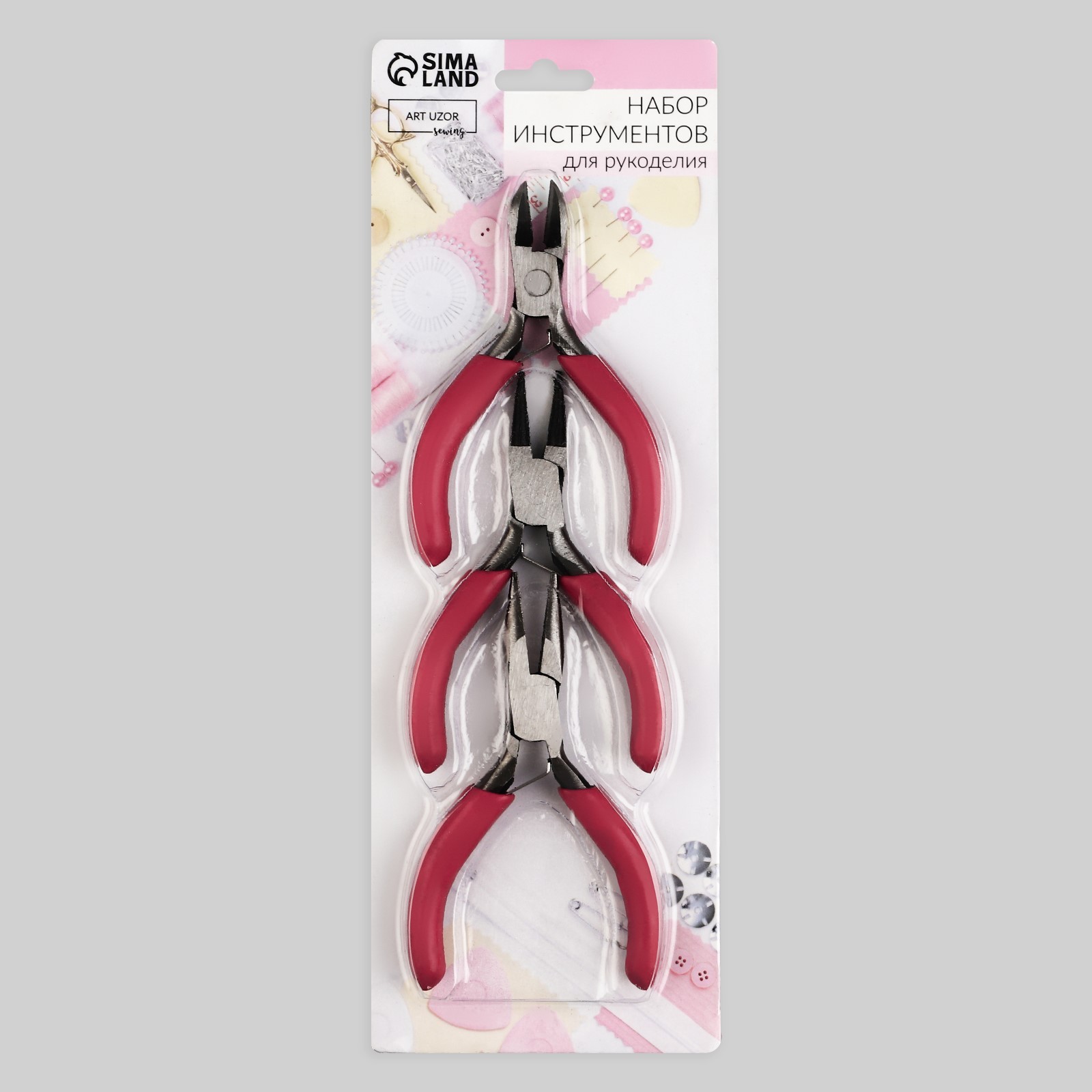 Набор инструментов для рукоделия: бокорезы - 7.5 см, круглогубцы - 8 см, тонкогубцы - 8 см, красный