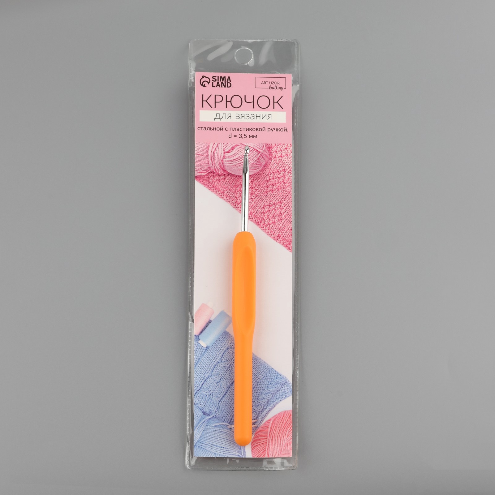 Крючок для вязания, с пластиковой ручкой, D=3.5 мм, 14 см, микс
