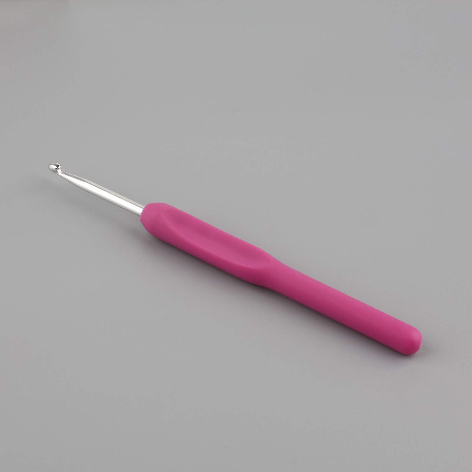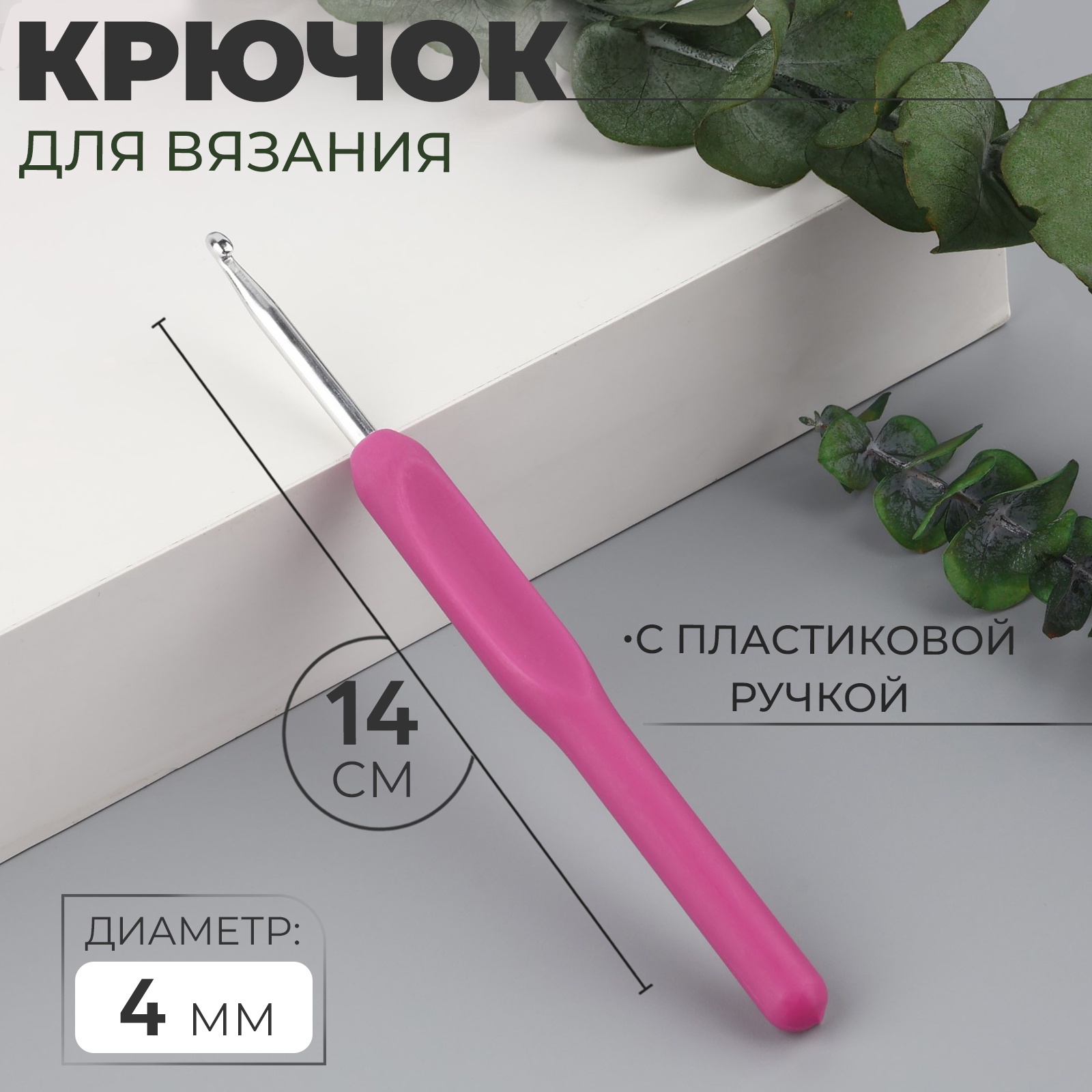 Крючок для вязания, с пластиковой ручкой, D=4 мм, 14 см, фиолетовый