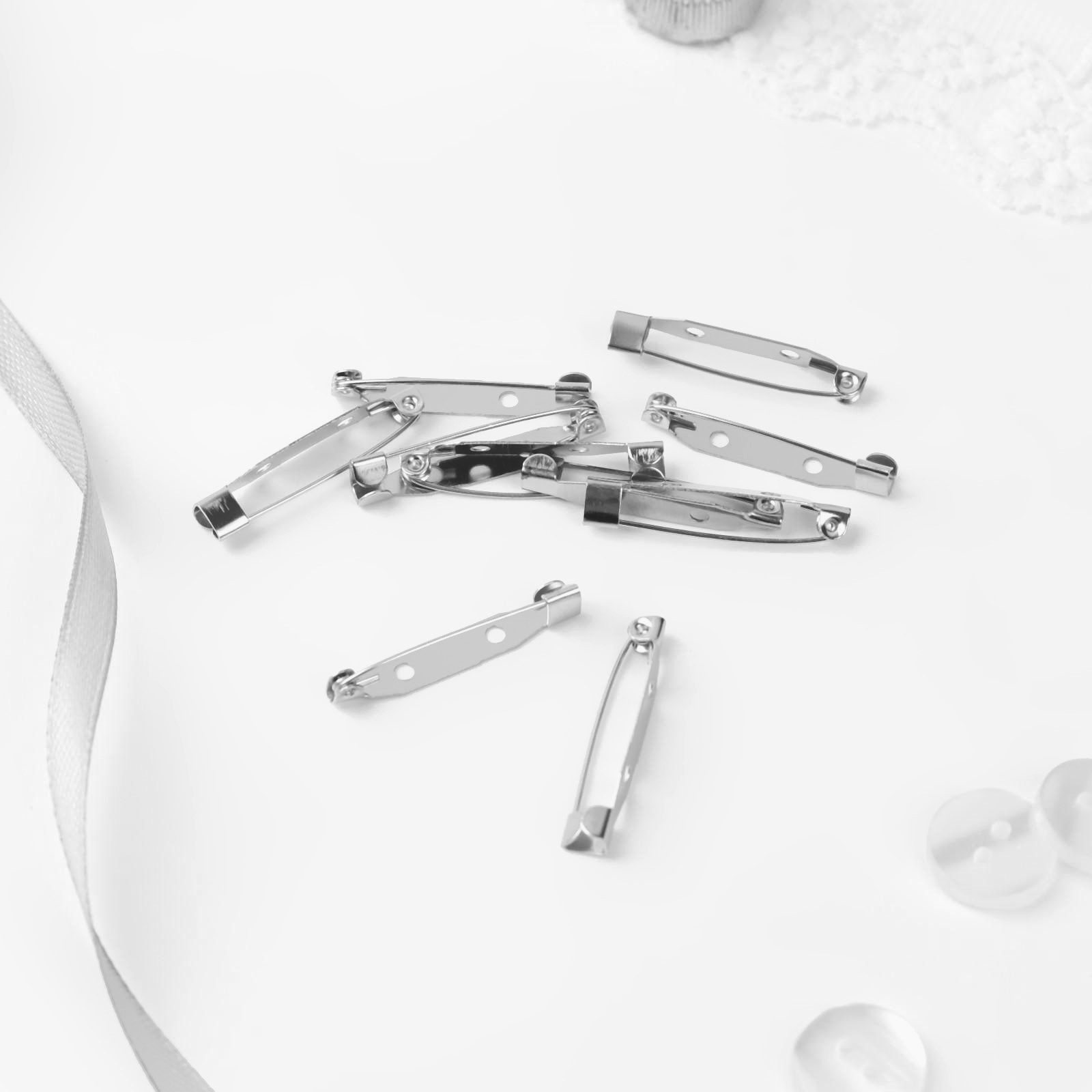 Основа для броши, 2 отверстия, 32 мм, 10 шт., цвет серебряный