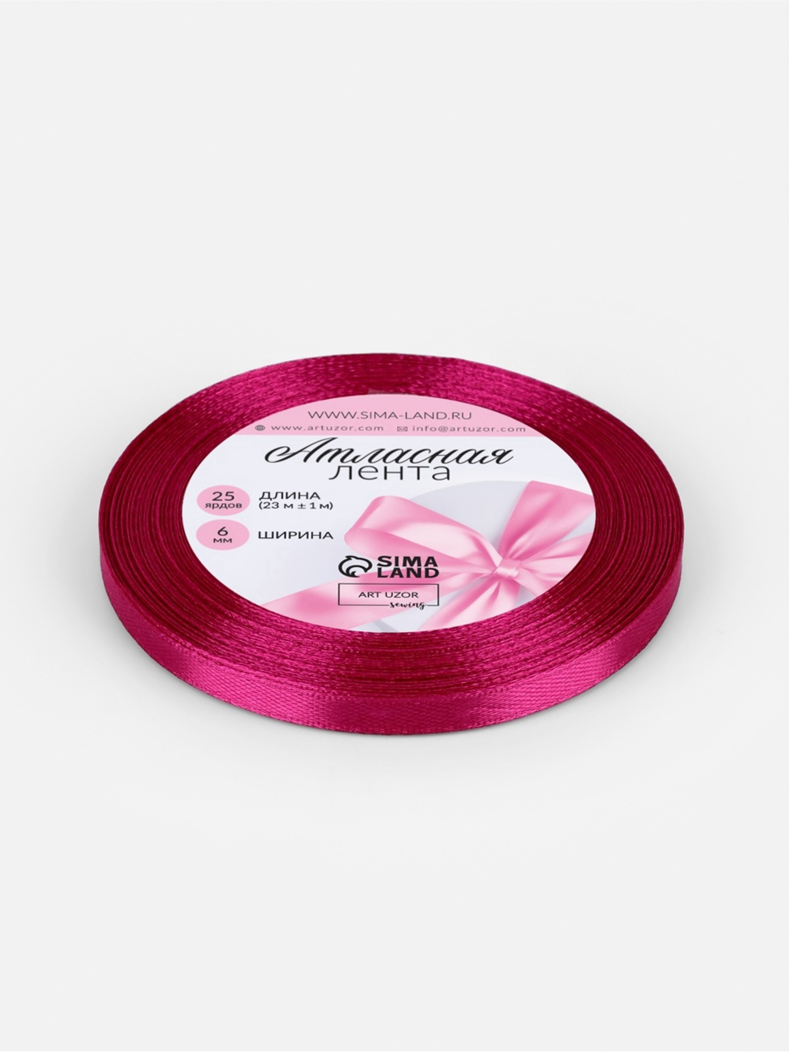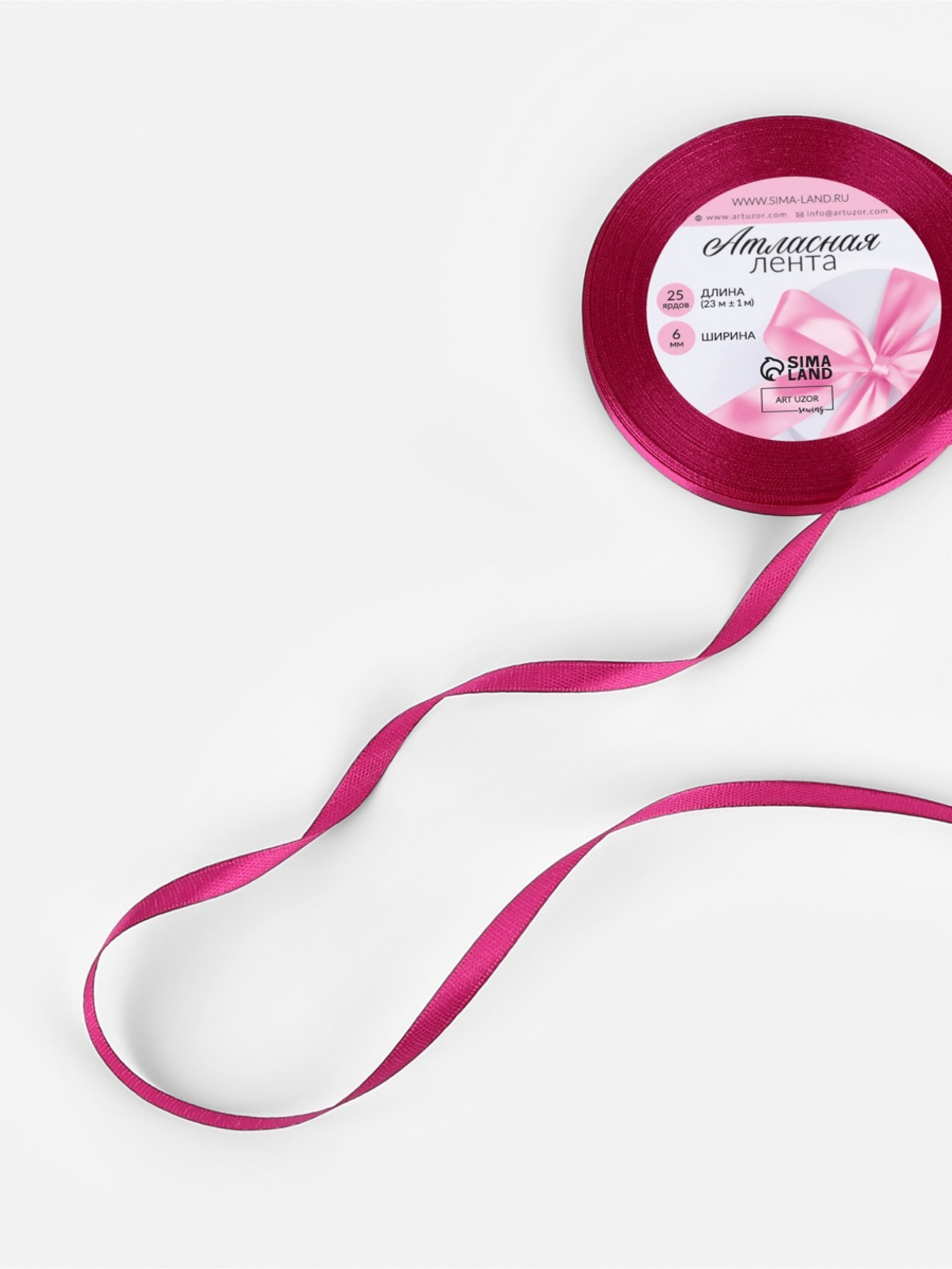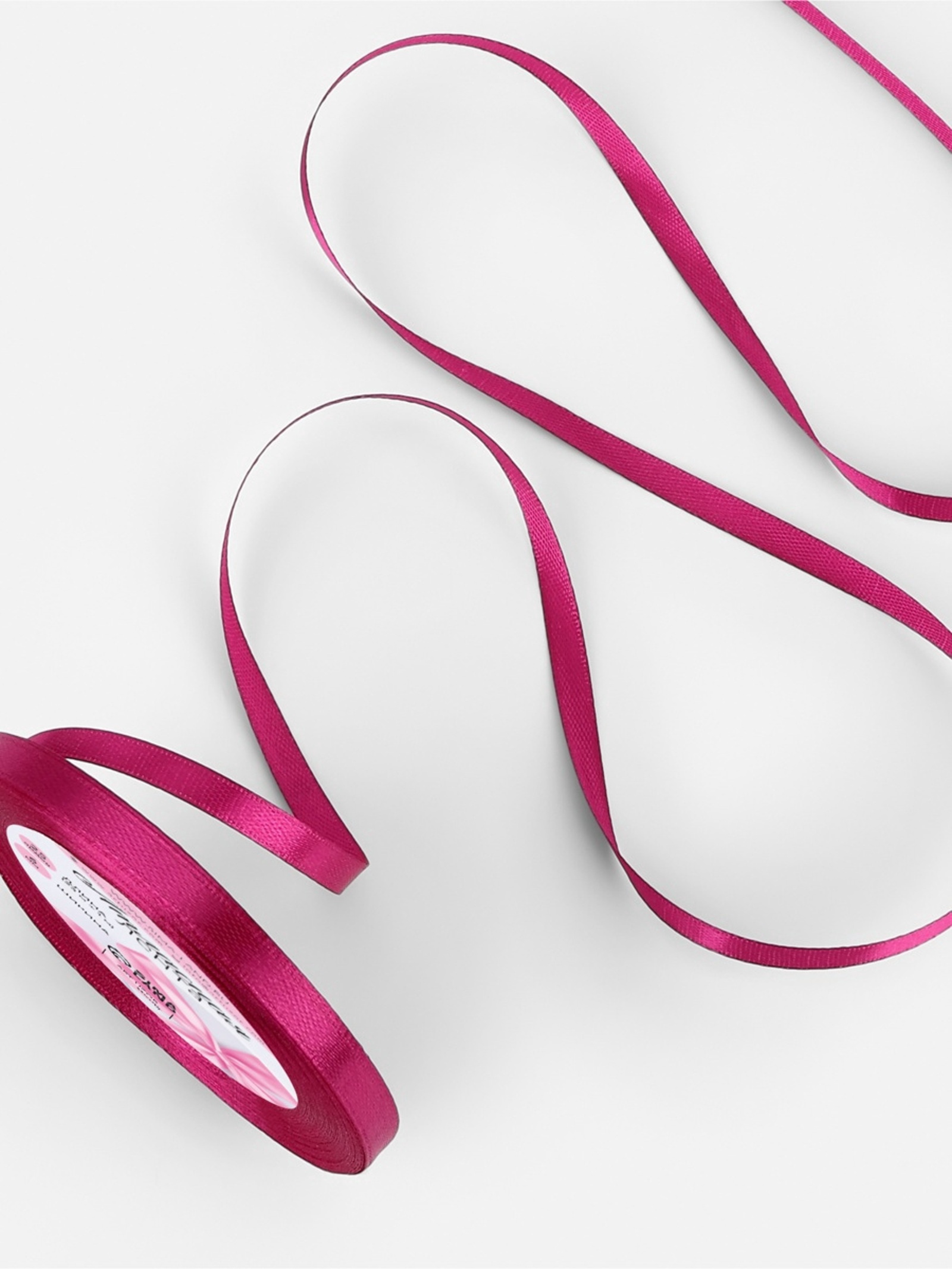 Лента атласная, 6 мм, 23±1 м, ярко-розовая №27