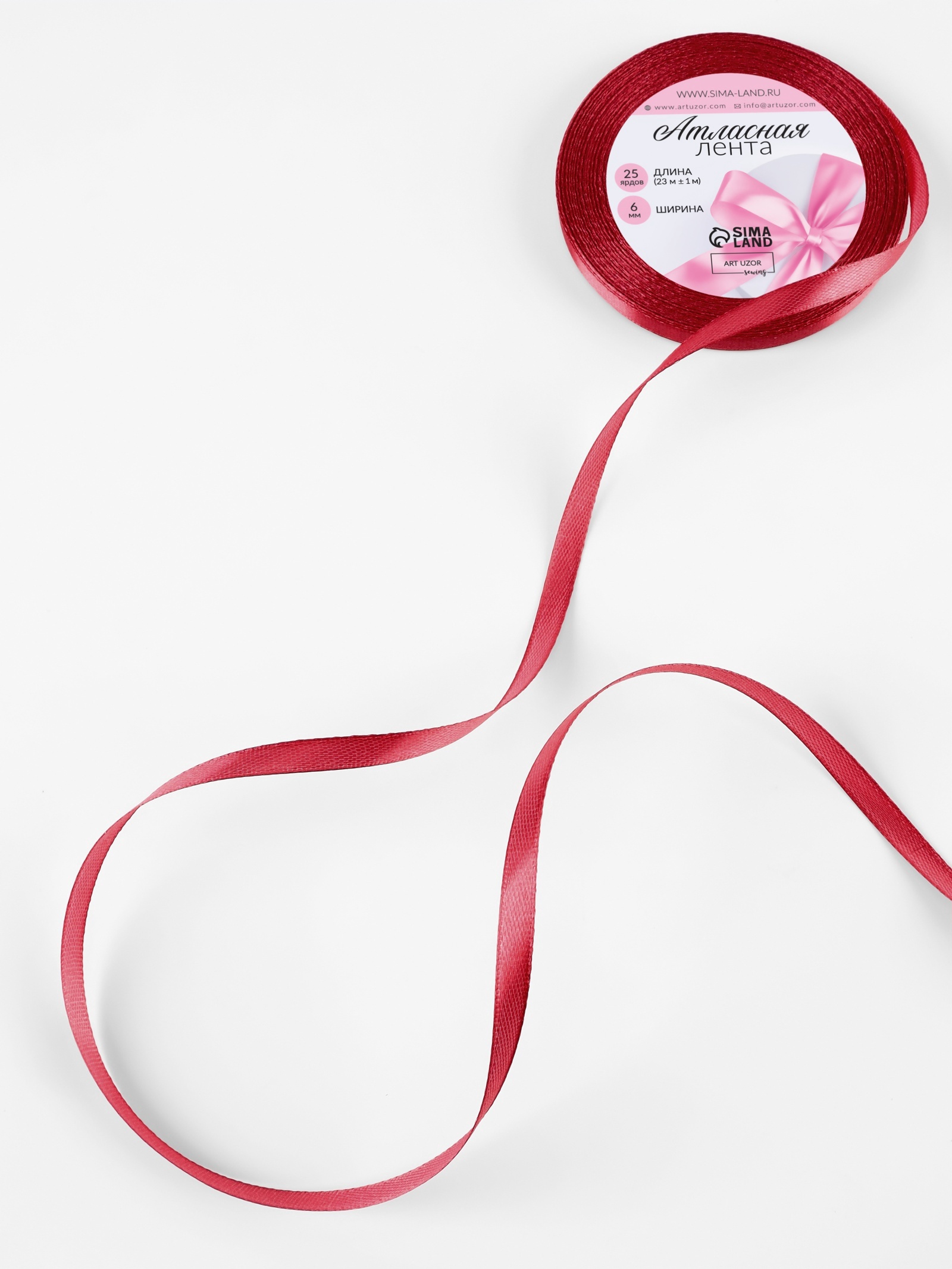 Лента атласная, 6 мм 23 ± 1 м, цвет глубокий красный №33