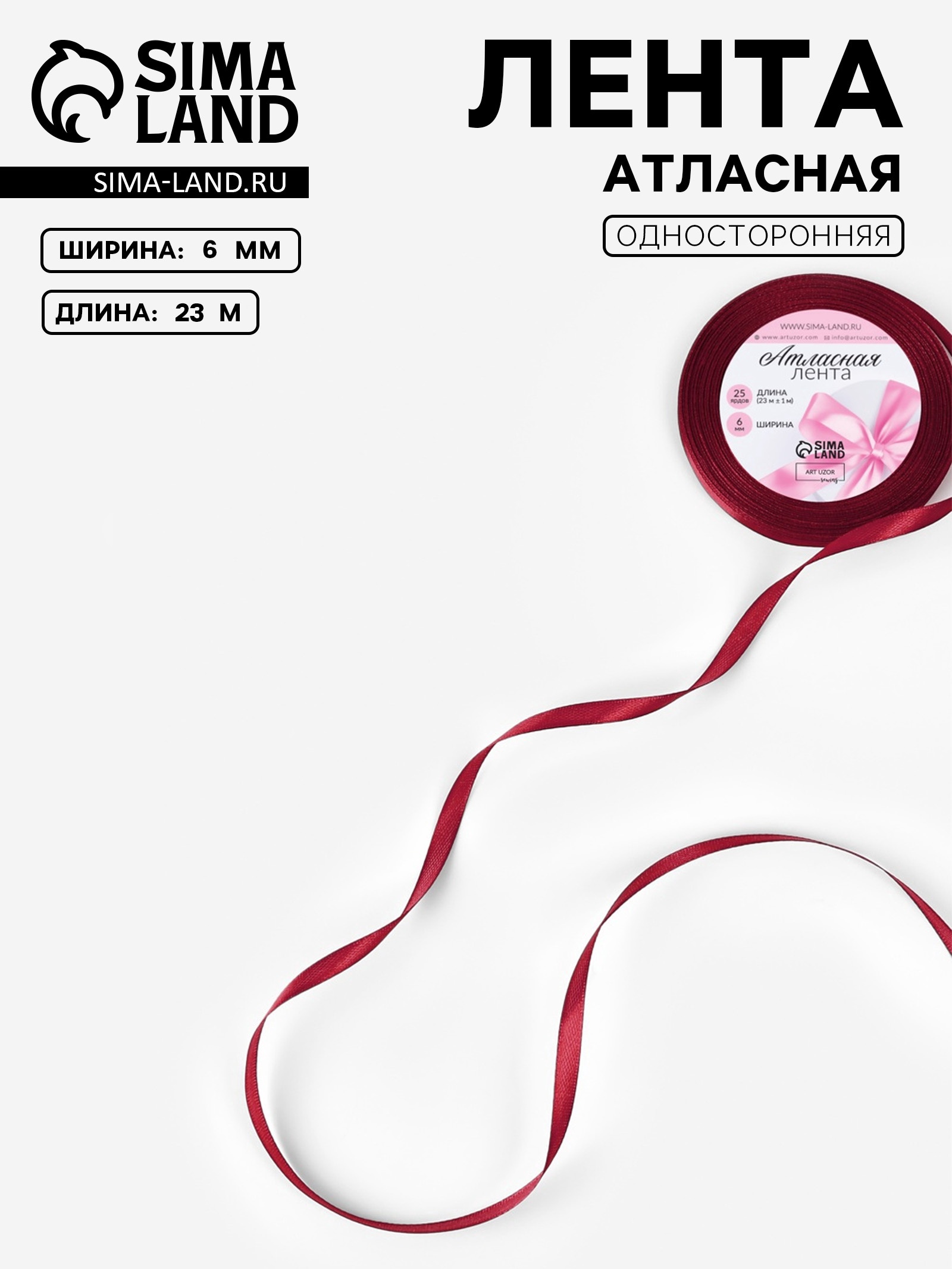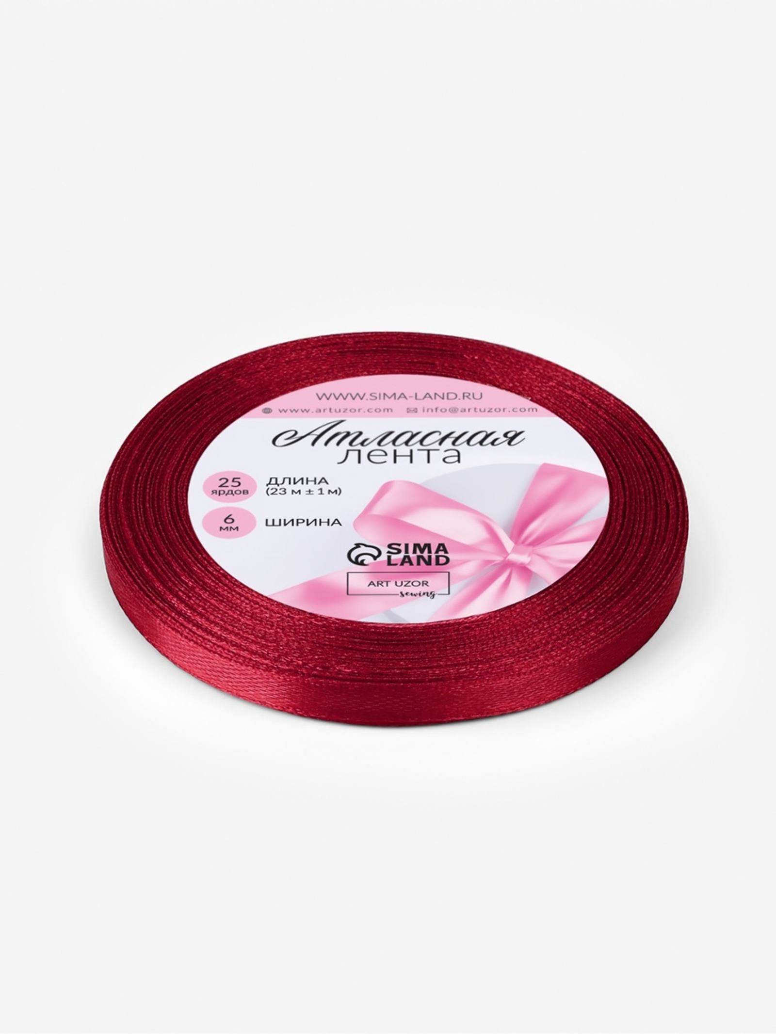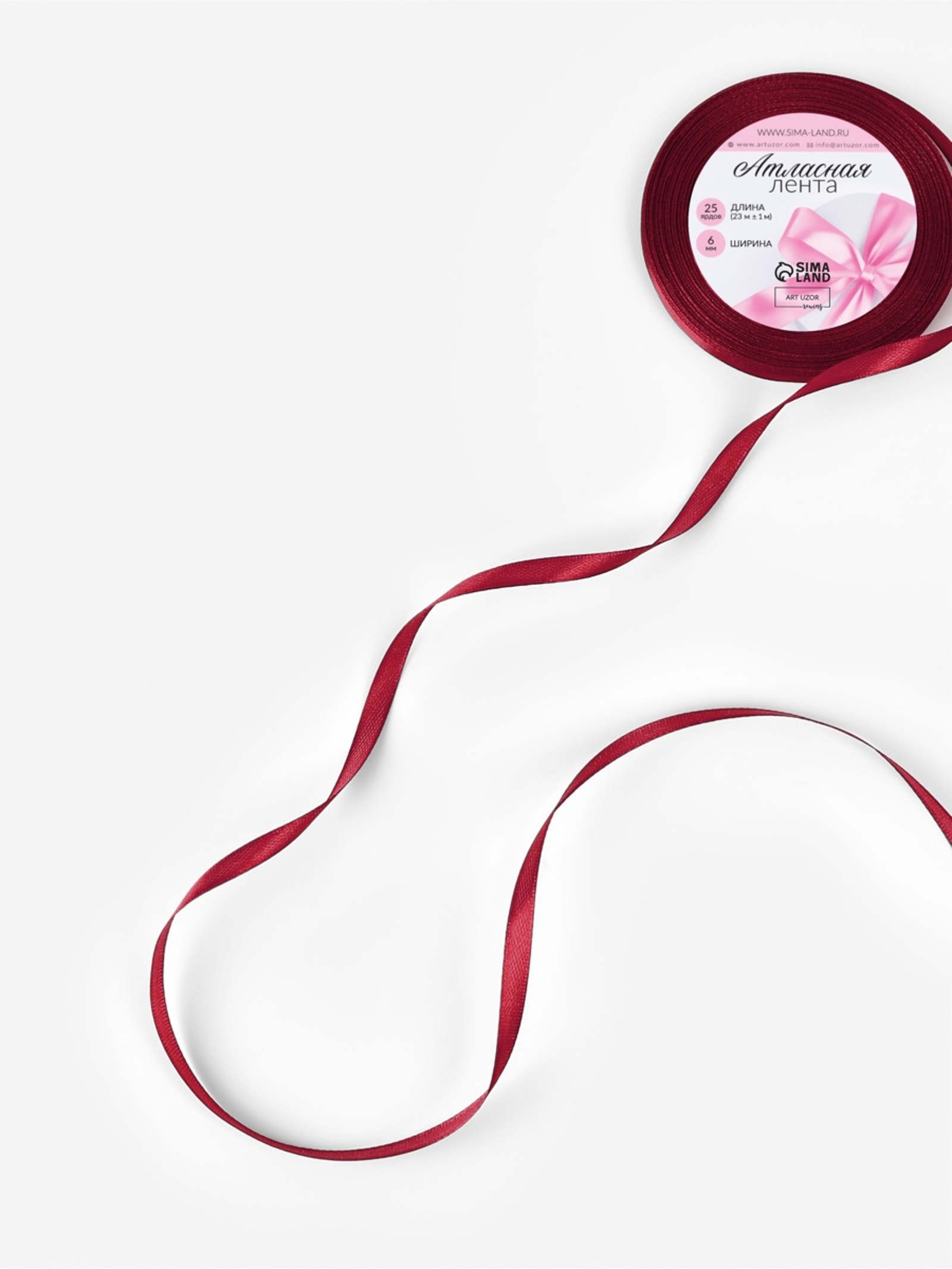 Лента атласная, 6 мм, 23±1 м, бордовая №37