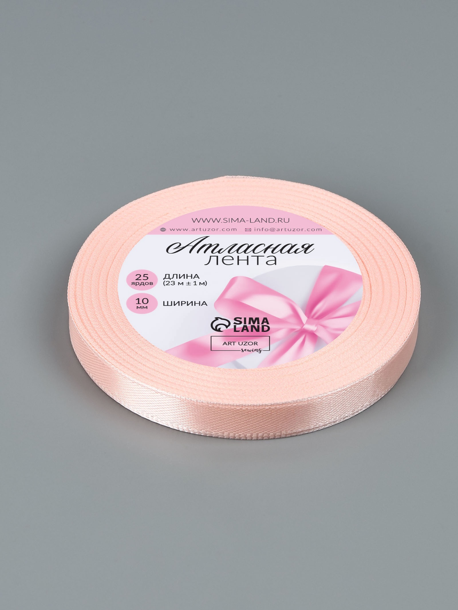 Лента атласная, 10 мм, 23±1 м, пастельно-розовая