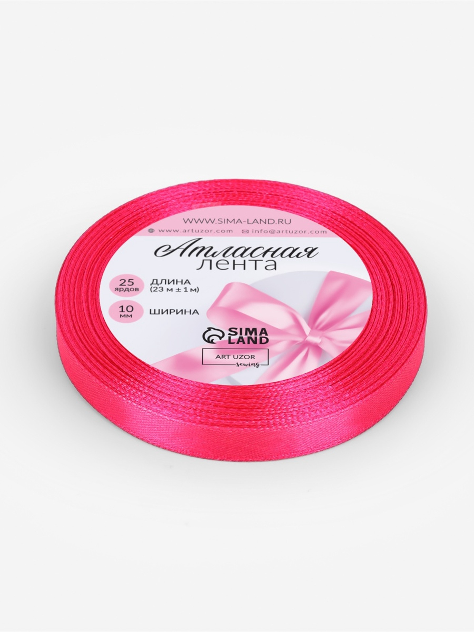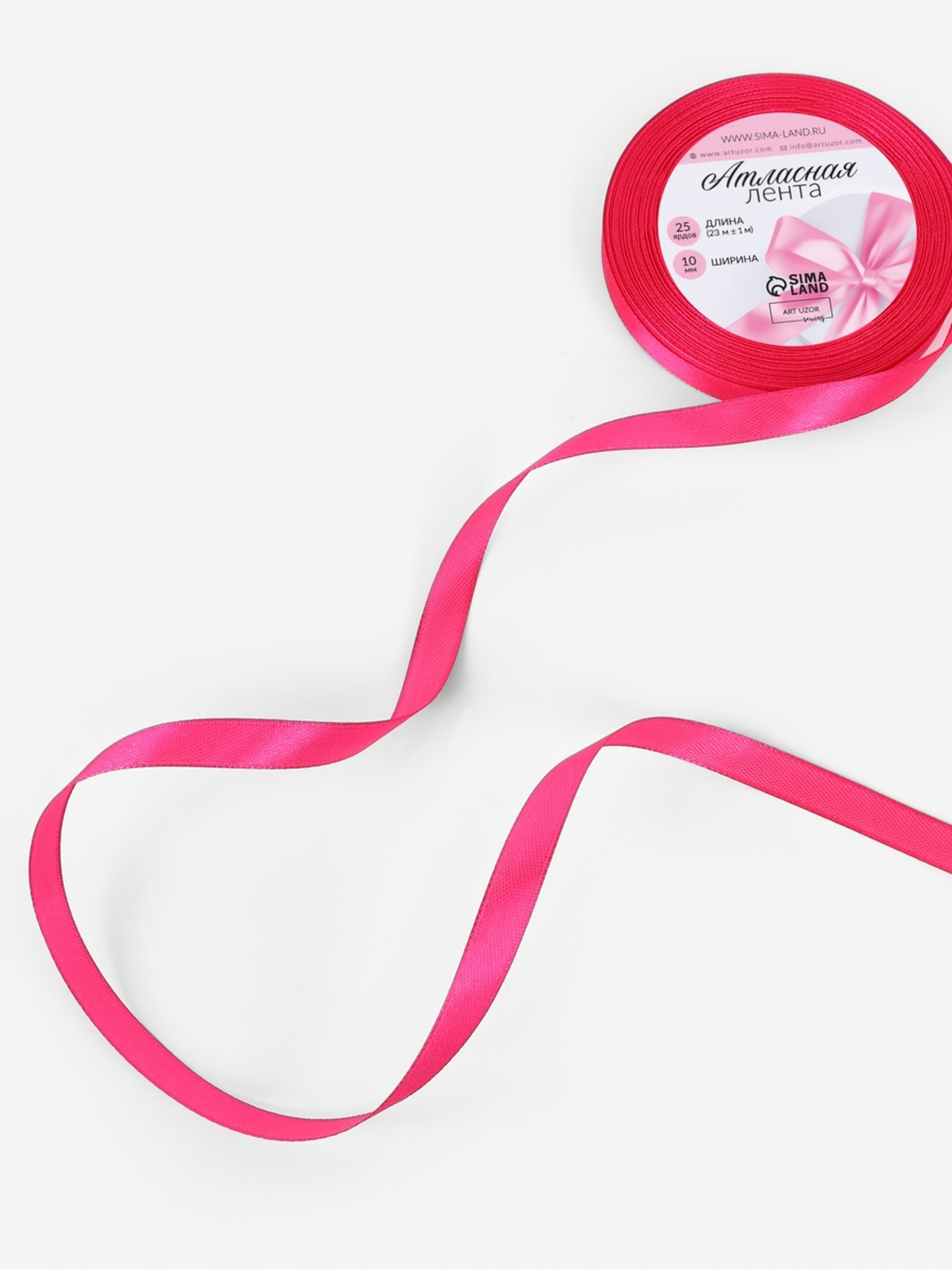 Лента атласная, 10 мм, 23±1 м, ярко-розовая №190