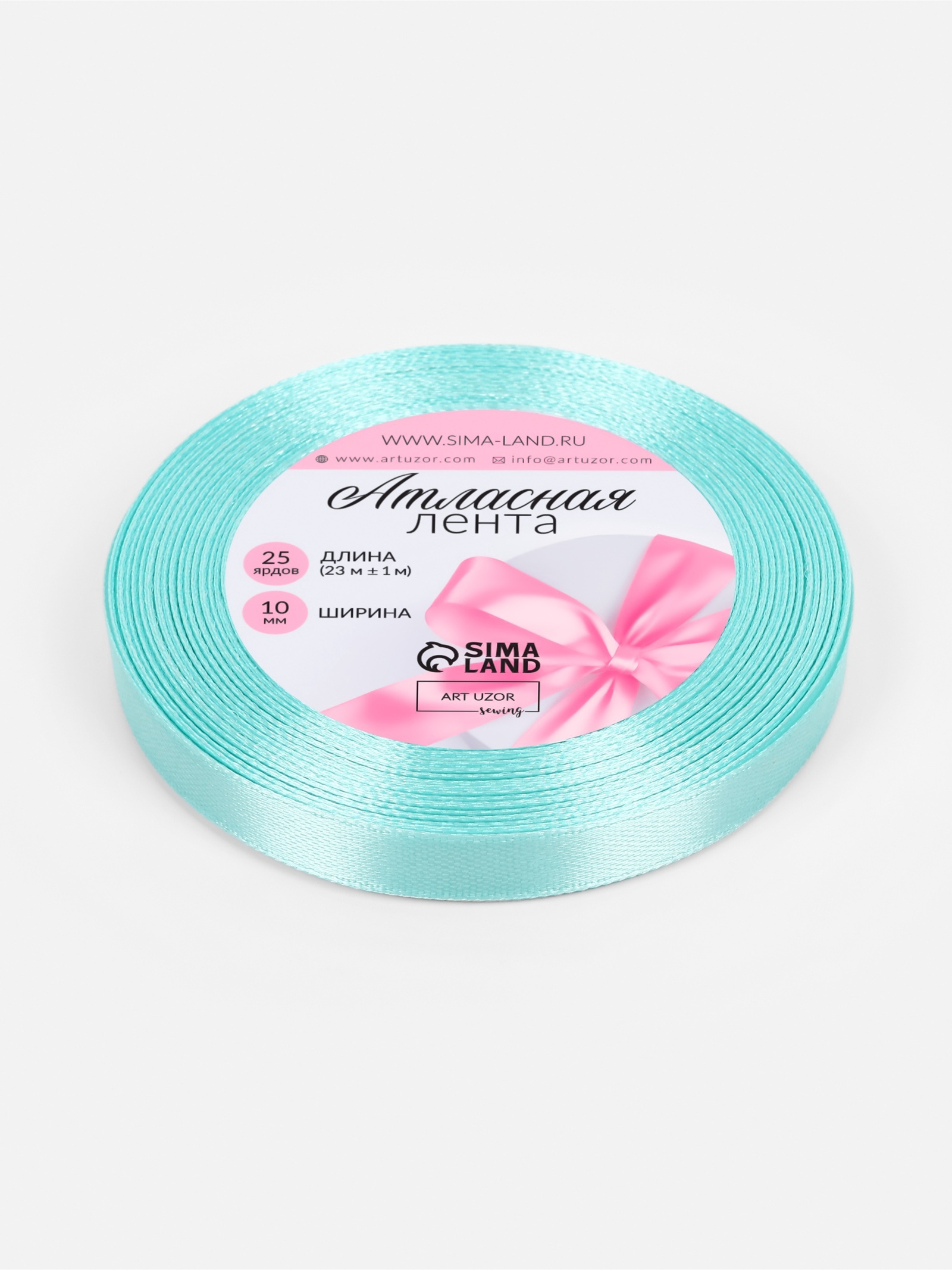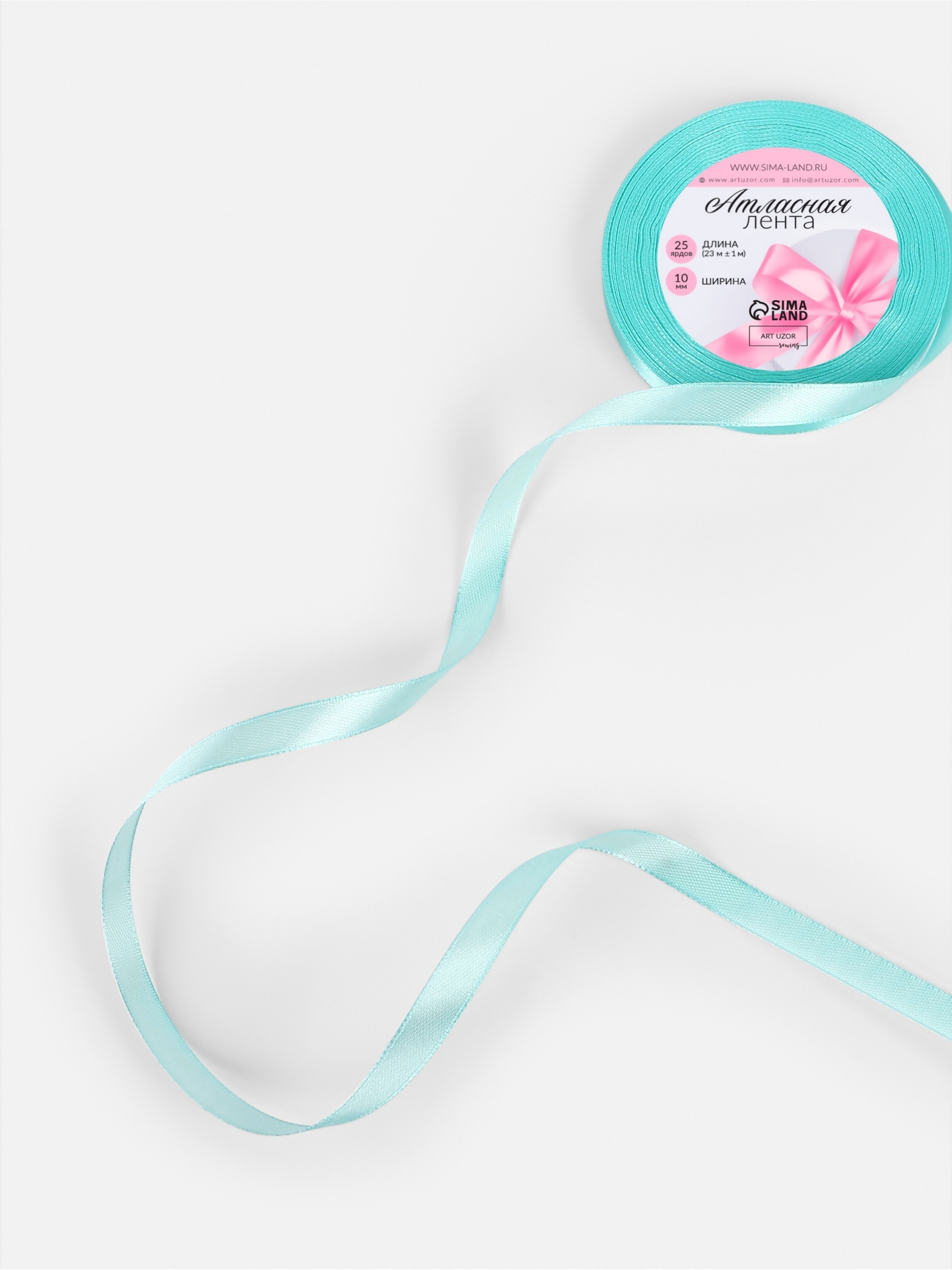 Лента атласная, 10 мм, 23±1 м, голубая №211