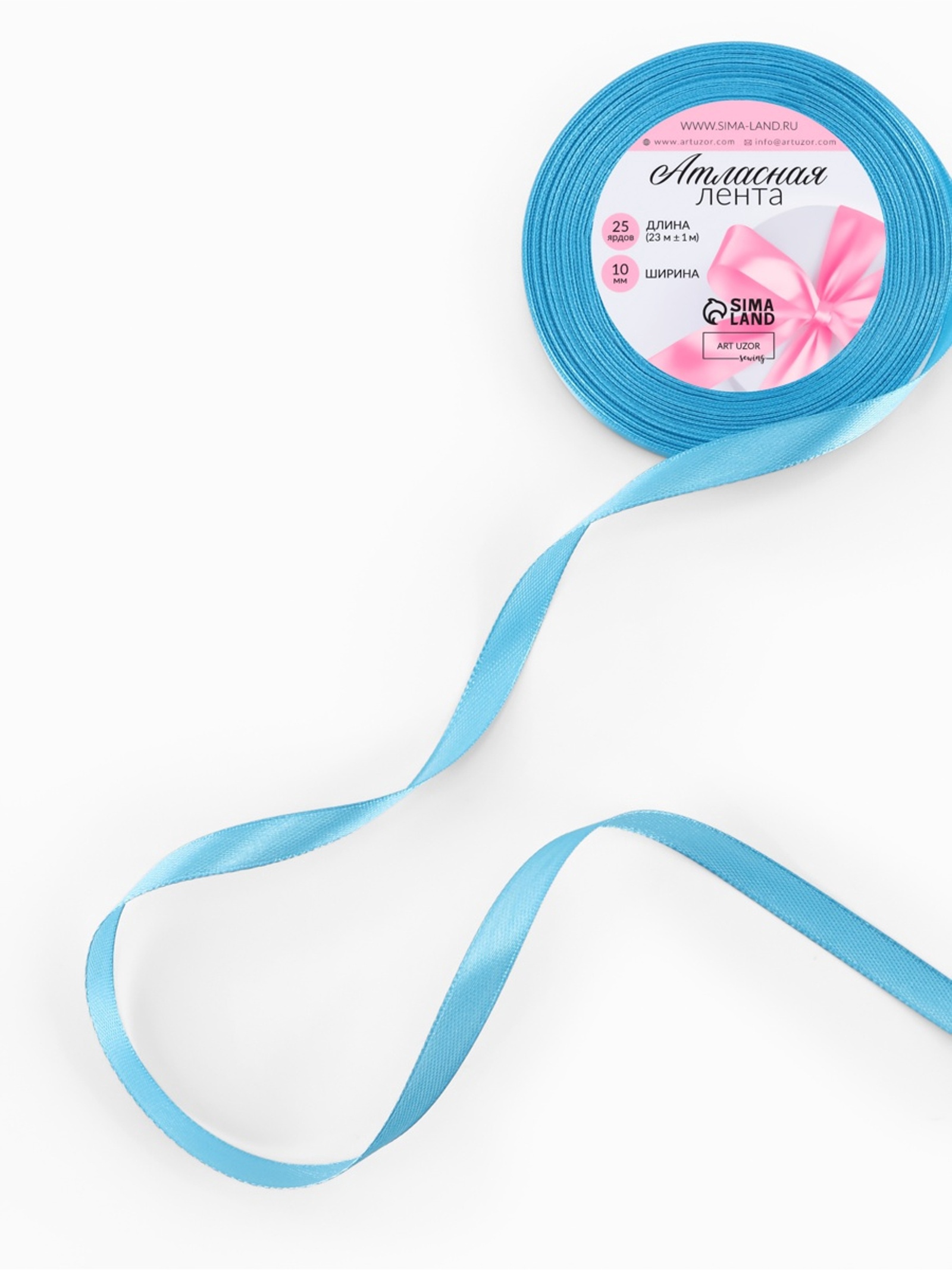 Лента атласная, 10 мм, 23±1 м, ярко-голубая №20
