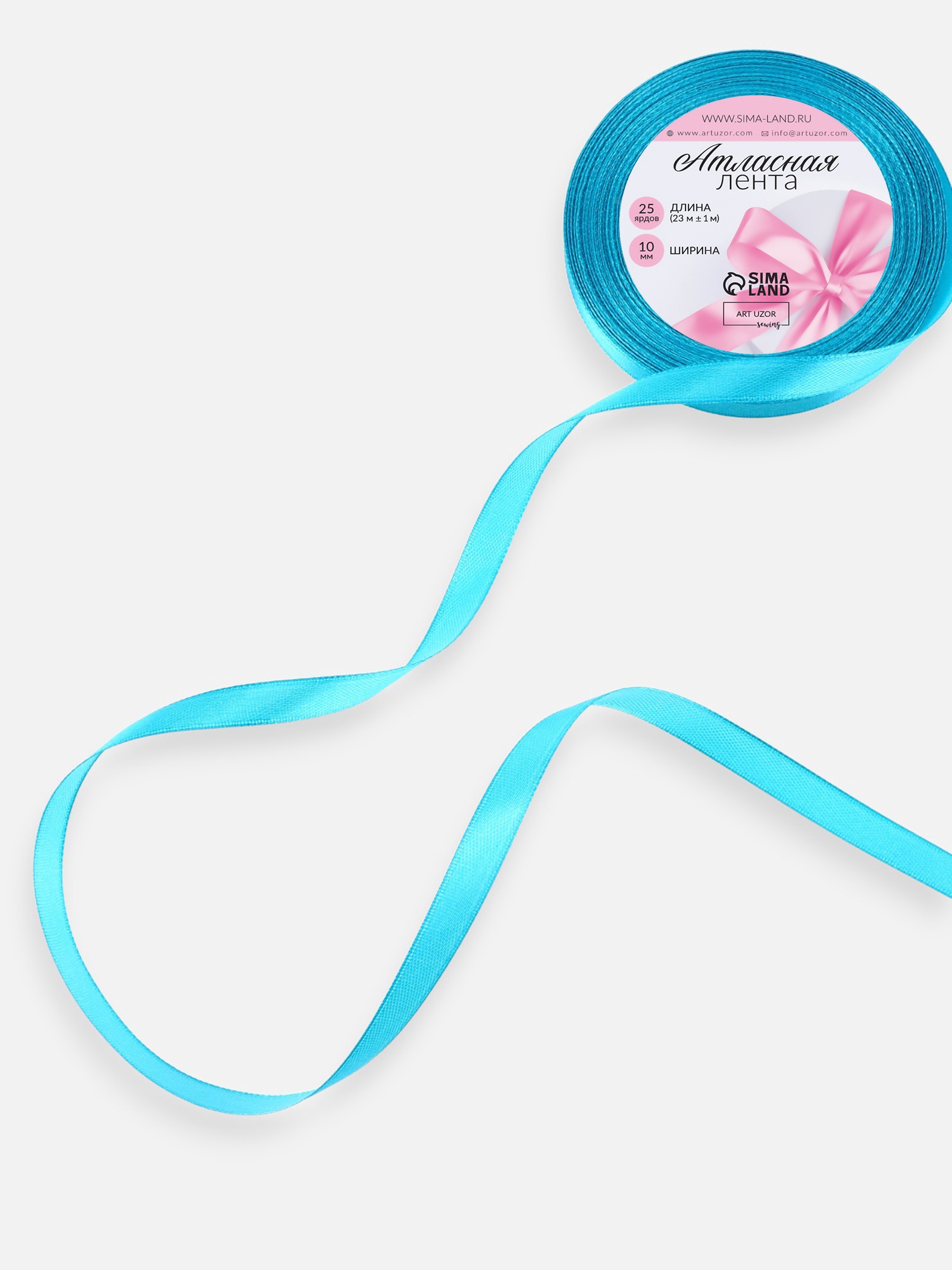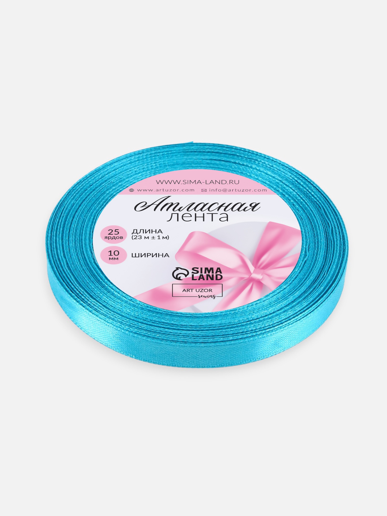 Лента атласная, 10 мм, 23±1 м, голубая №47
