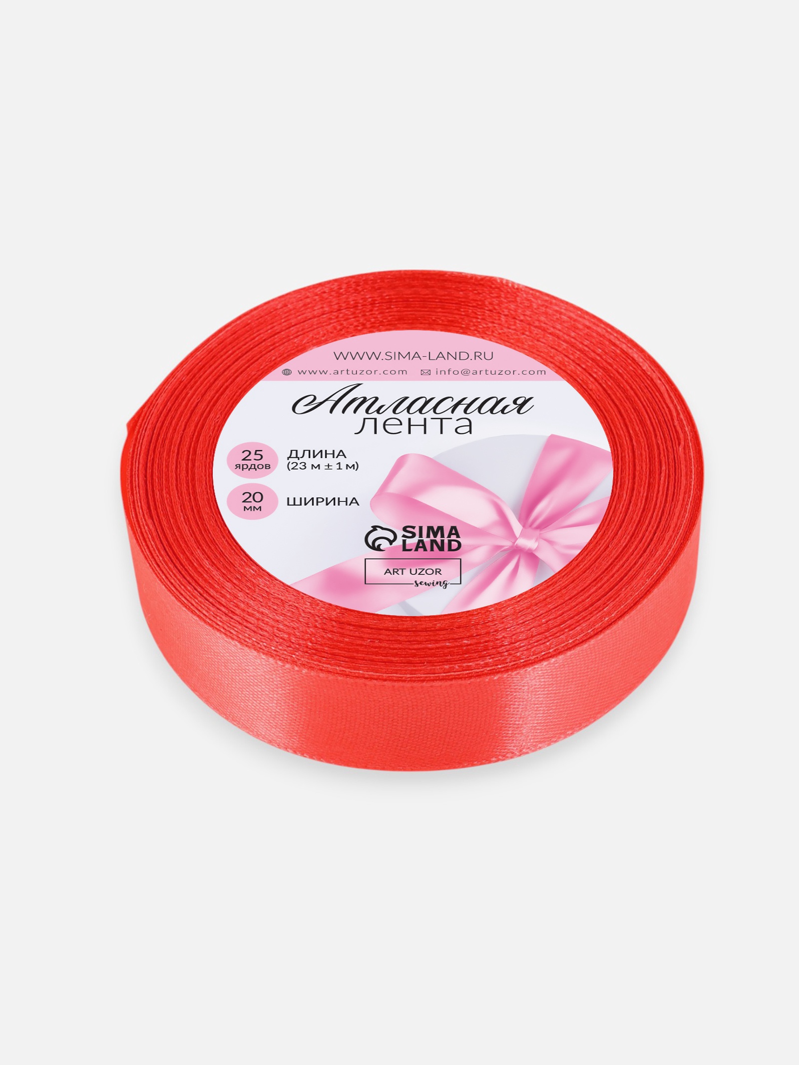 Лента атласная, 20 мм, 23±1 м, розовая №129