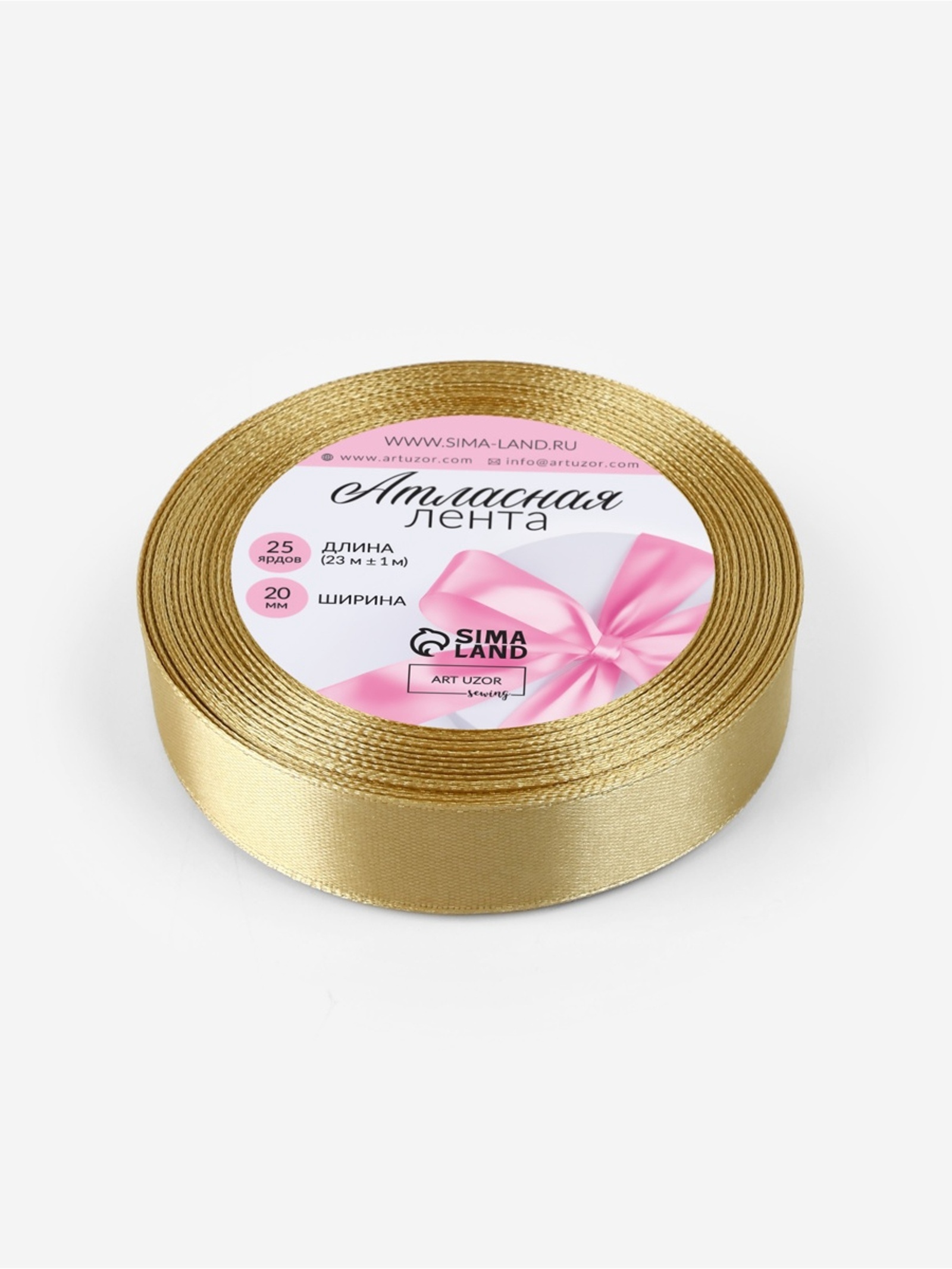 Лента атласная, 20 мм, 23±1 м, цвет золотой №204