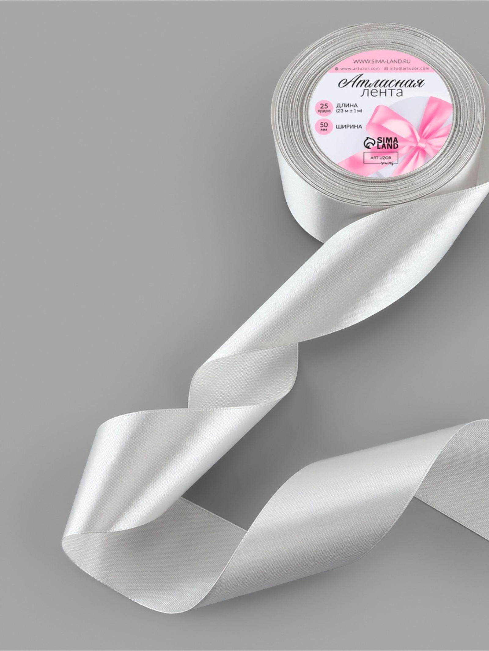 Лента атласная, 50 мм, 23±1 м, цвет серебряный №176