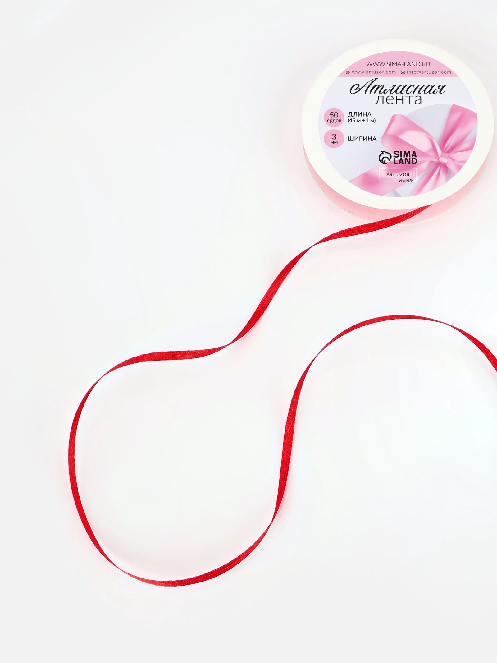 Лента атласная, 3 мм, 45±1 м, красная №26