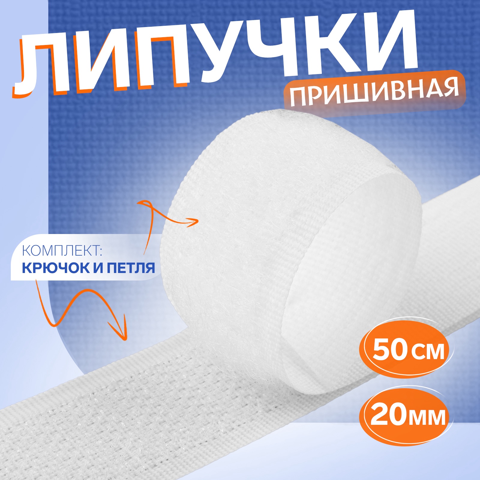 Липучка, 20 мм, 50 см, белая. Универсальная пришивная липучка шириной 20 мм подходит для одежды, текстильных изделий и рукоделия. Белый цвет сочетается с разными тканями, а длина отрезка — 50 см — позволяет использовать его в небольших проектах без лишних затрат. Материал легко интегрируется в швы и обеспечивает надёжное соединение без проскальзывания. Не подвергайте ленту-липучку воздействию больших температур и растворителей полиэфира, это может испортить застегивающие свойства её крючков и петель. Характеристики Ширина — 20 мм.Длина — 50 см.Белый цвет.Пришивное крепление.Стандартная фиксация.Где можно применить Такая липучка удобна в пошиве детской одежды, сумок, чехлов и мягких игрушек. Её используют для регулируемых застёжек в спортивной форме, медицинских бандажах и аксессуарах. Подходит как начинающим мастерам, так и профессионалам, кто ценит точность и надёжность при работе с текстилем. Прочный материал сохраняет функциональность даже после множества циклов открывания и закрывания. Цвет:Белый|Длина, м:0.5|Ширина, мм:20|Вид:Липучка|Вид:Пришивная|Особенности:Без особенностей|Страна:Китай  развернуть описание ▼