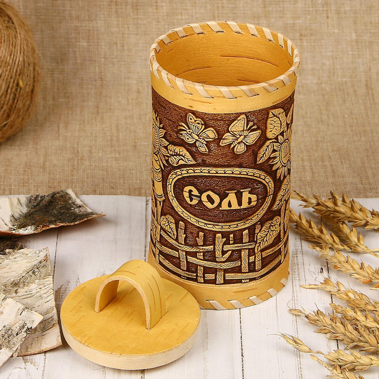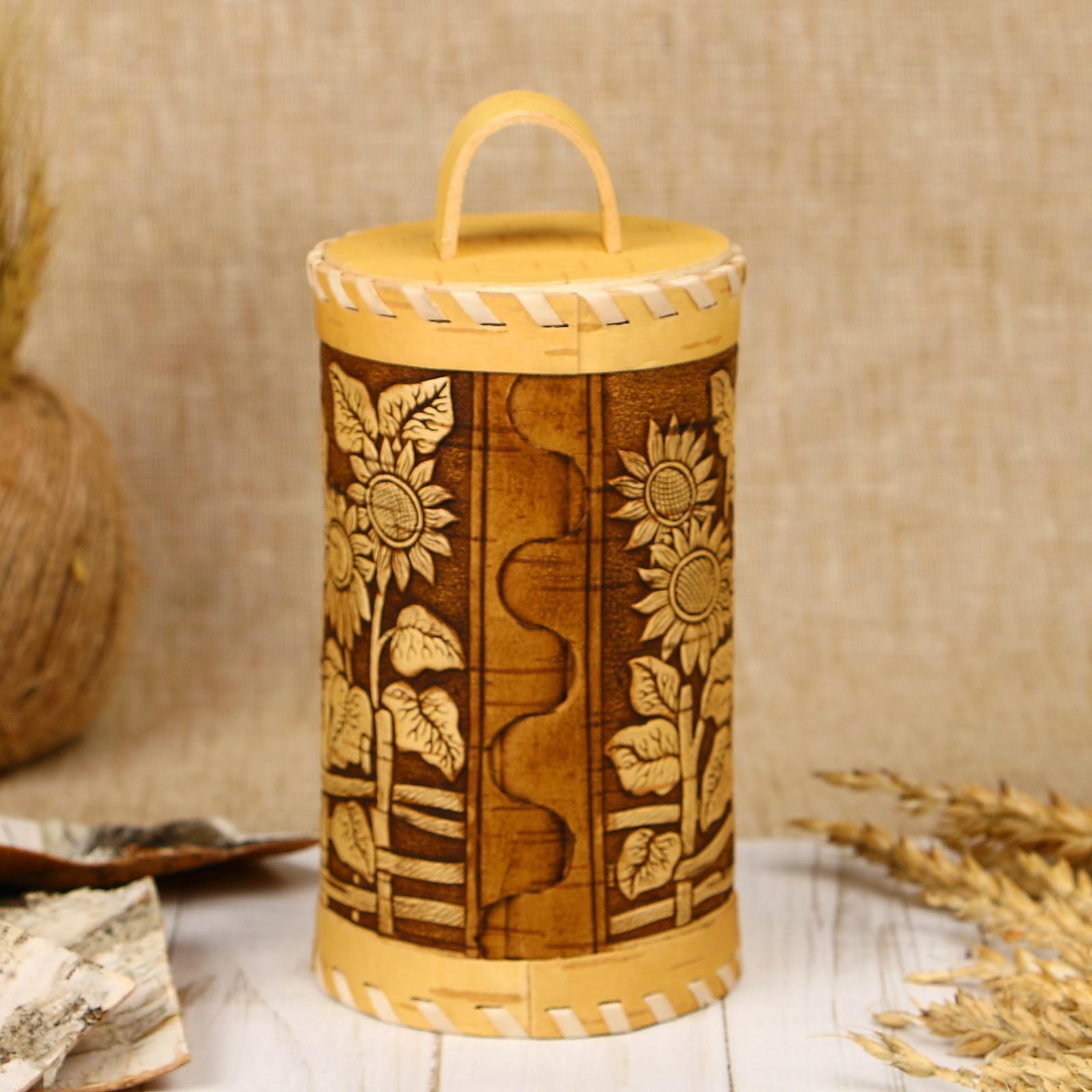 Туес «подсолнухи», соль, 8x17,5 см, береста