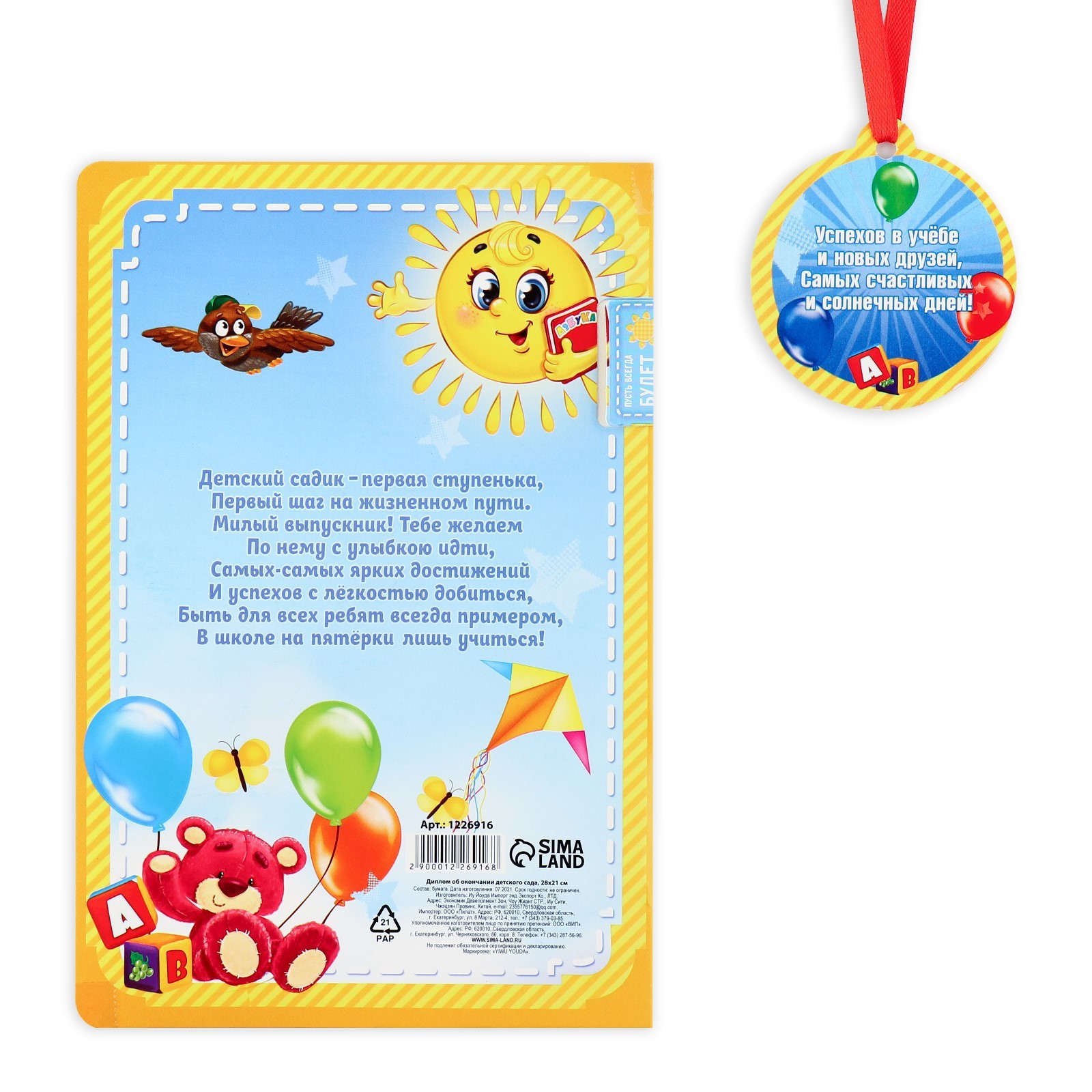 Диплом и медаль на выпускной «выпускника детского сада», 13.7 20.8 см, 250 г/м