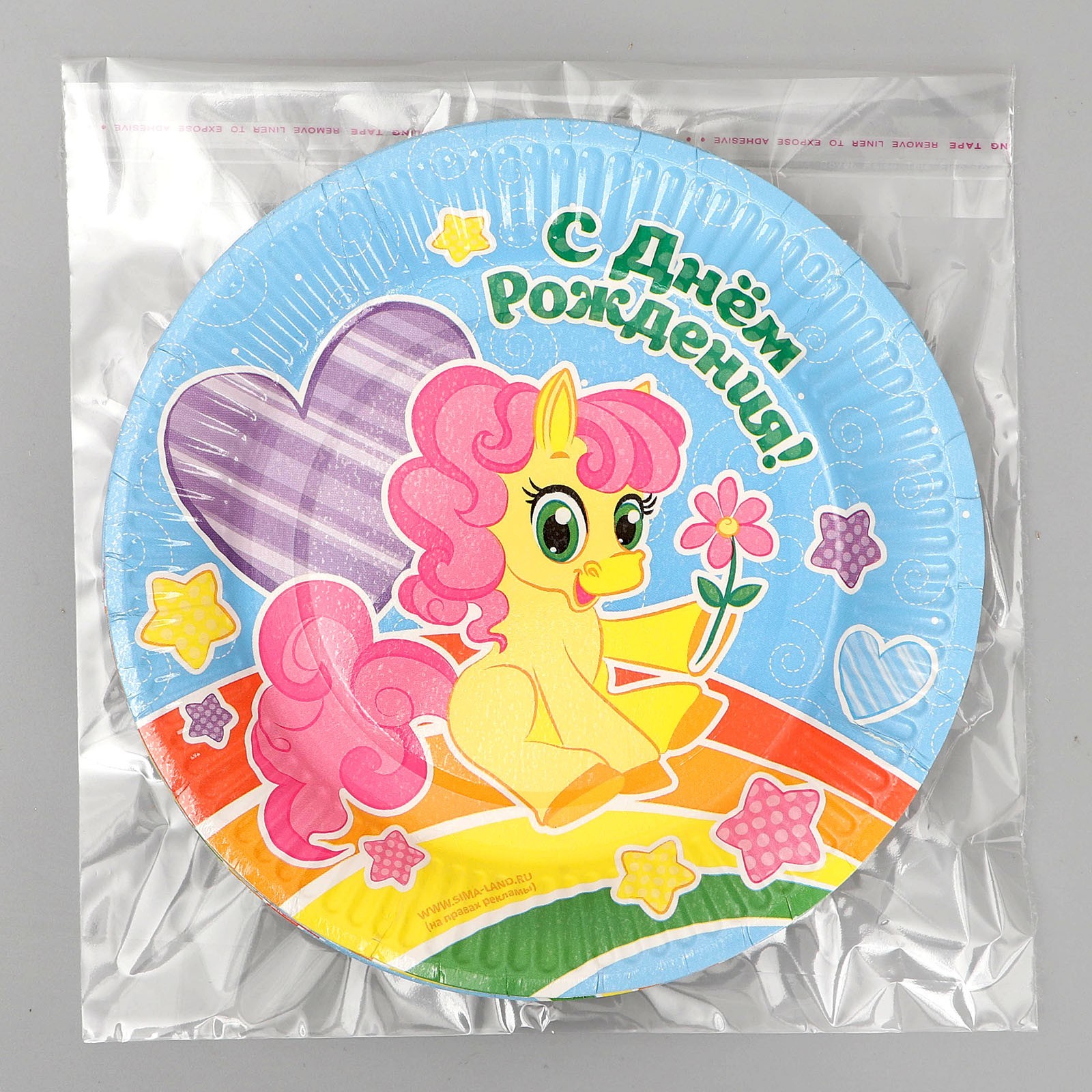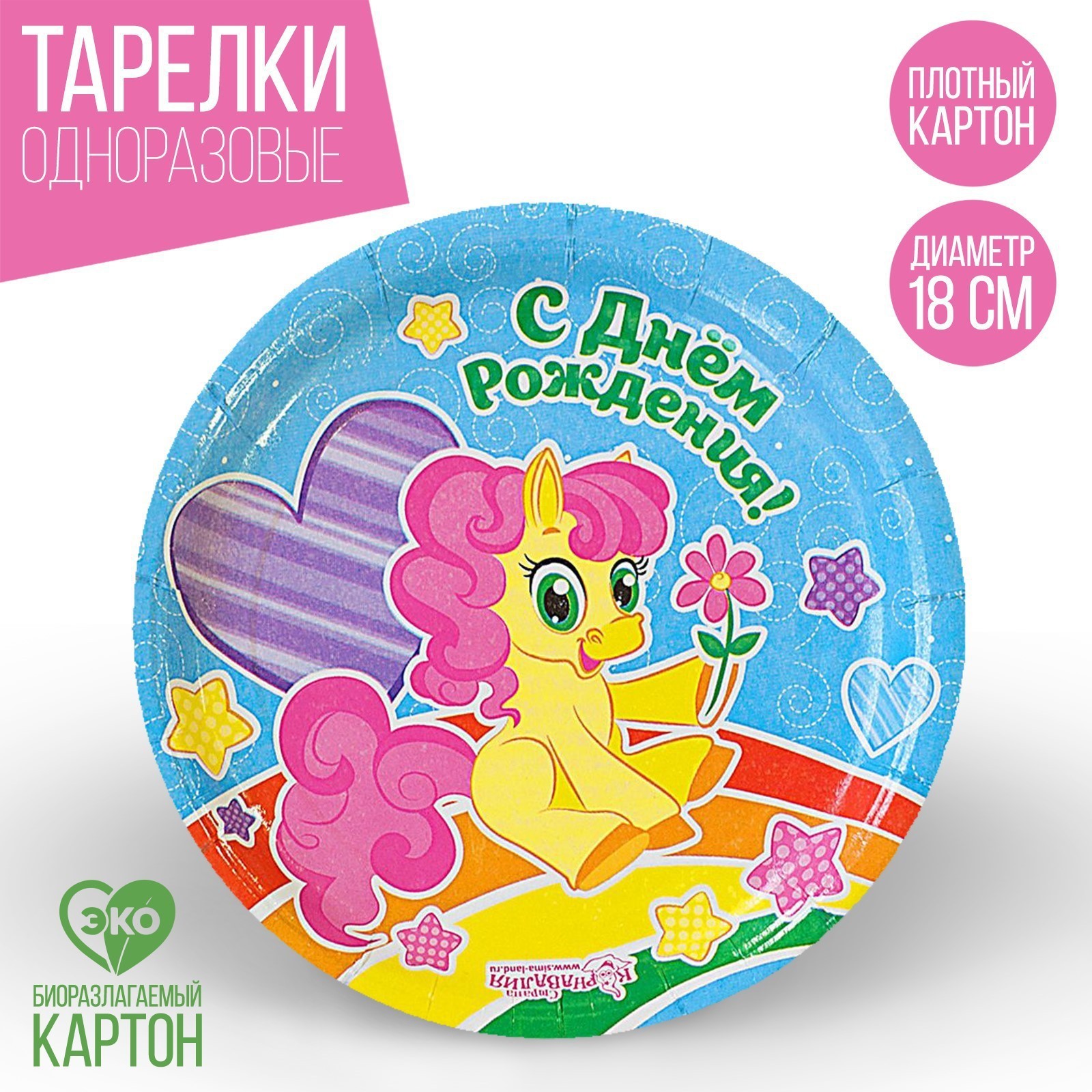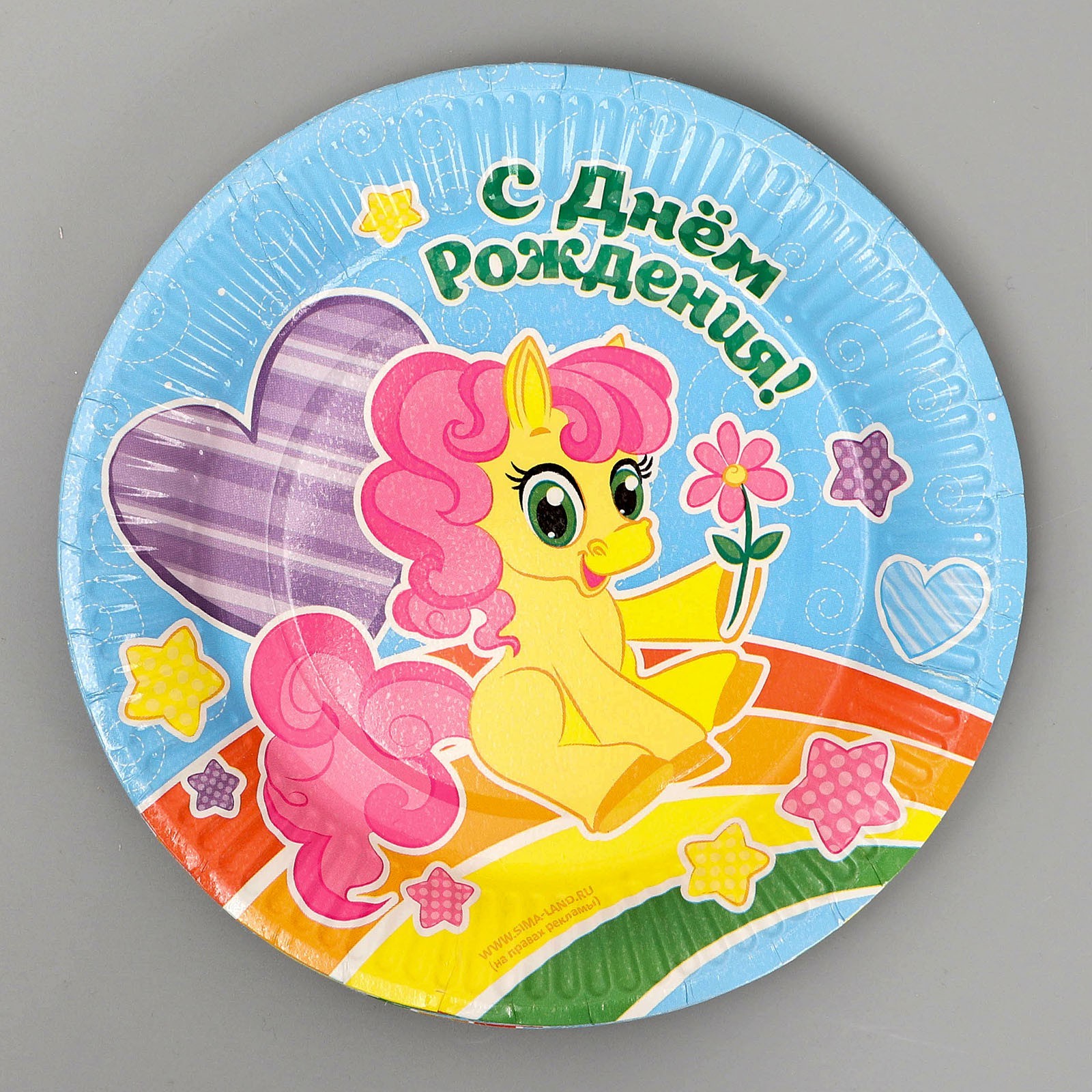 Тарелка одноразовая бумажная "с днем рождения" маленькая пони (18 см)