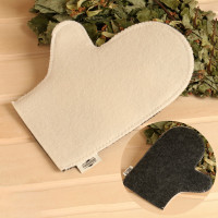 Рукавица для бани комбинированная. Рукавица позволяет безбоязненно поддать пару и закрыть заслонку печи. В ней вы сможете прикасаться к нагретым металлическим предметам и использовать веник. Изделие защищает от порезов, ожогов и мозолей. Таким банным аксессуаром можно массировать тело. Эффект пилинга достигается за счёт энергичного растирания. Благодаря жёсткому ворсу и шерстинкам отшелушиваются омертвевшие частички кожи и усиливается приток крови. Изделия изготавливаются на несколько размеров больше ладони человека, чтобы их было легко снимать и надевать. После процедур подвесьте рукавицу за петельку и оставьте сушиться. При правильном уходе вещь прослужит вам долго. Материал:Войлок|Тип рисунка:Отсутствует|Содержание шерсти:30%|Цвет:Светлая|Цвет:Тёмная|Страна:Россия  развернуть описание ▼