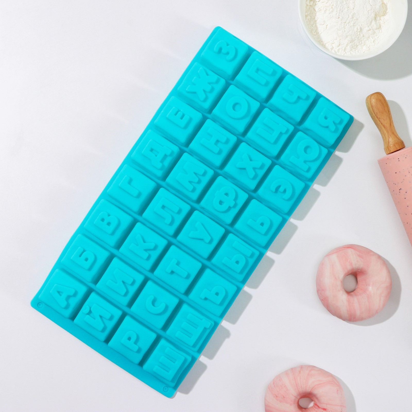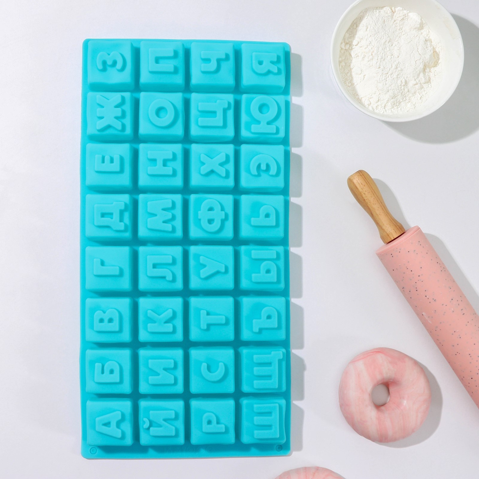 Форма силиконовая для выпечки доляна «алфавит», 35x18 см, 32 ячейки (3,7x3,7x3 см), цвет микс
