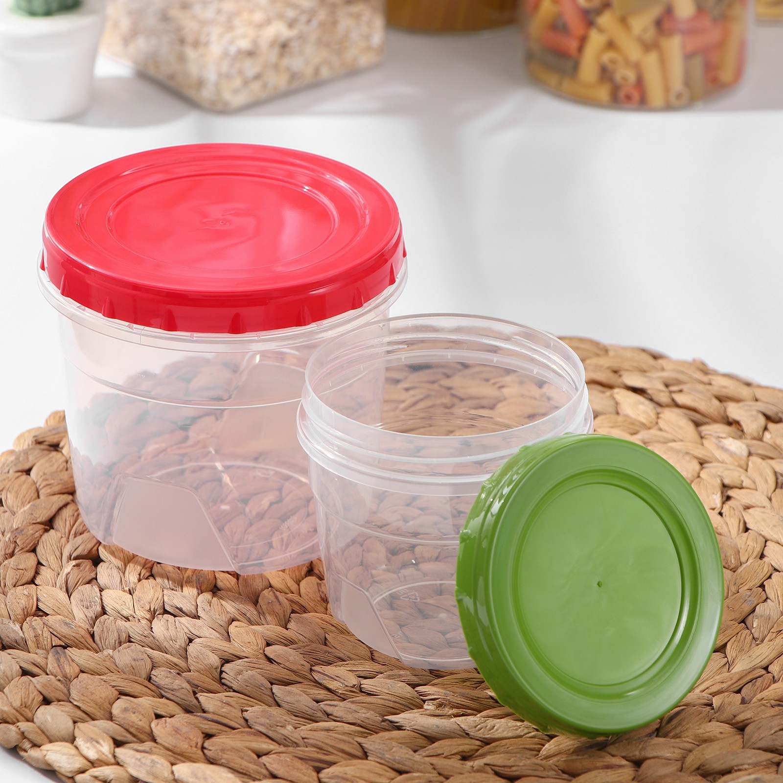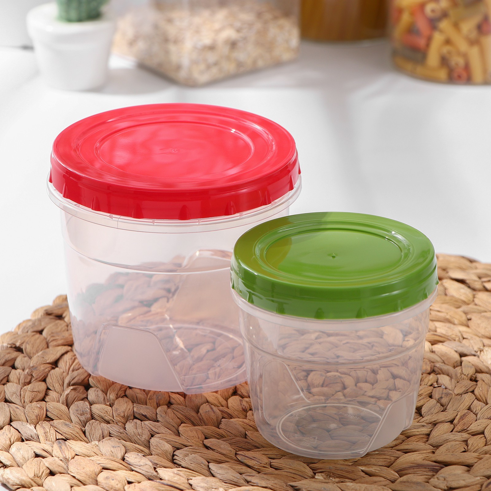 Набор контейнеров круглых с закручивающимися крышками, 2 шт: 500 мл, 1 л, цвет микс. Пищевые контейнеры - это пластиковые емкости, которые используются для хранения и транспортировки продуктов питания. Они имеют ряд преимуществ: такими как легкость, прочность и устойчивость к повреждениям. Преимущества:Прочность и долговечность;Безопасность;Легкость и удобство;Эстетичность;Экономичность. Цвет: МИКС Форма: Круглая parts count: 0 Объём, л: 0.5 Объём, л: 1 В наборе, шт.: 2 Объём, мл: 500 Объём, мл: 1000 tnved: 3924900009 Крышка: Да Материал: Пластик Герметичная крышка: Нет Можно использовать в СВЧ-печи: Да Форма: Круг, шар, цилиндр  развернуть описание ▼