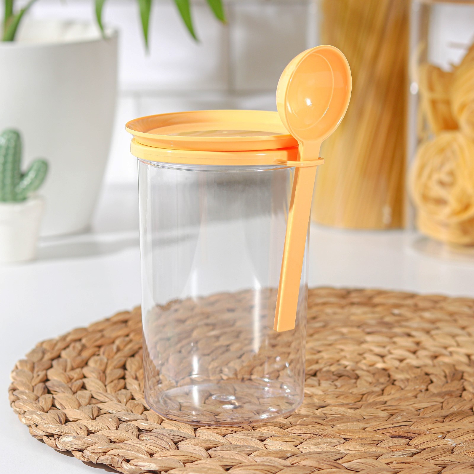 Банка для сыпучих продуктов, 700 мл, с ложкой, цвет микс