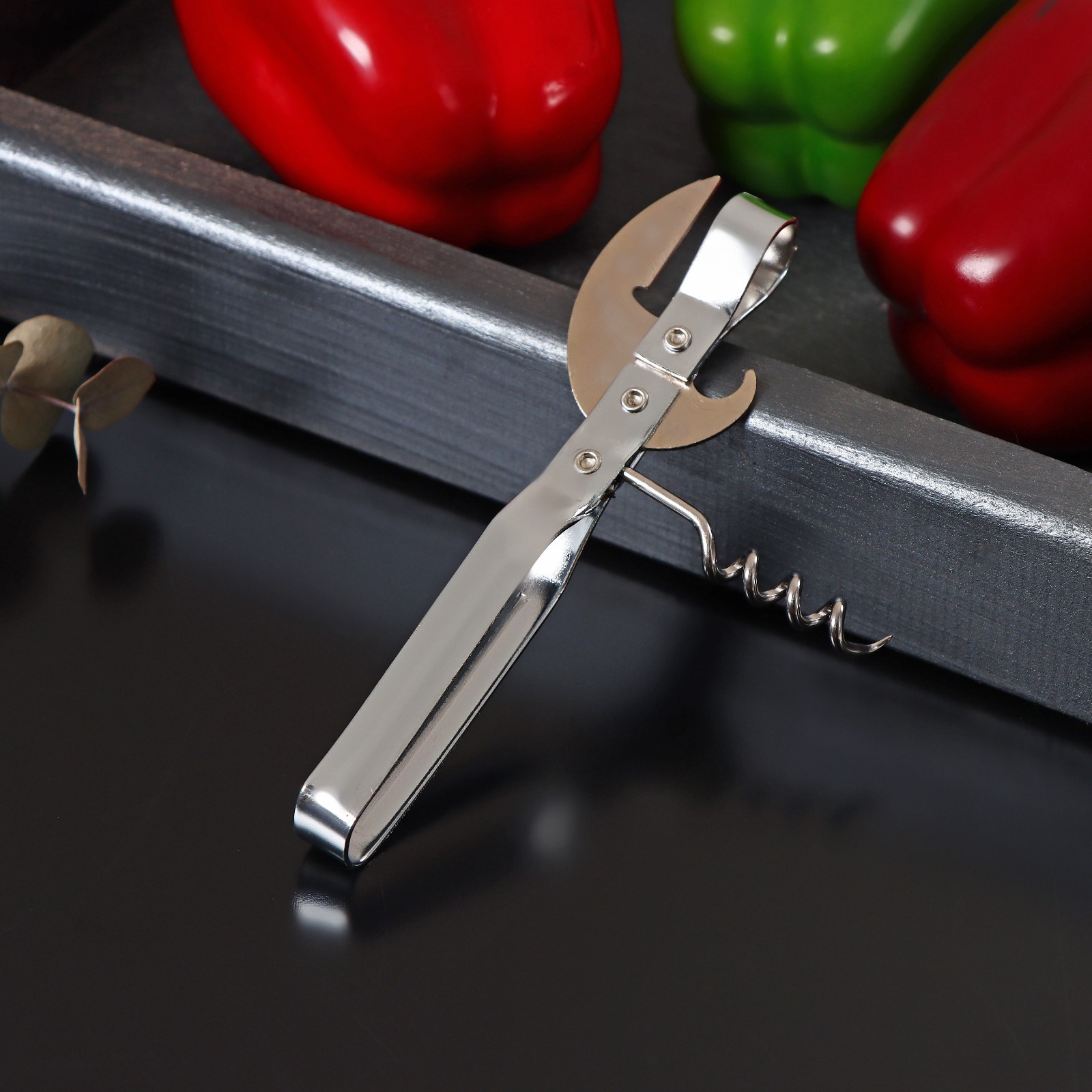 Открывашка-штопор доляна «помощник», 14 см, цвет серебряный
