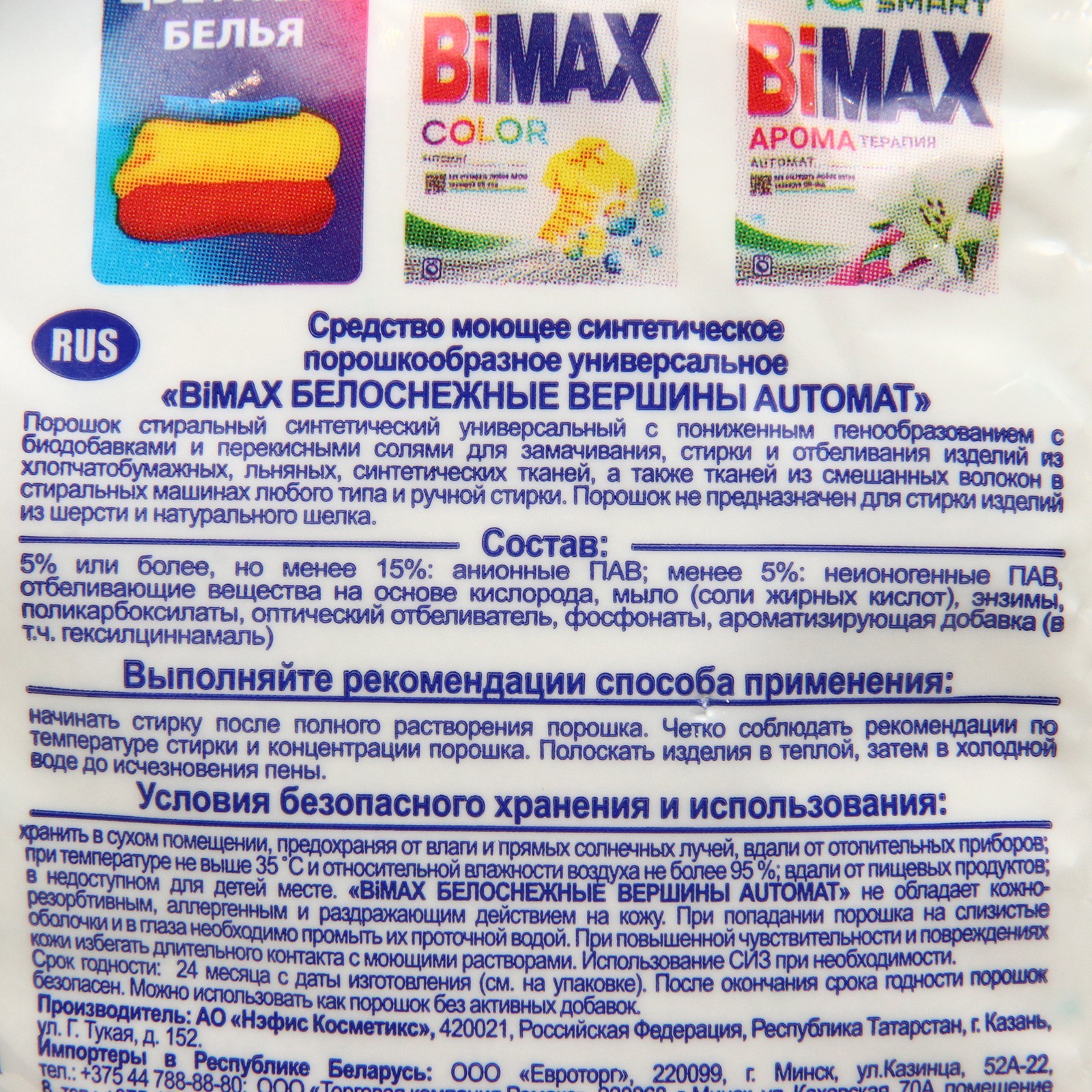 Стиральный порошок Bimax "белоснежные вершины", автомат, 1.5 кг