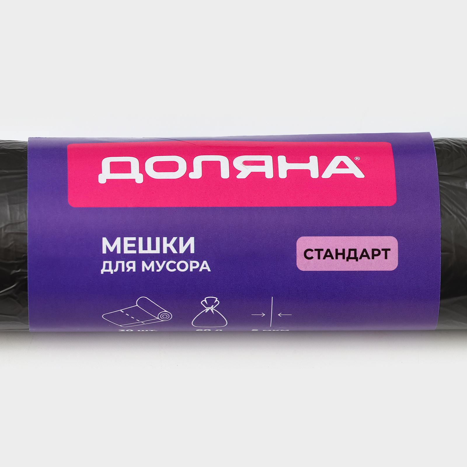 Мешки для мусора доляна «стандарт», 60 л, 5 мкм, 55x68 см, пнд, 30 шт, цвет чёрный