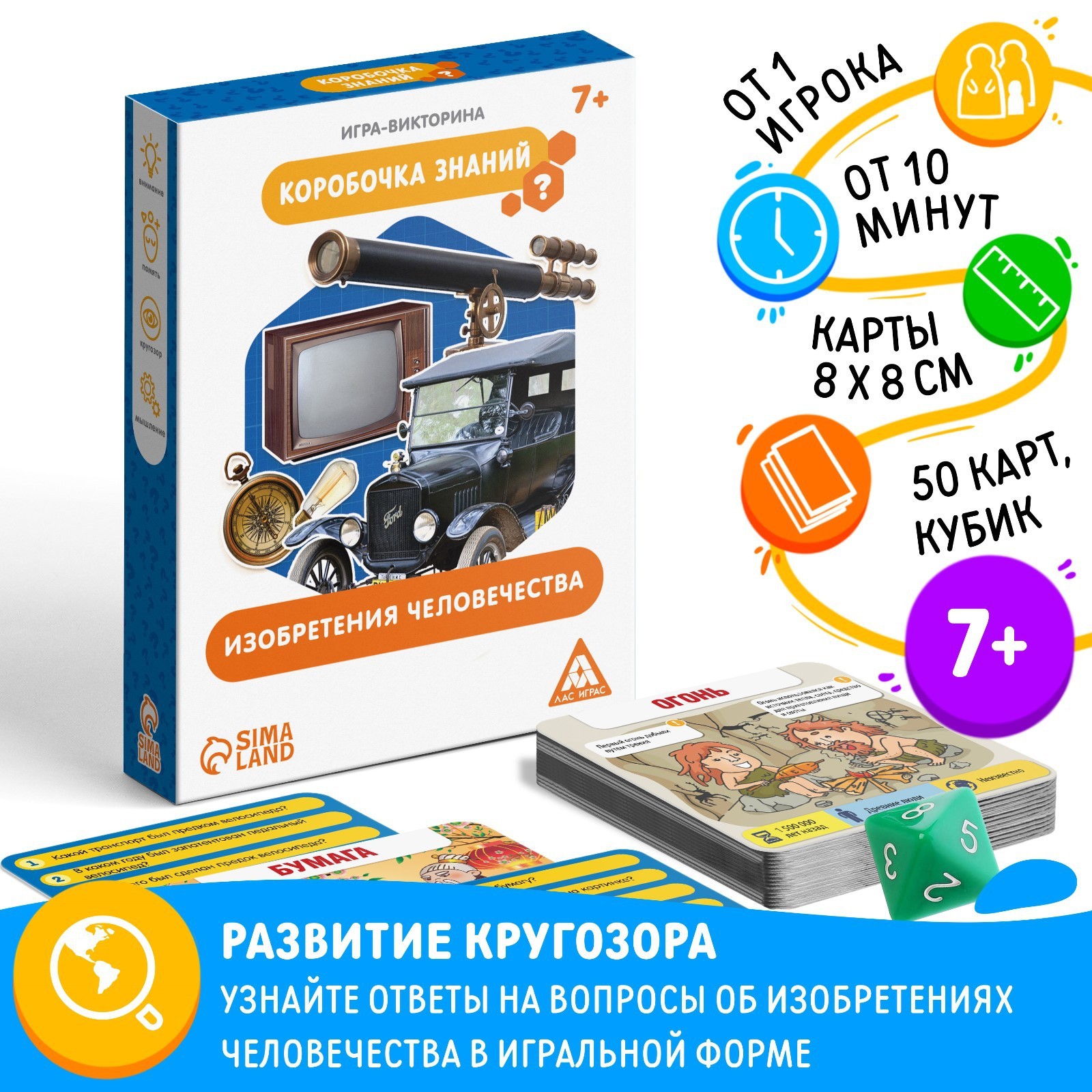 Настольная игра-викторина «коробочка знаний. изобретения человечества», 50 карт, кубик, 7+.