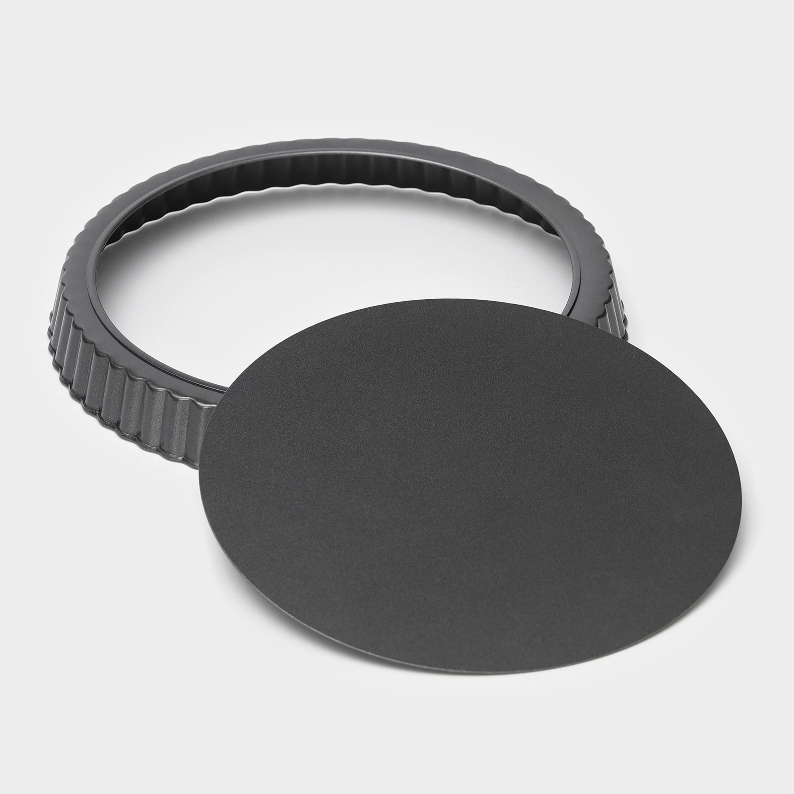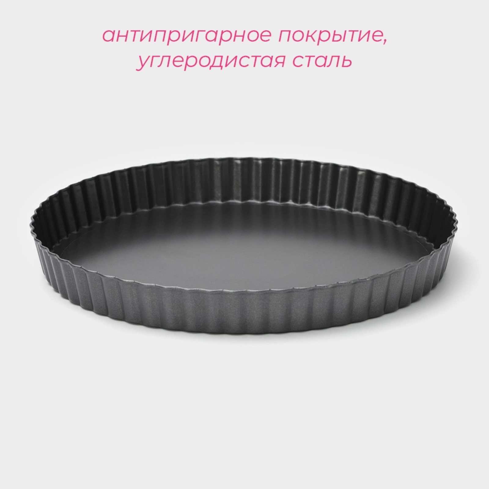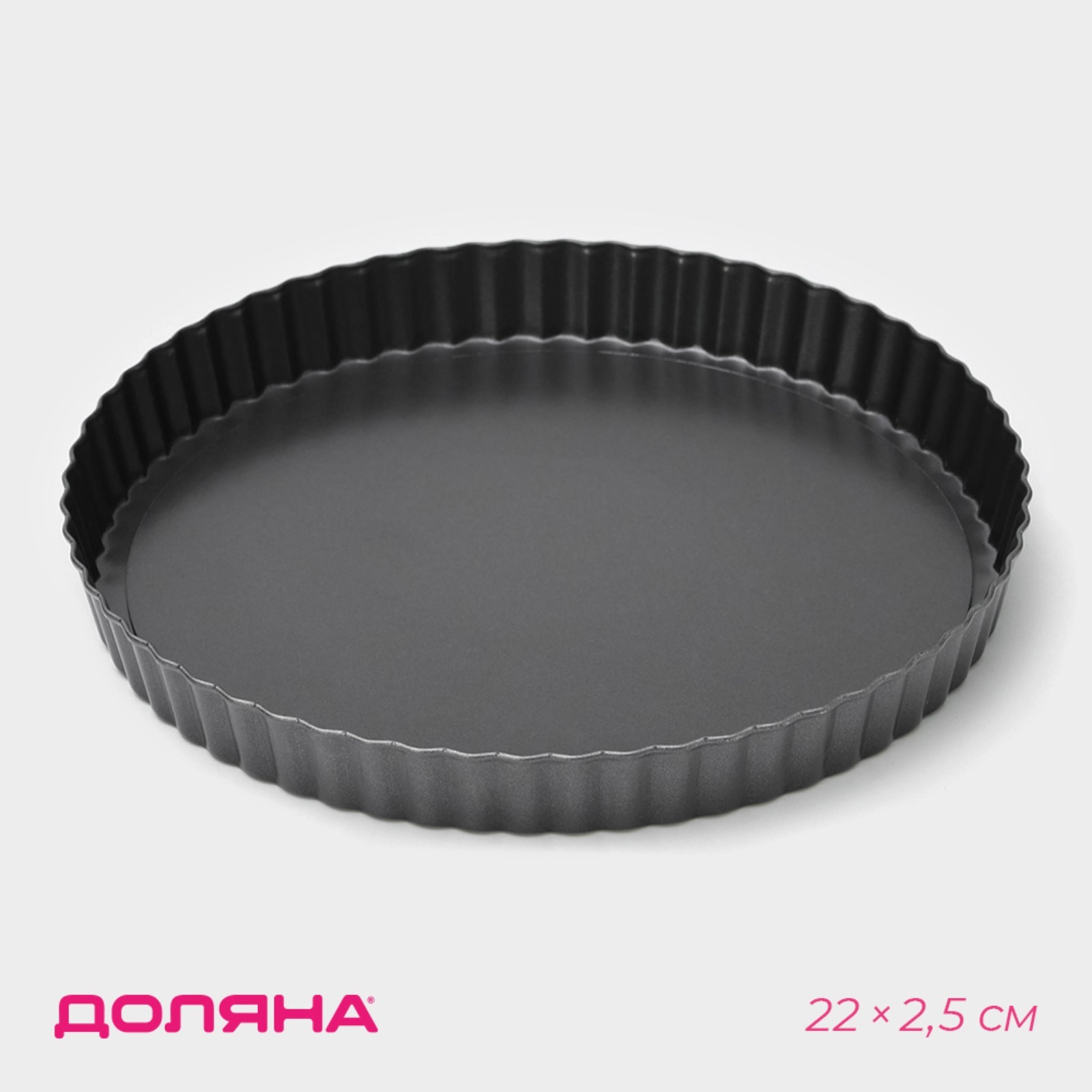Форма для выпечки доляна «жаклин. рифлёный круг», 22x2,5 см, съёмное дно, антипригарное покрытие, цвет чёрный