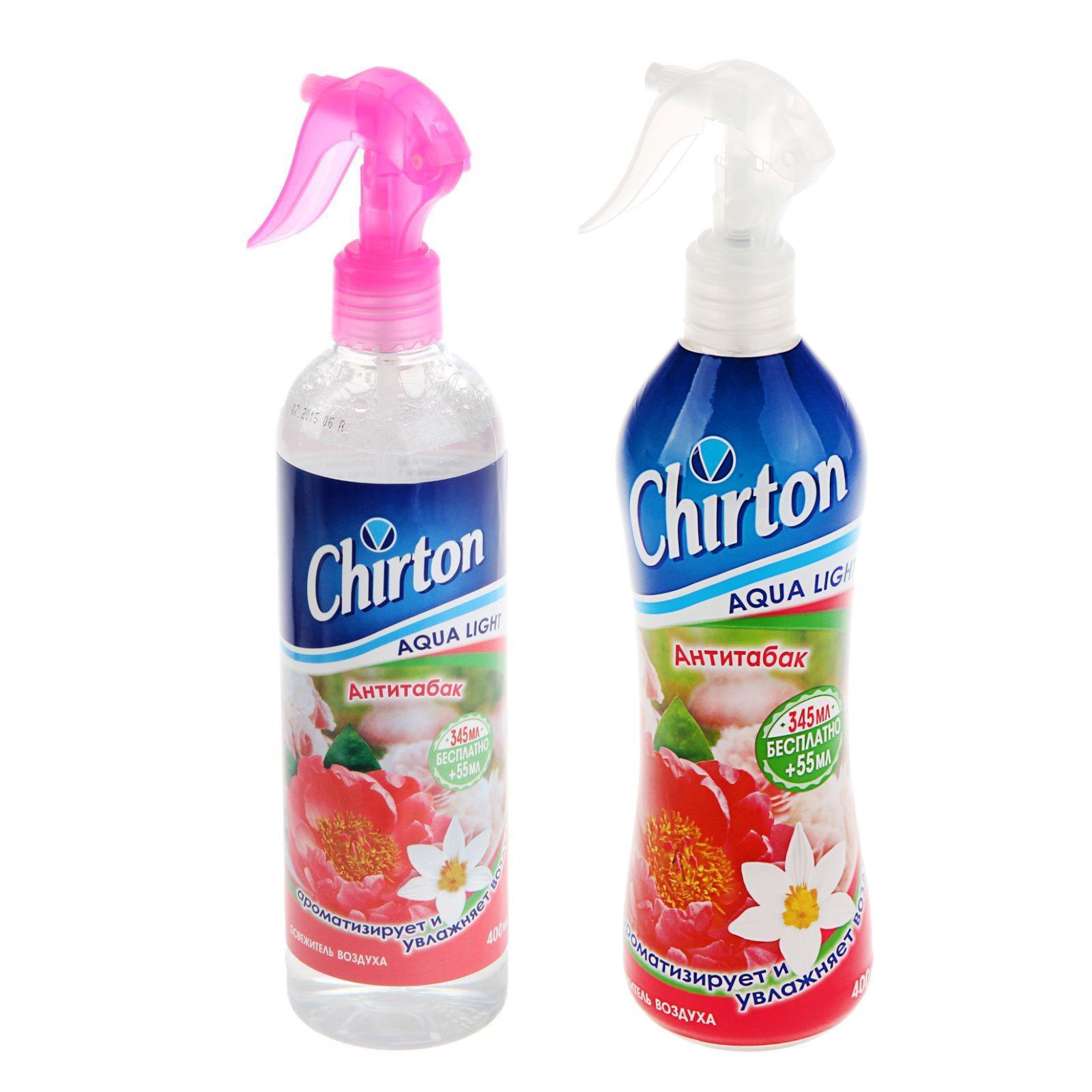 Освежитель воздуха водный chirton "антитабак", 400 мл.   Освежитель воздуха водный Chirton предназначен для устранения неприятных запахов, увлажнения и ароматизации воздуха в жилых помещениях, ваннах, туалетных комнатах, салонах автомобилей.  Изготовлен на водной основе, не содержит химических газов, пропеллентов.  Состав: вода, глицерин, пропиленгликоль, консервант, парфюмерная композиция, изопропиловый спирт.  parts count: 0 Объём, мл: 400 Аромат: Антитабак Форма выпуска: Спрей Принцип работы: Ручной Вид распыления: Водное : 0 Тип: Освежитель воздуха  развернуть описание ▼