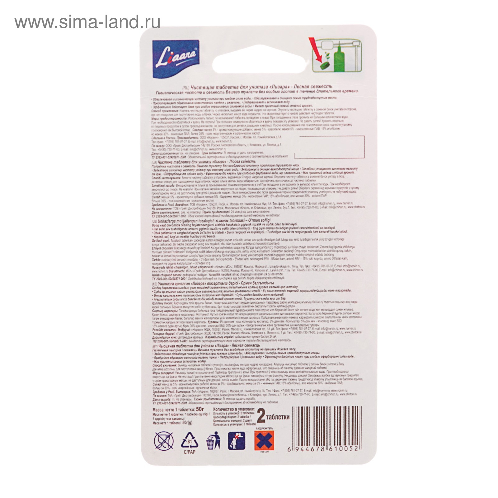 Чистящая таблетка для унитаза, Liaara "лесная свежесть", 2 шт, 50 гр