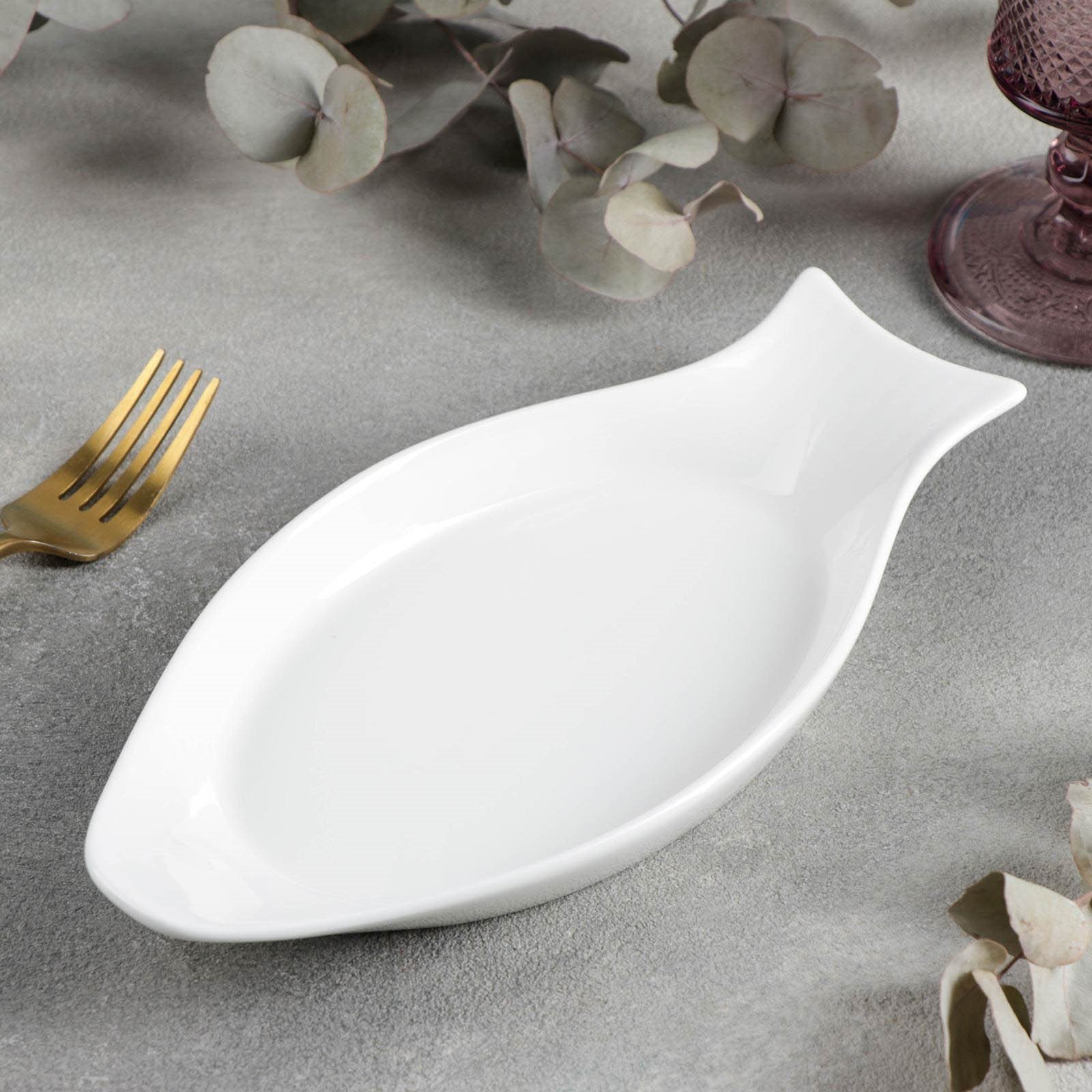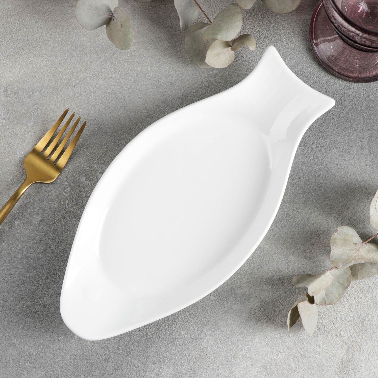 Блюдо фарфоровое для рыбы Wilmax, 25,5x12 см, цвет белый