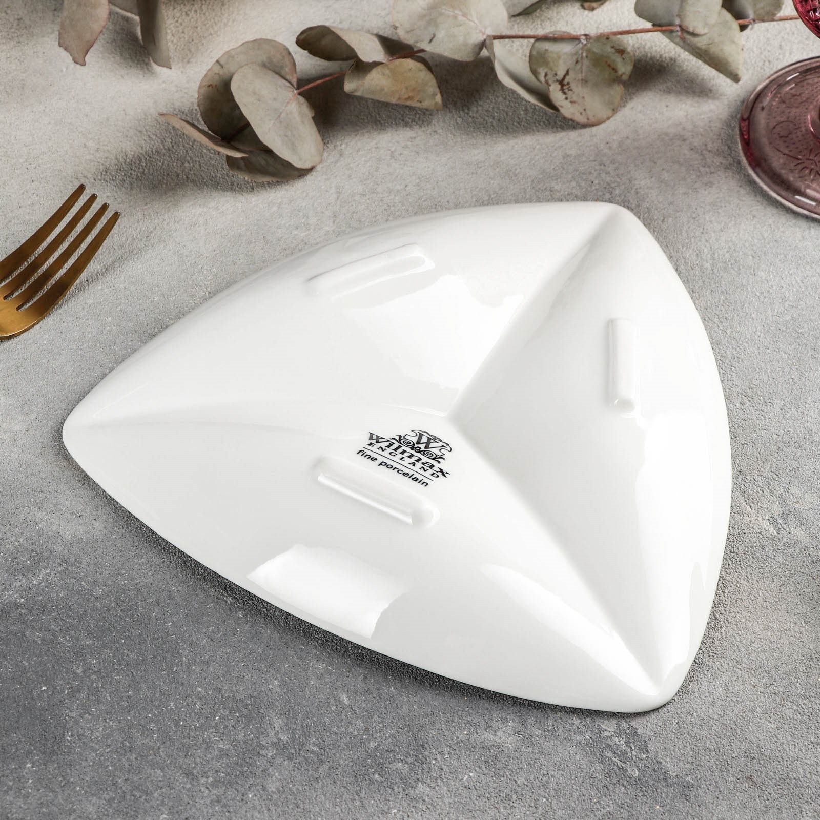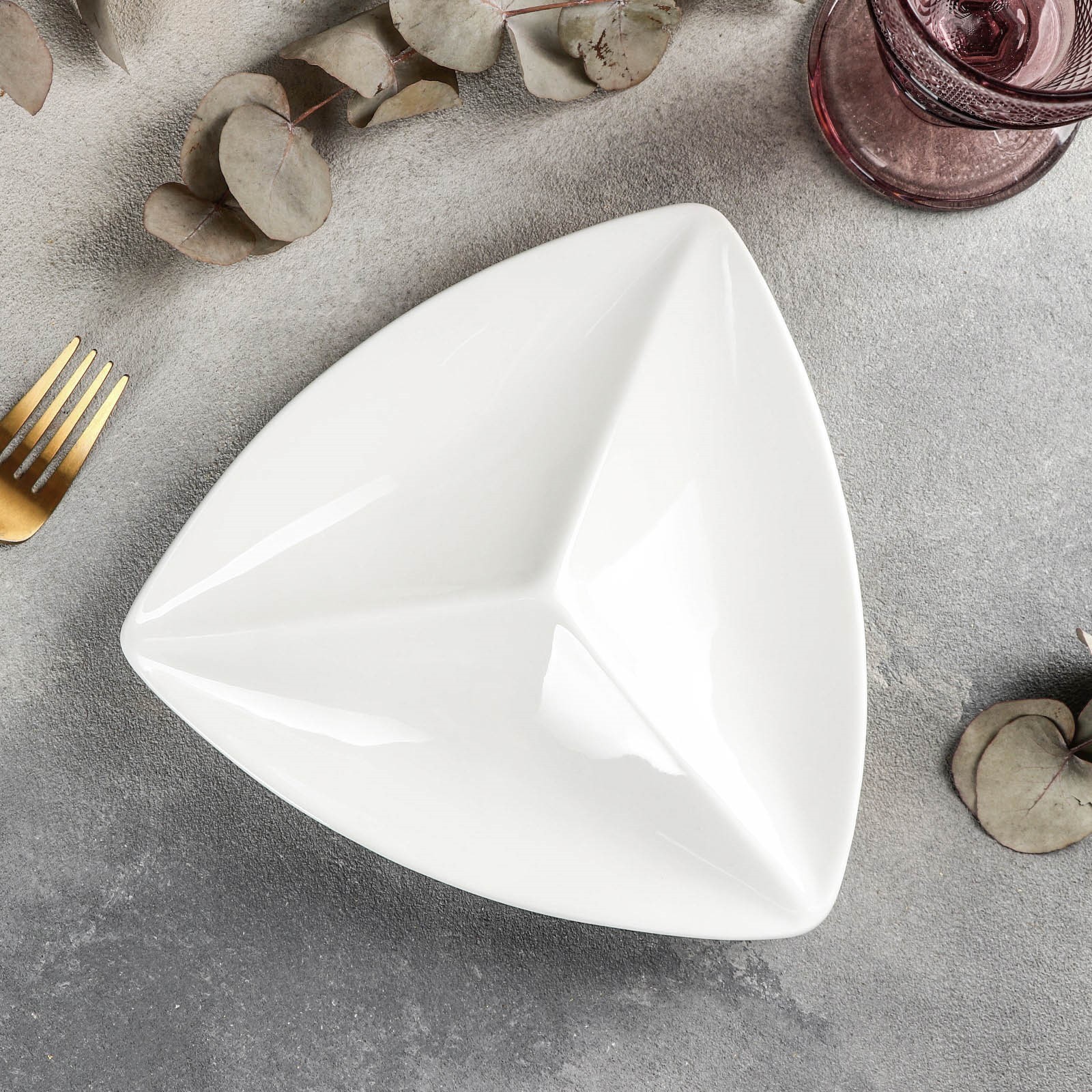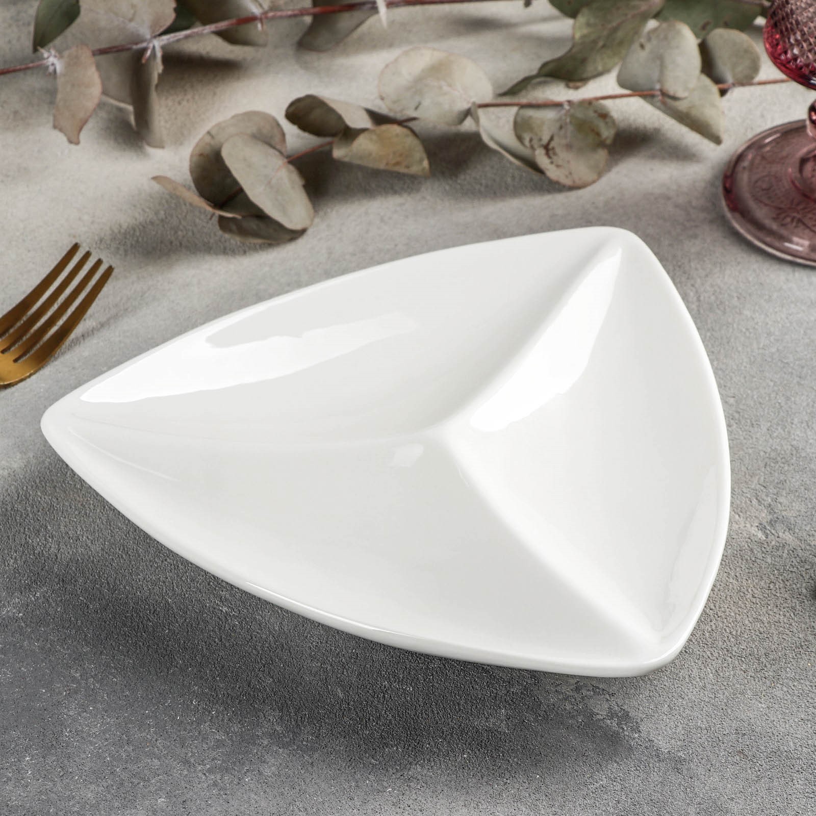 Менажница фарфоровая треугольная 3 ячейки Wilmax, 20x20 см, цвет белый