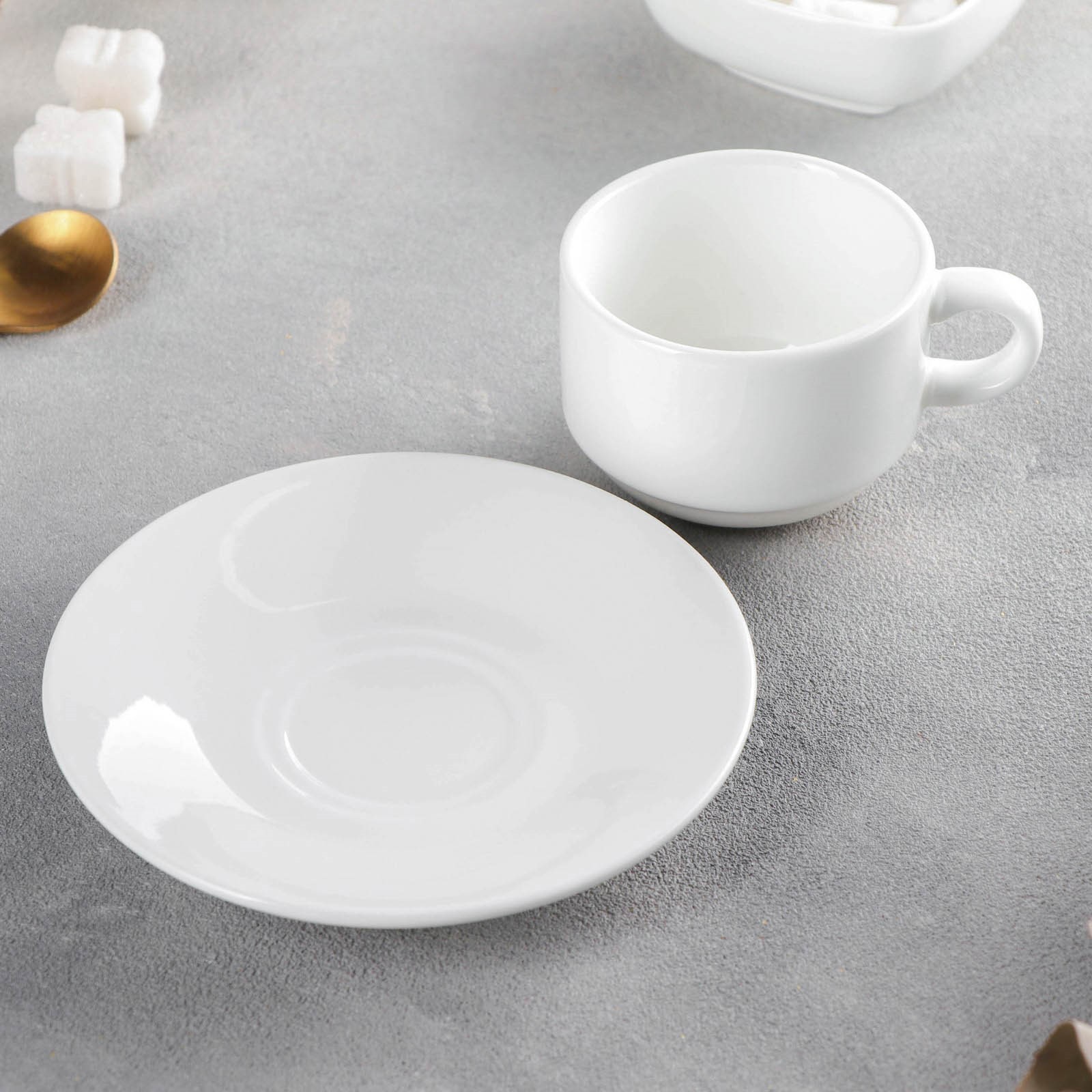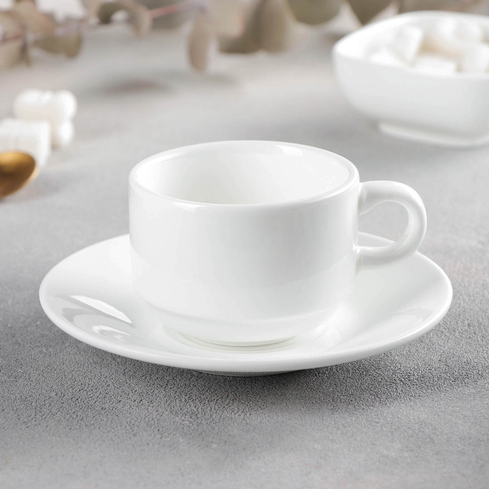 Кофейная пара фарфоровая Wilmax Stella, 2 предмета: кружка 140 мл, блюдце, цвет белый